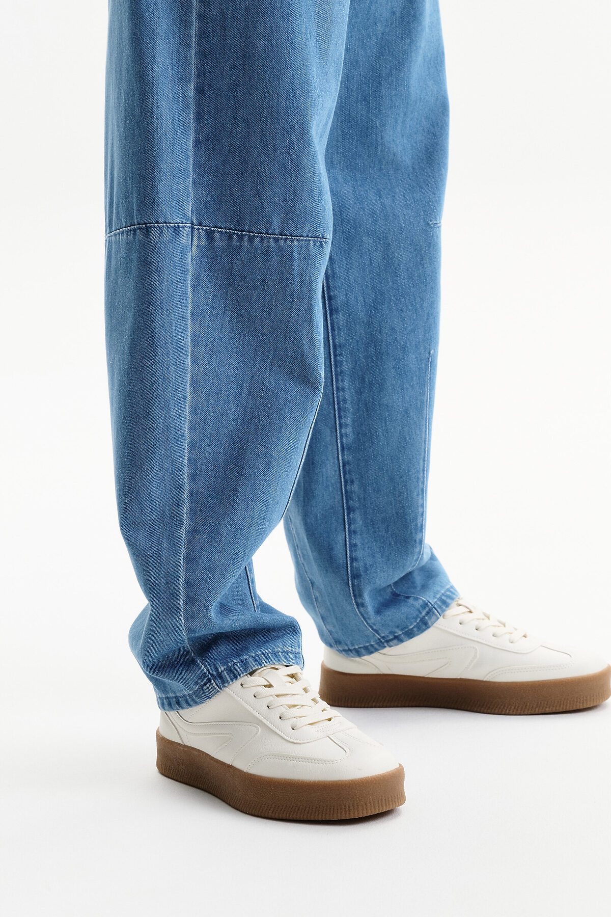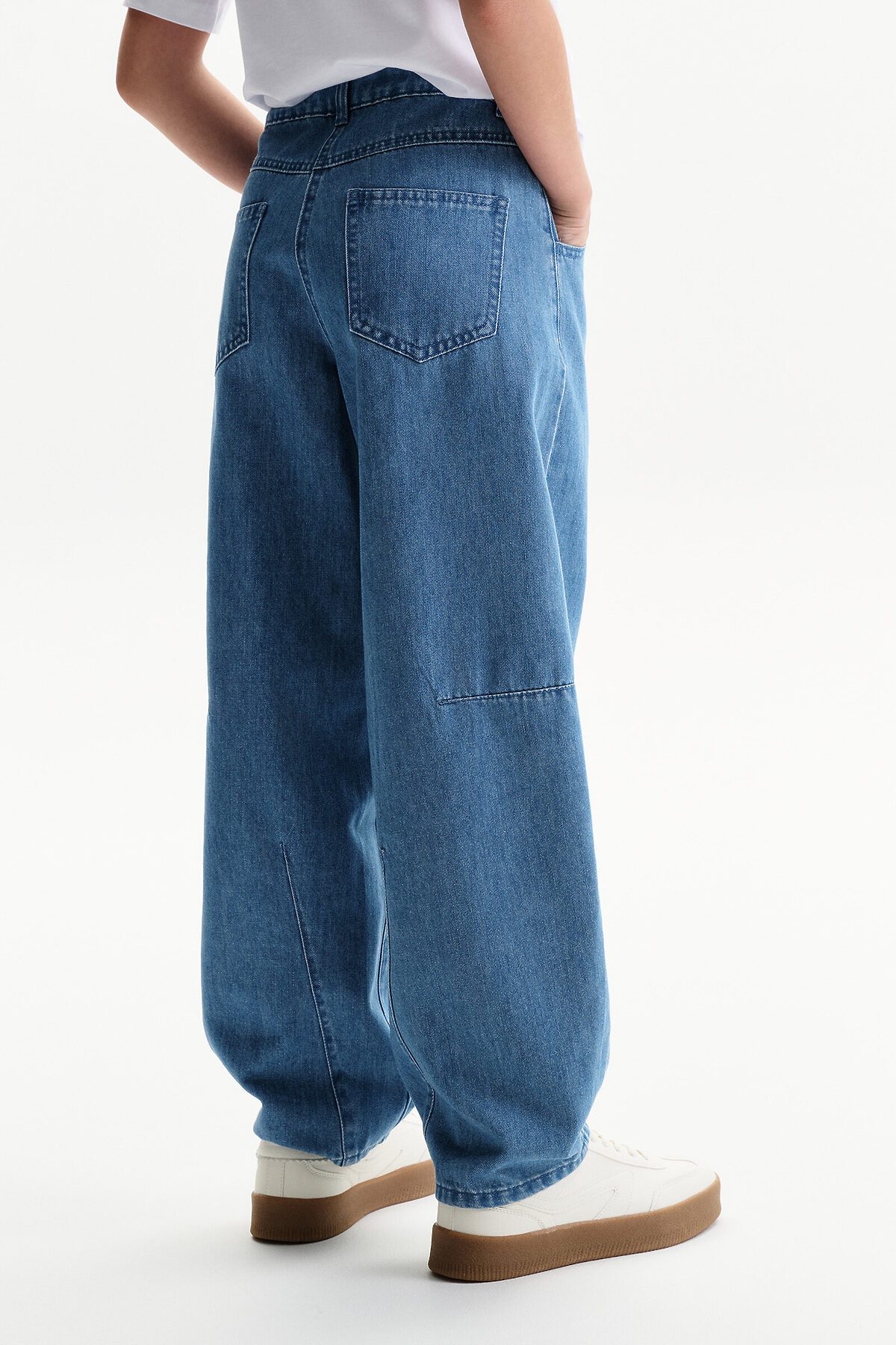 Новинка, джинсы из плотного денима. Барелли, нового силуэта, пояс на резинке. Боковые карманы переда. Имитация гульфика.На уровне колена заложены вытачки по переду и по спинке, и дополнительные наклонные вертикальные вытачки от низа брюк, по преду и по спинке. По спинке кокетка, и накладные карманы. Пояс с внутренней утяжкой на шнурок. Джинсы barrel (или «бочонки») — это фасон свободного кроя, характеризующийся широкими штанинами в бедрах, которые постепенно сужаются к низу, напоминая форму бочонка. Они часто имеют высокую посадку и могут быть как укороченными, так и удлиненными, создавая интересный геометрический силуэт и балансируя между элегантностью и дерзостью.