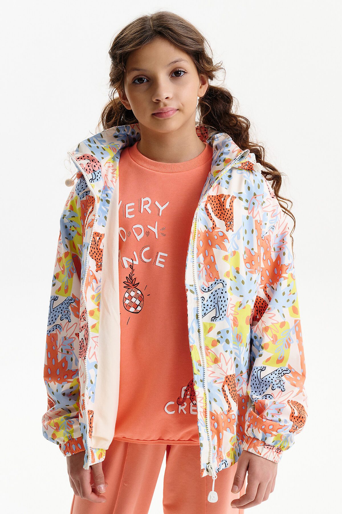 Ветровка для девочки — лёгкая и функциональная модель для весенне-осеннего сезона, прохладного лета. Ветровка относится к категории демисезонная детская, рассчитана на температурный режим от +10 до +20 °C и подходит для прогулок, школы и повседневной носки. Детская ветровка на девочку выполнена в короткой длине с овальным силуэтом и умеренным объёмом. Втачной рукав со слегка спущенным плечом формирует мягкую, аккуратную посадку и обеспечивает комфорт при движении. По низу изделия и по низу рукавов предусмотрена сборка на резину, благодаря чему ветровка хорошо прилегает и защищает от задувания ветра. Капюшон оснащён утяжкой на эластичный шнур со стопперами, что позволяет регулировать посадку по погоде. На переде расположены прорезные карманы с листочкой, сохраняющие аккуратный внешний вид и функциональность. Центральная застёжка на молнию с изнаночной стороны дополнена ветрозащитной планкой, повышающей комфорт в ветреную погоду. Ветровка для девочки выполнена на хлопковом подкладе, что делает её приятной к телу и удобной для демисезонного использования без утеплителя. Ткань верха имеет водоотталкивающую пропитку, защищающую от лёгких осадков. В боковых швах и по спинке размещены светоотражающие элементы, повышающие видимость ребёнка в тёмное время суток. Декоративной деталью модели является пуллер с фирменным навесом с буквой «Р», подчёркивающий аккуратный и продуманный дизайн. Демисезонная ветровка детская для девочки сочетает комфорт, защиту от ветра и современный внешний вид.