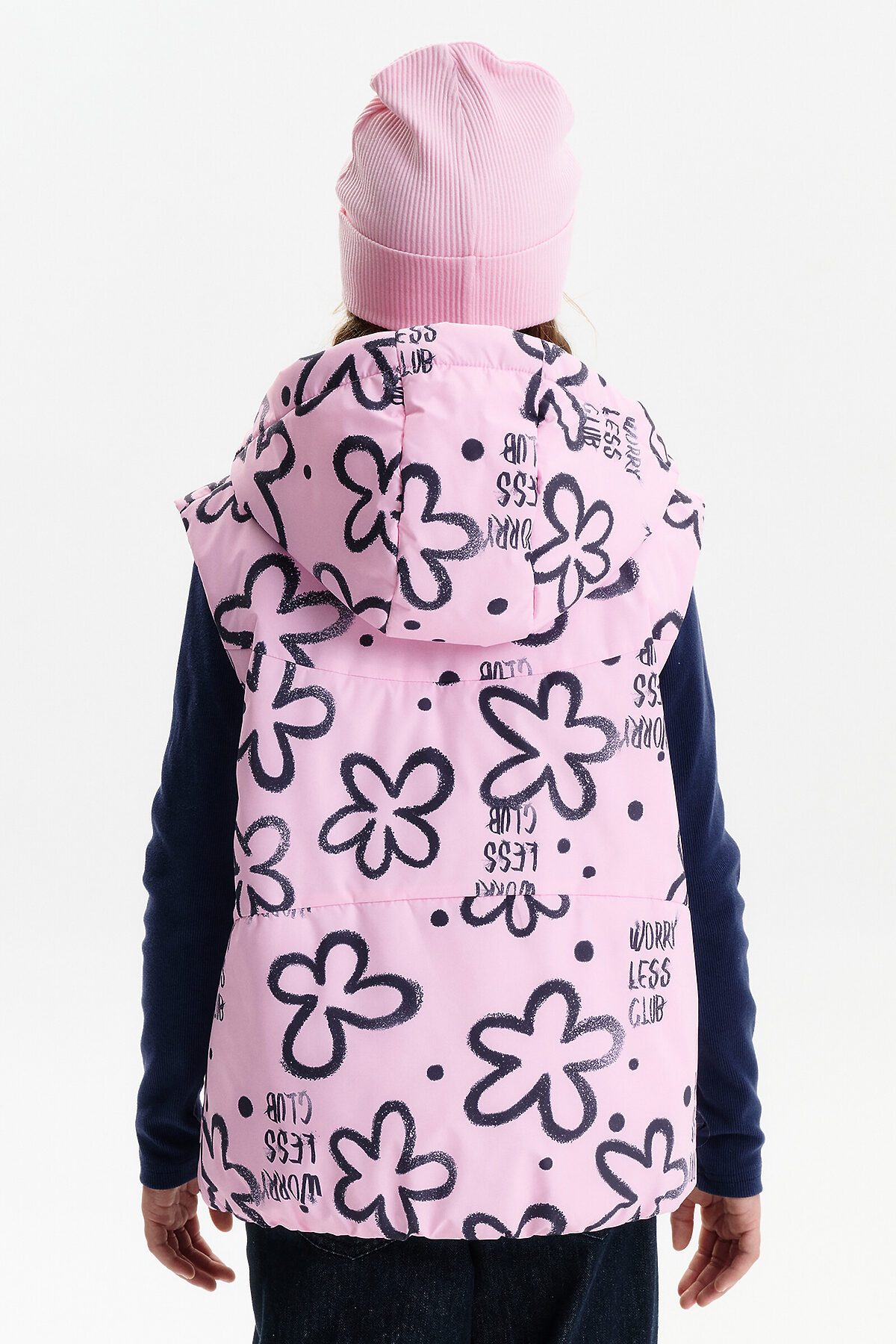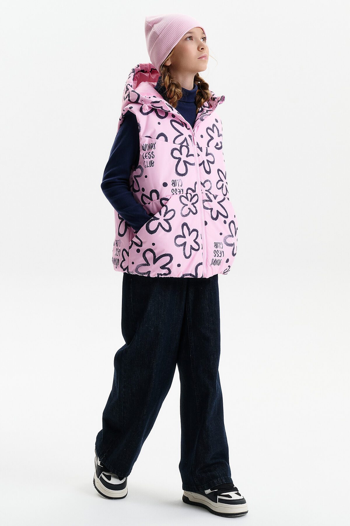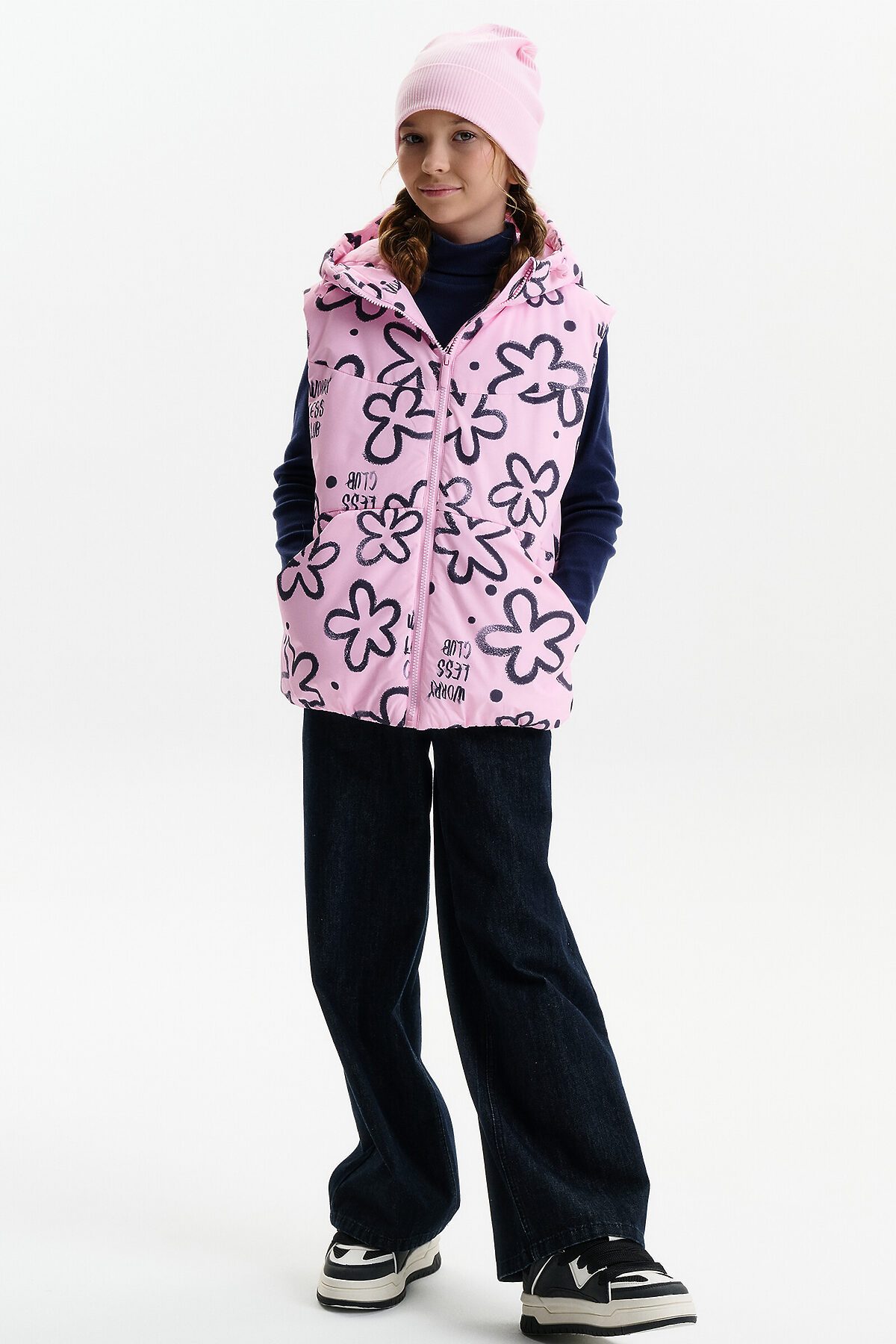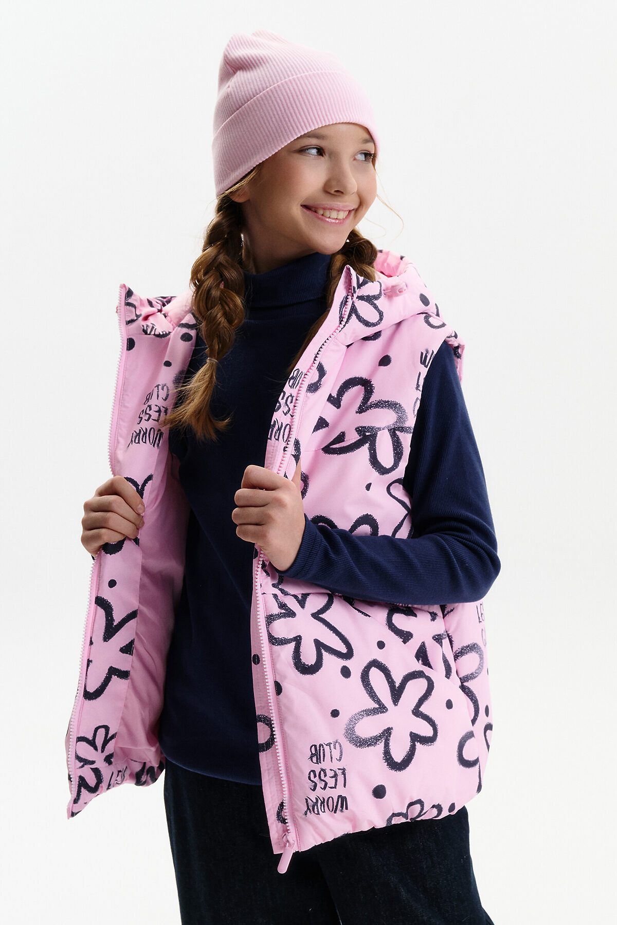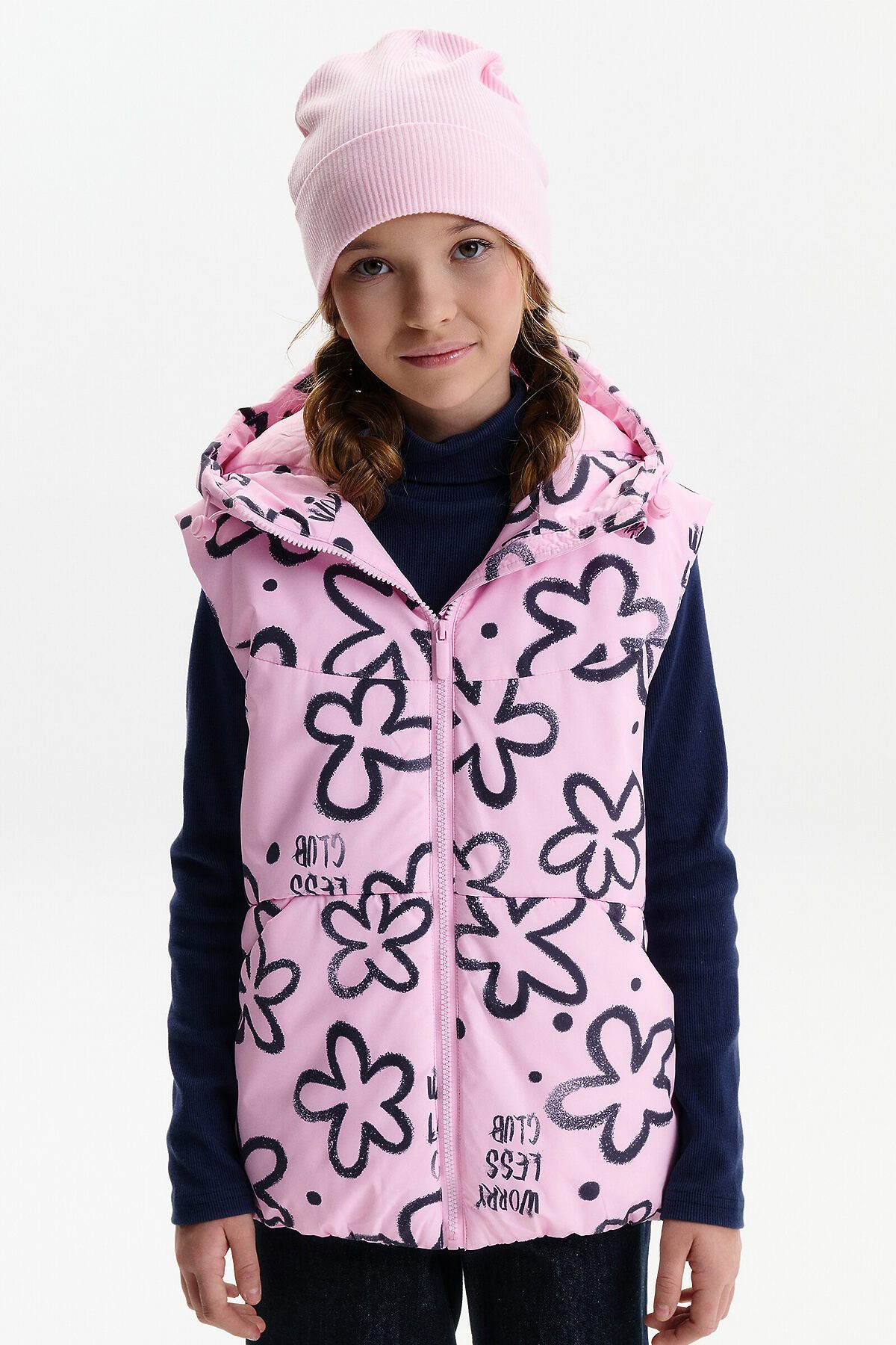 Жилетка для девочки — функциональный и удобный вариант верхней одежды для прохладной погоды и межсезонья. Детская утепленная жилетка выполнена в среднем объеме, благодаря чему комфортно садится по фигуре и подходит для повседневной носки. Жилет детский имеет декоративные членения по переду и спинке, которые формируют аккуратный внешний вид и подчёркивают силуэт. Низ изделия собран на внутреннюю резину, что помогает создать овальный силуэт, а дополнительная утяжка эластичным шнуром со стопперами позволяет регулировать посадку и защищает от прохладного воздуха. Модель дополнена капюшоном с утяжкой эластичным шнуром со стопперами, который обеспечивает защиту от ветра. По переду расположены наклонные карманы, встроенные в декоративные членения — практичное и эстетичное решение для повседневного использования. Центральная молния с изнаночной стороны защищена ветрозащитной планкой, что повышает комфорт при носке в ветреную погоду. Внутри жилетки используется тонкий подклад из полиэстера, обеспечивающий легкость изделия и удобство в уходе. В качестве утеплителя применяется синтепон плотностью 150 г/м², который хорошо сохраняет тепло и подходит для активных детей. Утепленная детская жилетка для девочки станет практичным выбором для прогулок, школы и ежедневного использования.