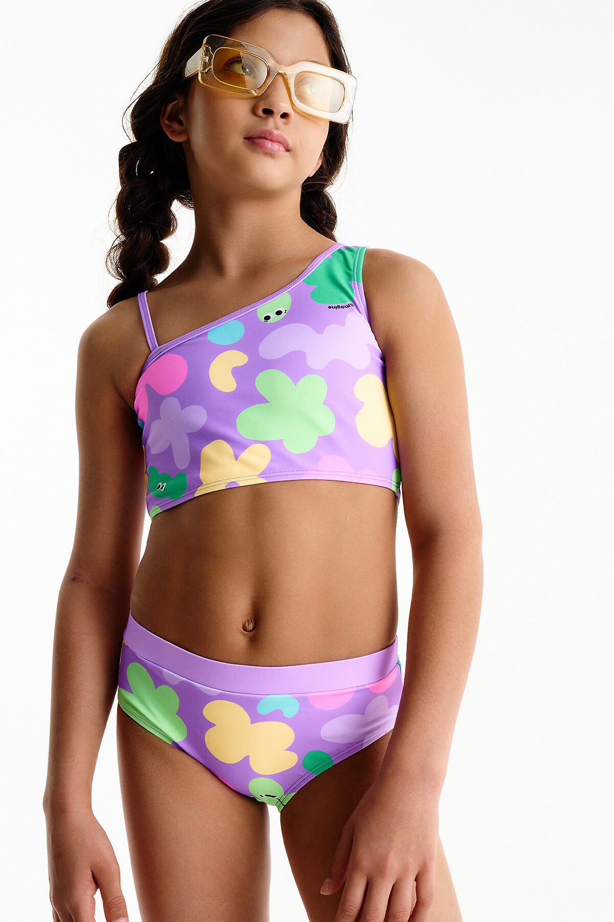 Модный раздельный купальник для девочек. Яркий купальник для юной русалочки и законодательницы моды пляжа и моря. Верх - удлиненный топ с асимметричными лямками, узкая лямка с регулировкой по длине. На переднейчасти предусмотрен подклад. Низ - трусы с завышенной линией талии, перед на подкладе. Купальник для девочки создан из качественной, специализированной ткани, хорошо пропускает воздух, плотно прилегает к телу ребенка и не соскальзывает во время купания. Костюм для плавания не становится тяжелый при намокании и очень быстро сохнет. Благодаря эластичности полотна, купальник детский комфортно сядет по фигуре, его легко надевать и снимать. Стильный и практичный купальник для пляжа и для бассейна, подойдет для водных видов спорта, на пляж, для отдыха. Красивый купальник подойдет для малыша, для детей и подростка, которые любят загорать на пляже и купаться в воде. Защитит от солнца и подарит максимум комфорта и свободы движений.