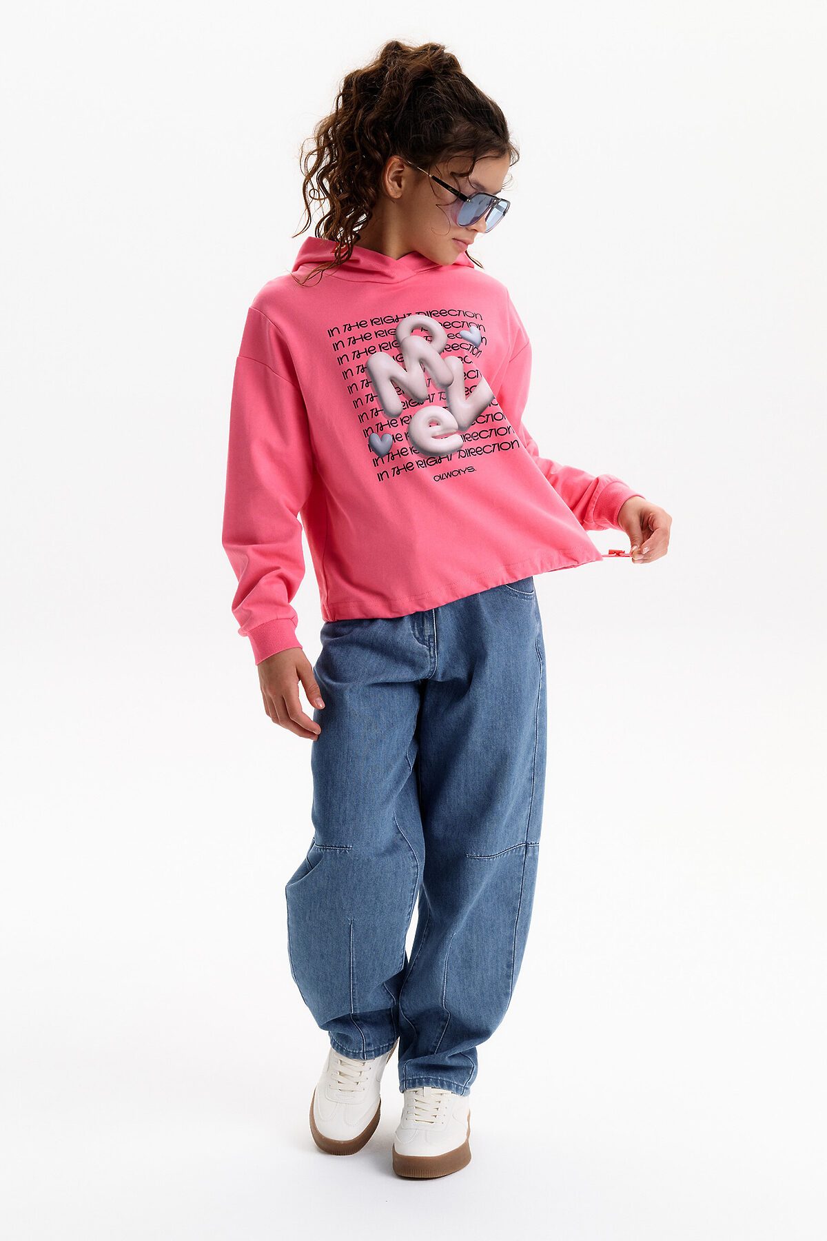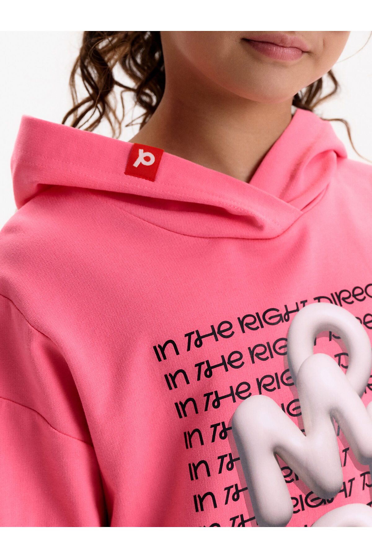 Толстовка oversize из мягкого хлопкового футера. Плотность 235 гр/кв.м Модель средней длины, свободного объёма по линии груди и низа. Мягкое спущенное плечо создаёт расслабленный силуэт. Контрастная вставка вдоль линии рукава придаёт модели стильный акцент. По низу рукавов — плотная рибана, хорошо держит форму. Внизу изделия — утяжка со шнуром и стоппером, позволяющая регулировать посадку по фигуре. Перевод: двигайся в правильном направлении.
