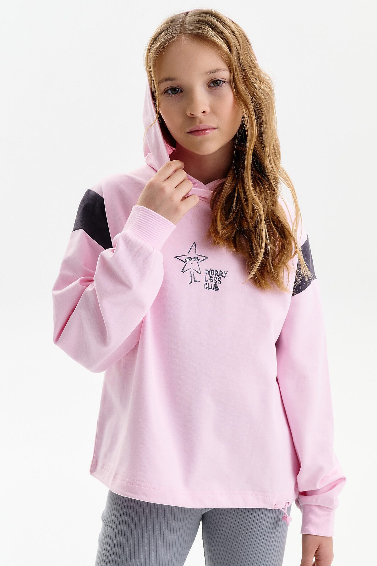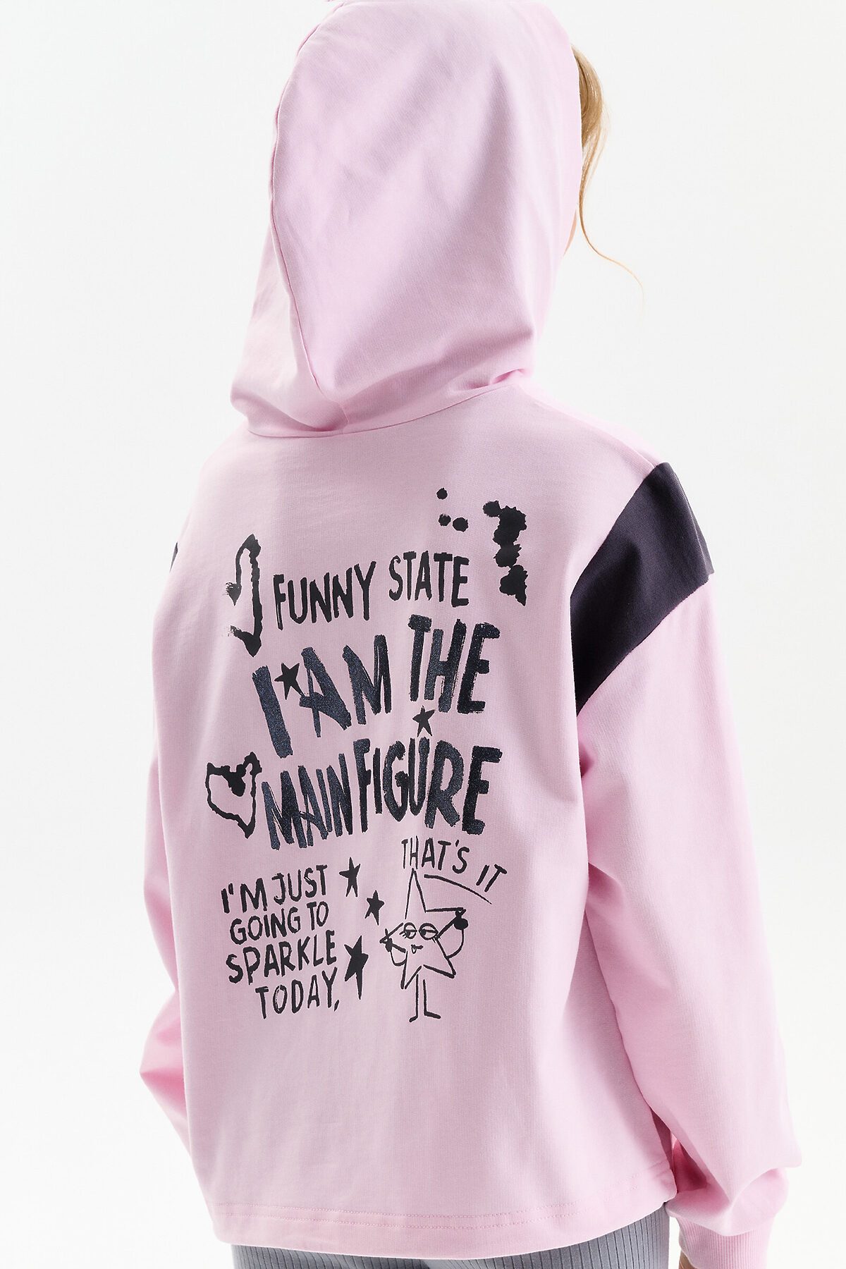 Толстовка oversize из мягкого хлопкового футера. Плотность 235 гр/кв.м Модель средней длины, свободного объёма по линии груди и низа. Мягкое спущенное плечо создаёт расслабленный силуэт. Контрастная вставка вдоль линии рукава придаёт модели стильный акцент. По низу рукавов — плотная рибана, хорошо держит форму. Внизу изделия — утяжка со шнуром и стоппером, позволяющая регулировать посадку по фигуре. Перевод: забавное состояние: я главная фигура: сегодня просто собираюсь блистать, вот и все.
