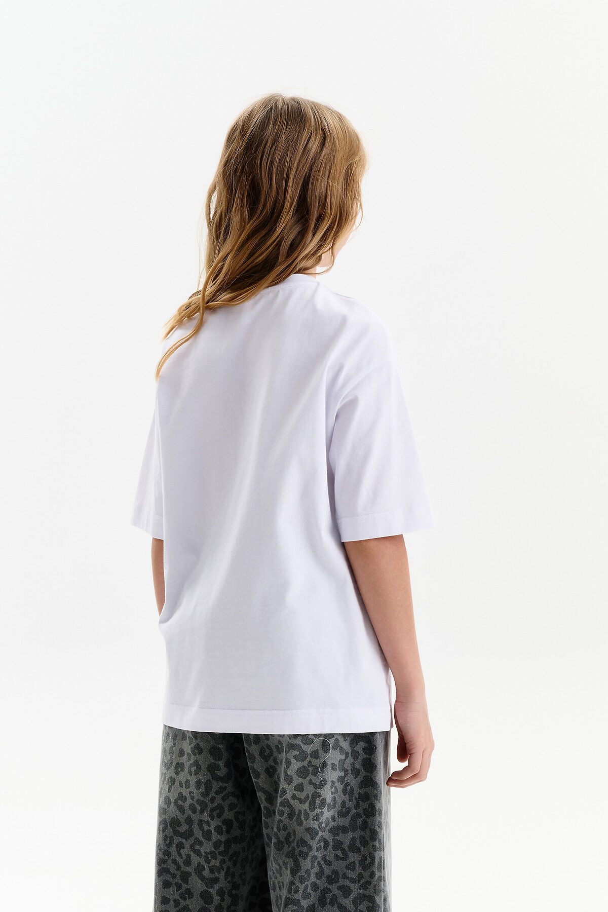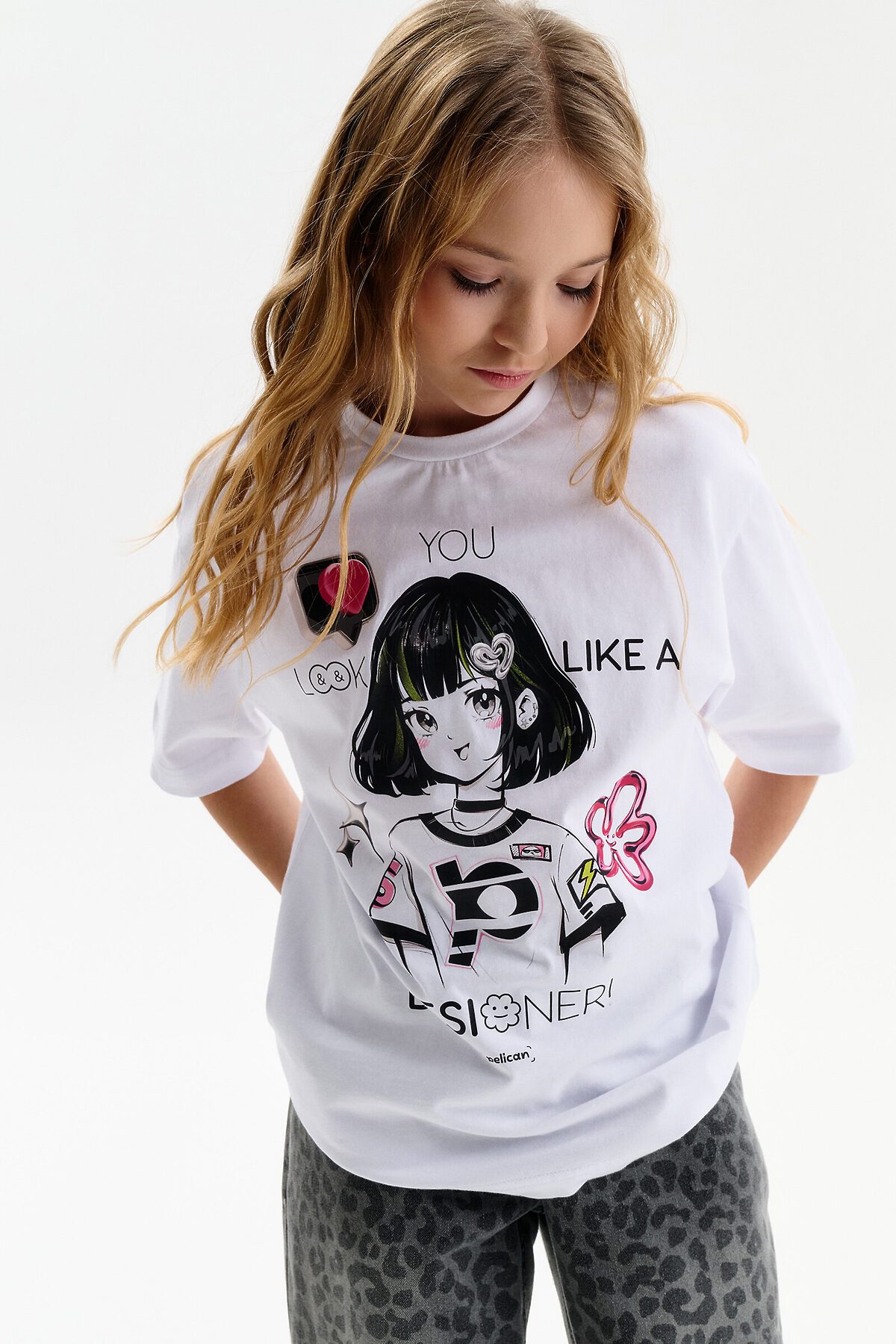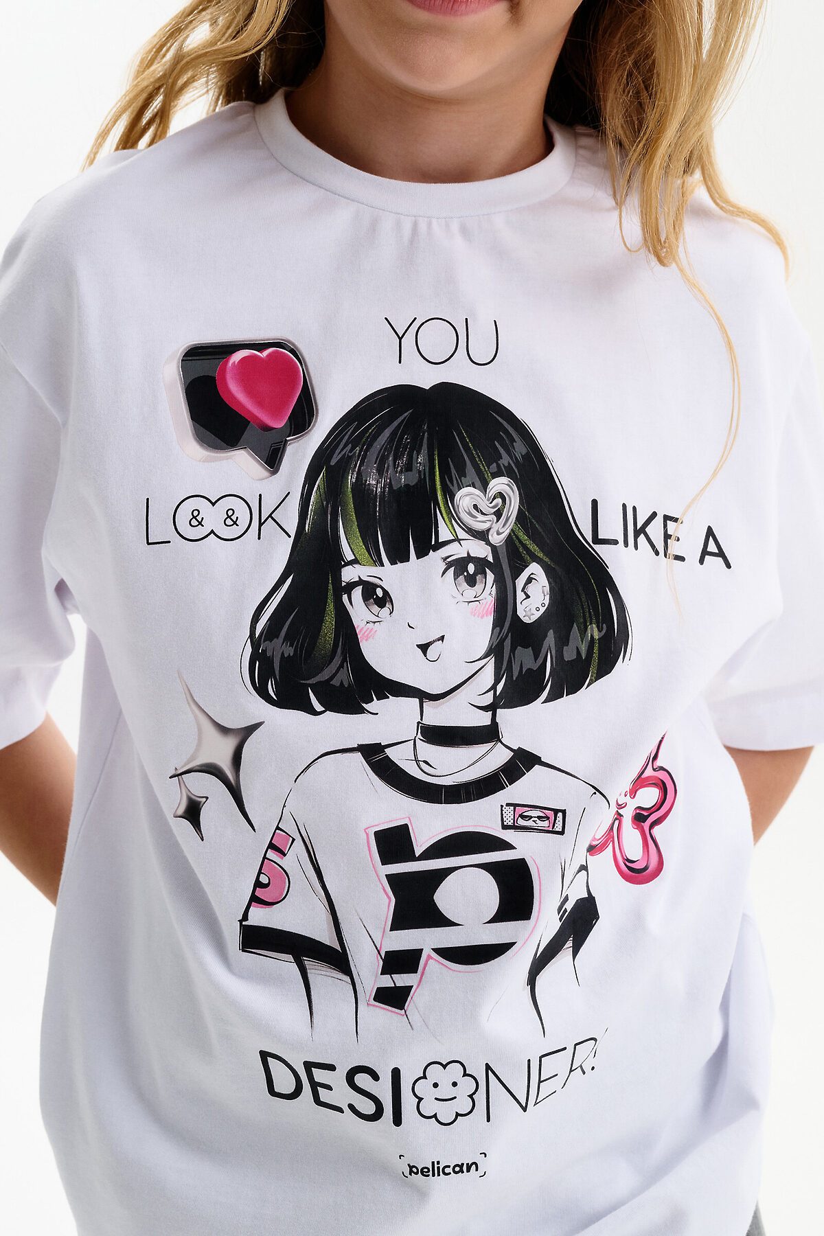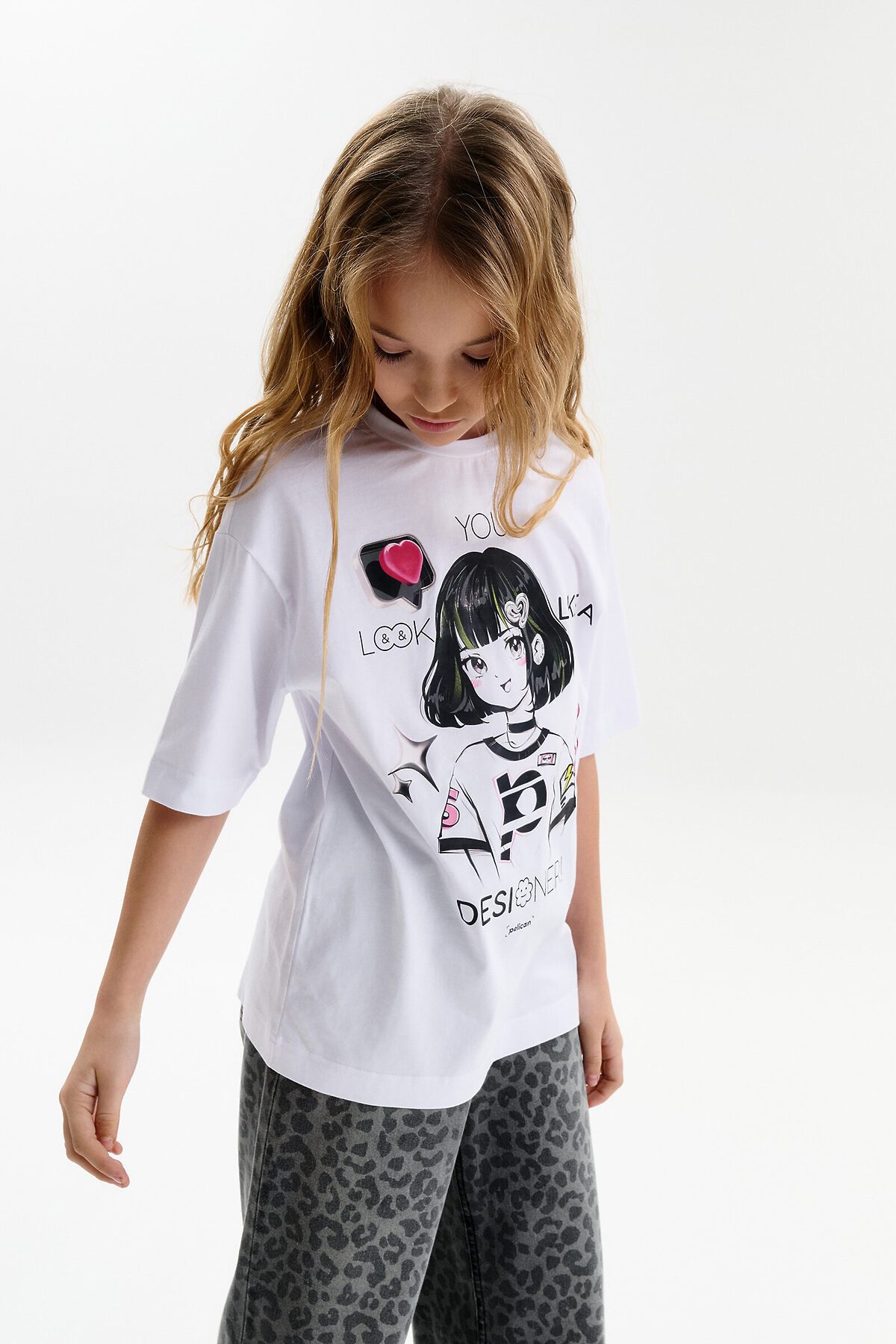 Стильная и удобная белая футболка для девочки умеренного объема. Выполнена из мягкого трикотажа, хорошо тянется, дышит и комфортно сидит весь день. На груди — модный принт с яркими акцентами. Перевод: Ты выглядишь как дизайнер Футболка отлично сочетается с джинсами, юбками и шортами. Подойдёт для школы, прогулок, мероприятий и просто хорошего настроения. Не забывайте о выборе правильного размера. Используйте таблицу размеров на фотографии, чтобы выбрать подходящий вариант. Обратите внимание, что цвет товара на экране вашего устройства может отличаться от реального.