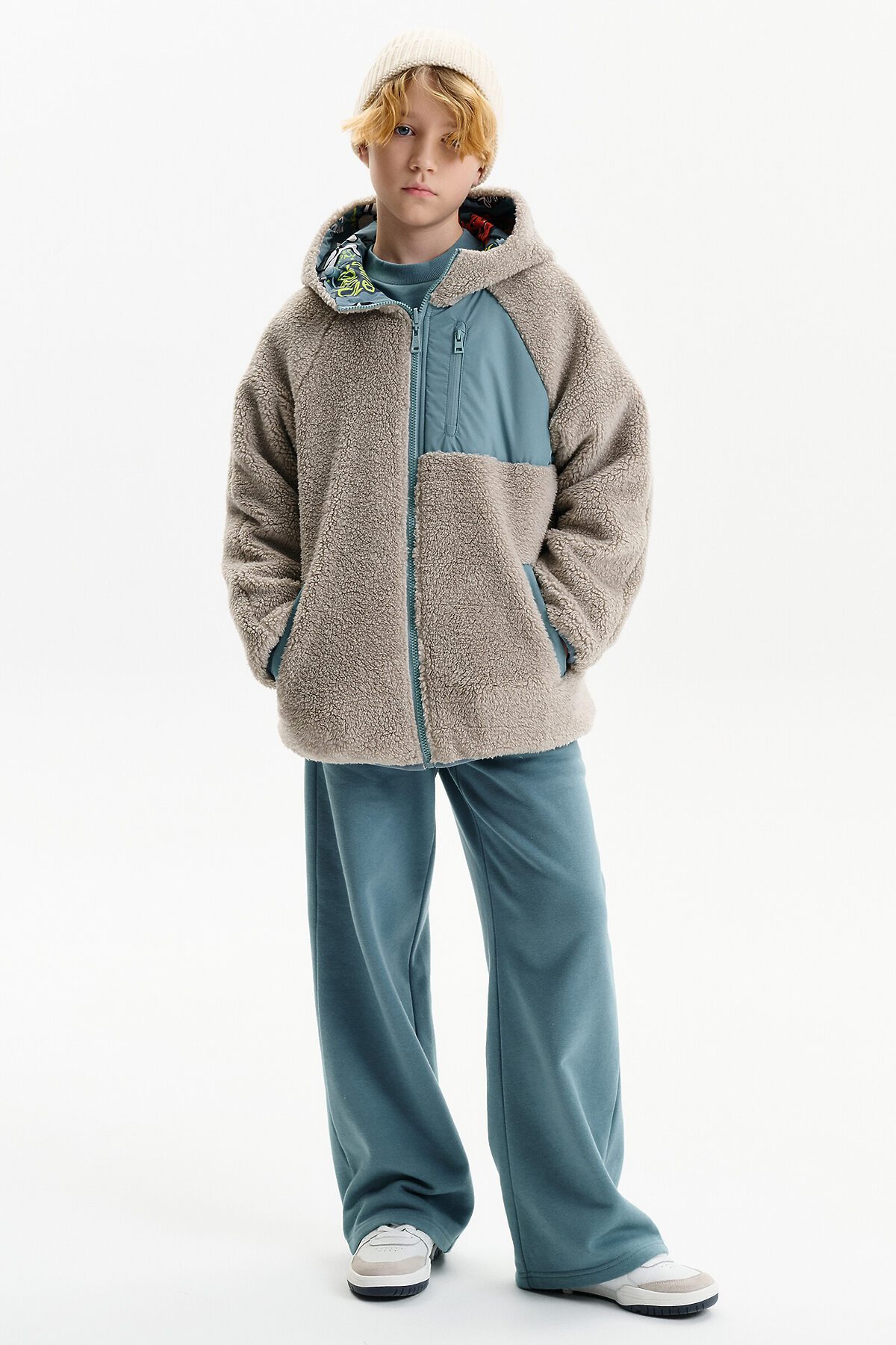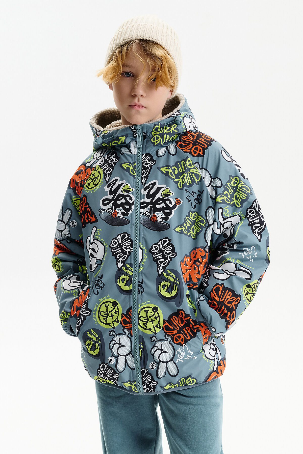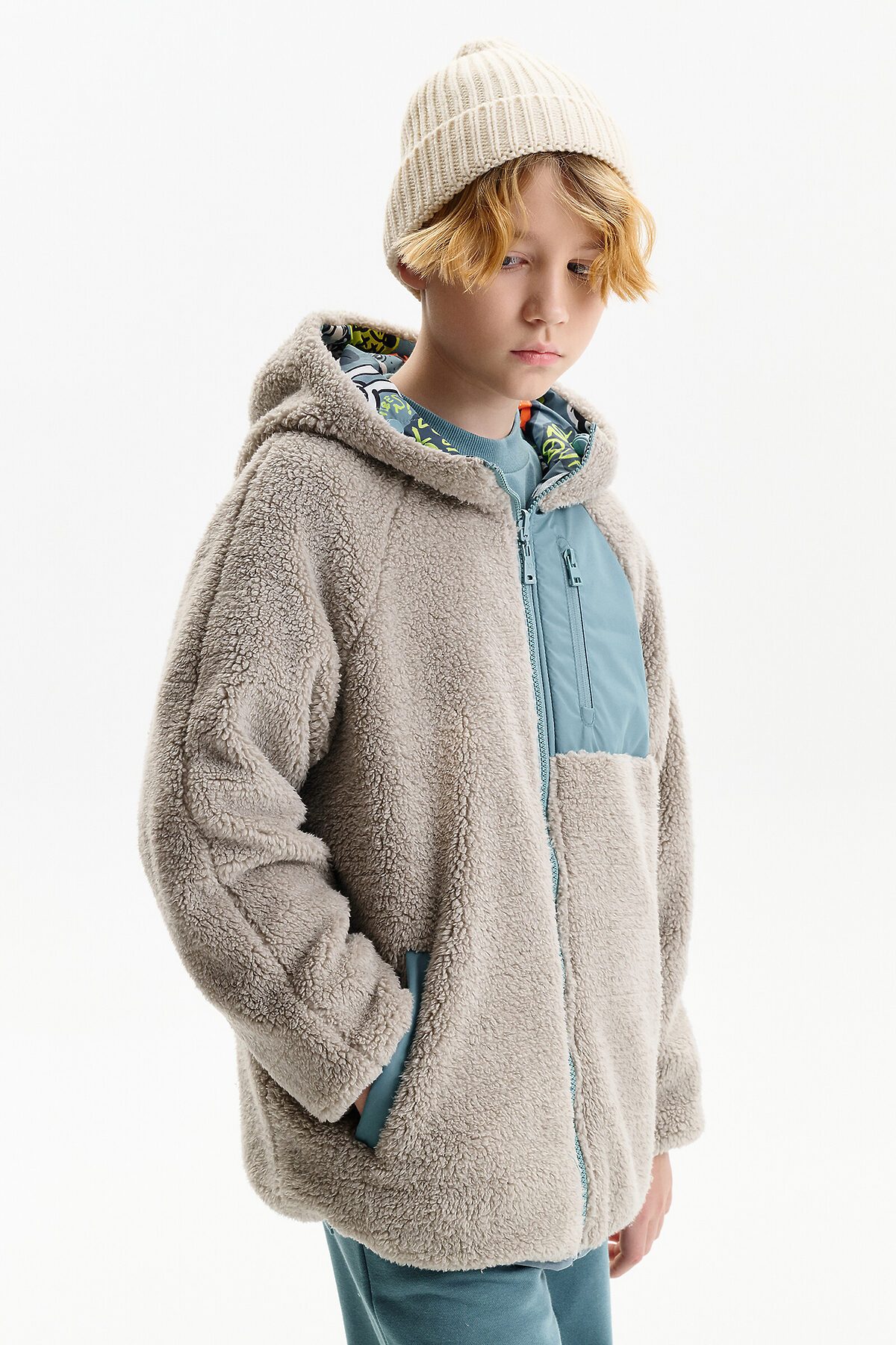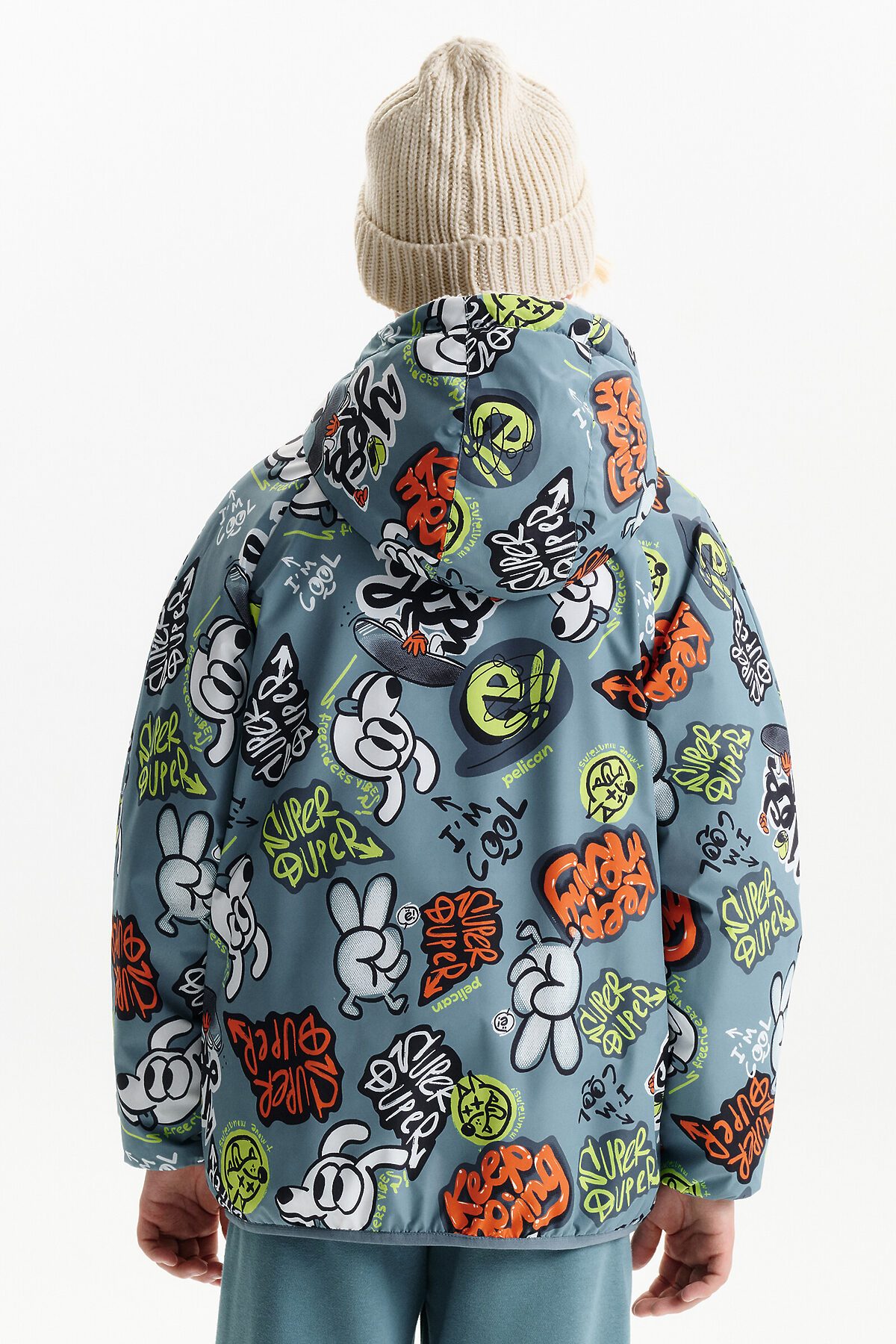 Демисезонная куртка для мальчика Pelican — практичная и стильная модель на каждый день, созданная для переменчивой погоды весной и осенью. Куртка двусторонняя, что позволяет легко менять образ и цветовую гамму в зависимости от настроения и ситуации. Модель выполнена из курточной ткани с одной стороны. Вторая сторона выполнена из мягкого бербера — по ощущениям это теплая плюшевая куртка, которая дарит комфорт и уют в прохладную погоду. Благодаря такому решению модель часто выбирают как меховую куртку для мальчика на демисезон. Куртка для мальчика выполнена в современном свободном крое оверсайз и имеет укороченную длину до подъягодичной складки. Покрой рукава реглан формирует мягкую линию плеча, а объемный верх рукава с заужением к низу обеспечивает комфорт и свободу движений. Низ изделия и рукава аккуратно окантованы эластичным пайпингом и слегка собраны, что защищает от ветра. Демисезонная куртка на мальчика оснащена центральной застежкой на молнии с бегунком и передвижным пуллером, который легко переворачивается на обе стороны. Несъемный капюшон с забралом регулируется эластичным шнуром с фиксаторами. На переде расположены удобные карманы с листочкой без молнии. На стороне из бербера предусмотрен дополнительный вертикальный карман на молнии с тканевыми ограничителями. Со стороны основной ткани по низу рукавов — светоотражающие нашивки, повышающие заметность ребенка в темное время суток. Куртка подходит для прогулок, школы и активного отдыха в температурном режиме от +5°C до +15°C.