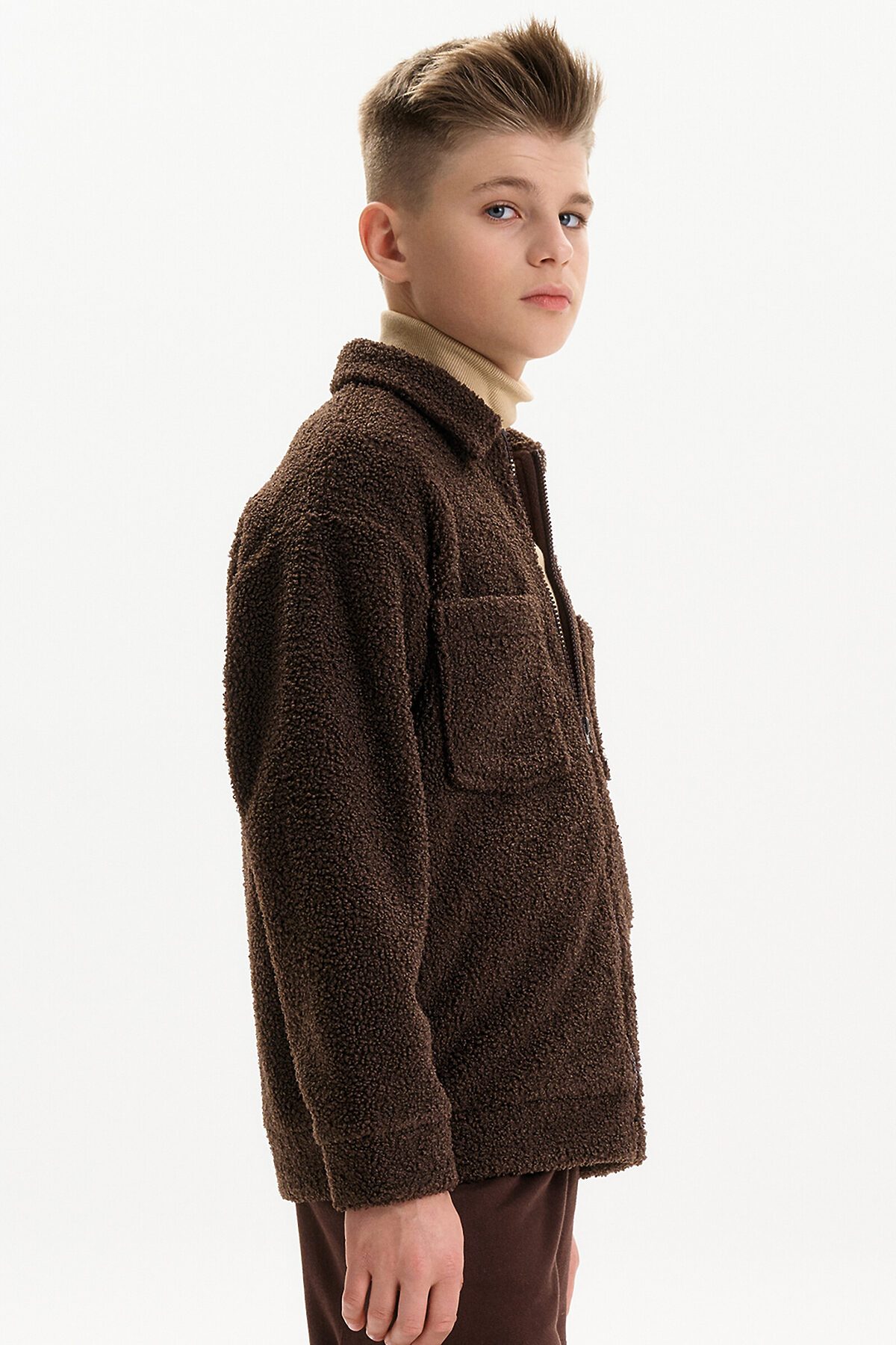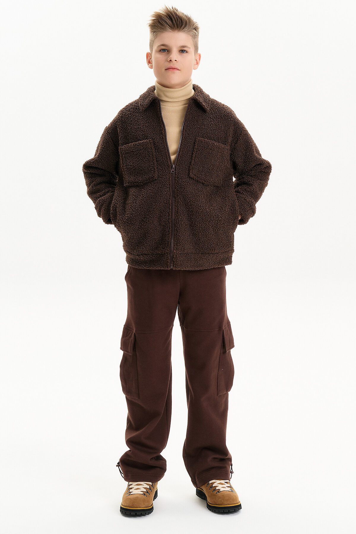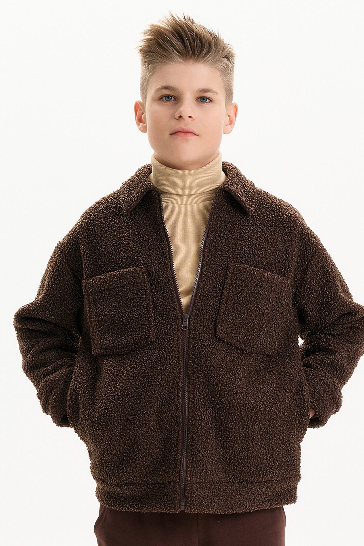 Трикотажная куртка-бомбер из искусственного меха для мальчика. Утепленная плюшевая кофта на замке - прекрасный вариант для прохладной осенней погоды. Универсальная толстовка из бербер-флиса подойдет к любой одежде, будь то школьный или повседневный гардероб. Такой флис еще называют тедди, чебурашка, барашек. Мягкая, тёплая и удобная — ребёнку в ней комфортно двигаться, играть и гулять. Прямой крой не сковывает движения, застёжка на молнии — легко надевать самому. Двусторонний материал: снаружи пушистый ворс, внутри — приятный флис. Спереди карманы для мелочей, на спинке кокетка для лучшей посадки. Манжеты и низ из плотного материала — не продувает, хорошо держит форму. Маме — легко ухаживать: рубашка не мнётся, быстро сохнет и долго сохраняет вид. Подходит как тёплая рубашка или лёгкая верхняя одежда на прохладную погоду. Широкая размерная сетка подойдет как малышу так и подростку.