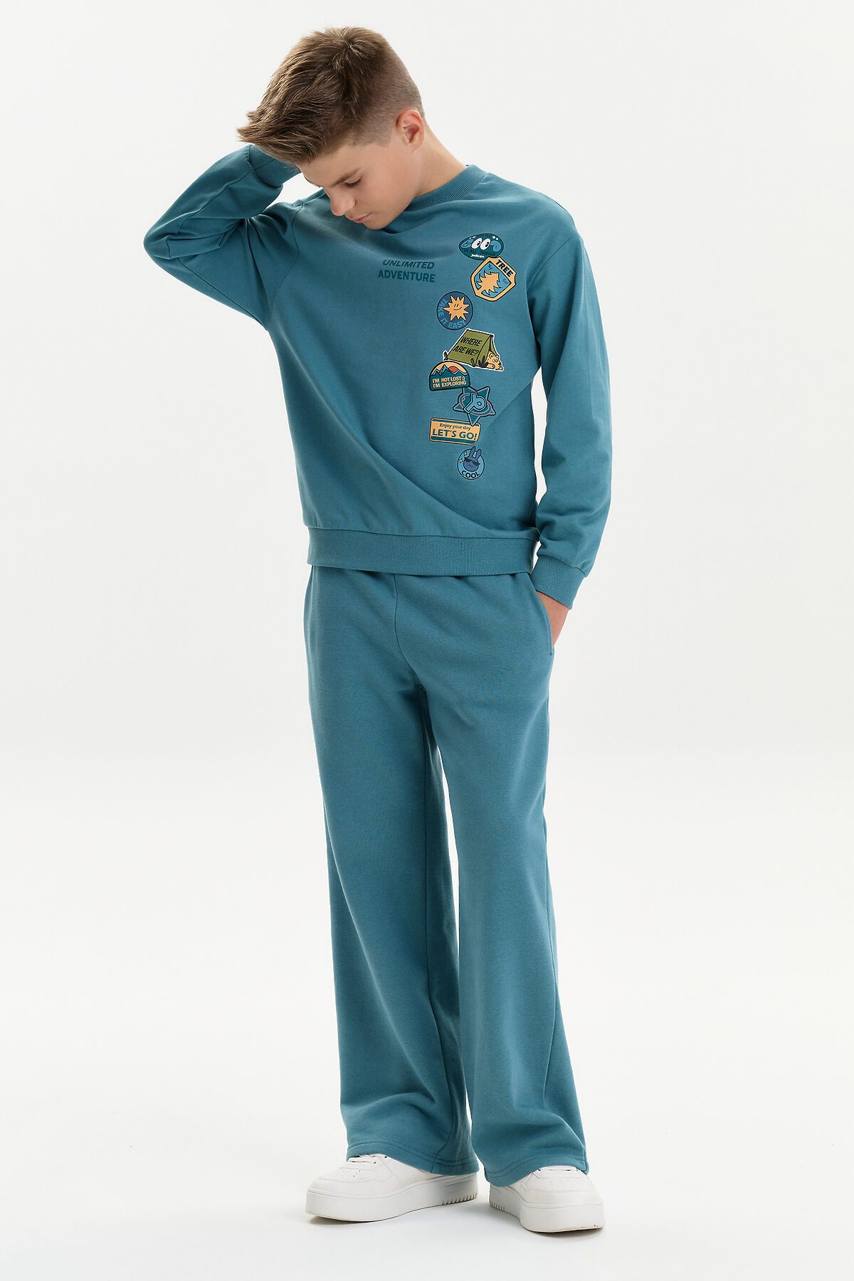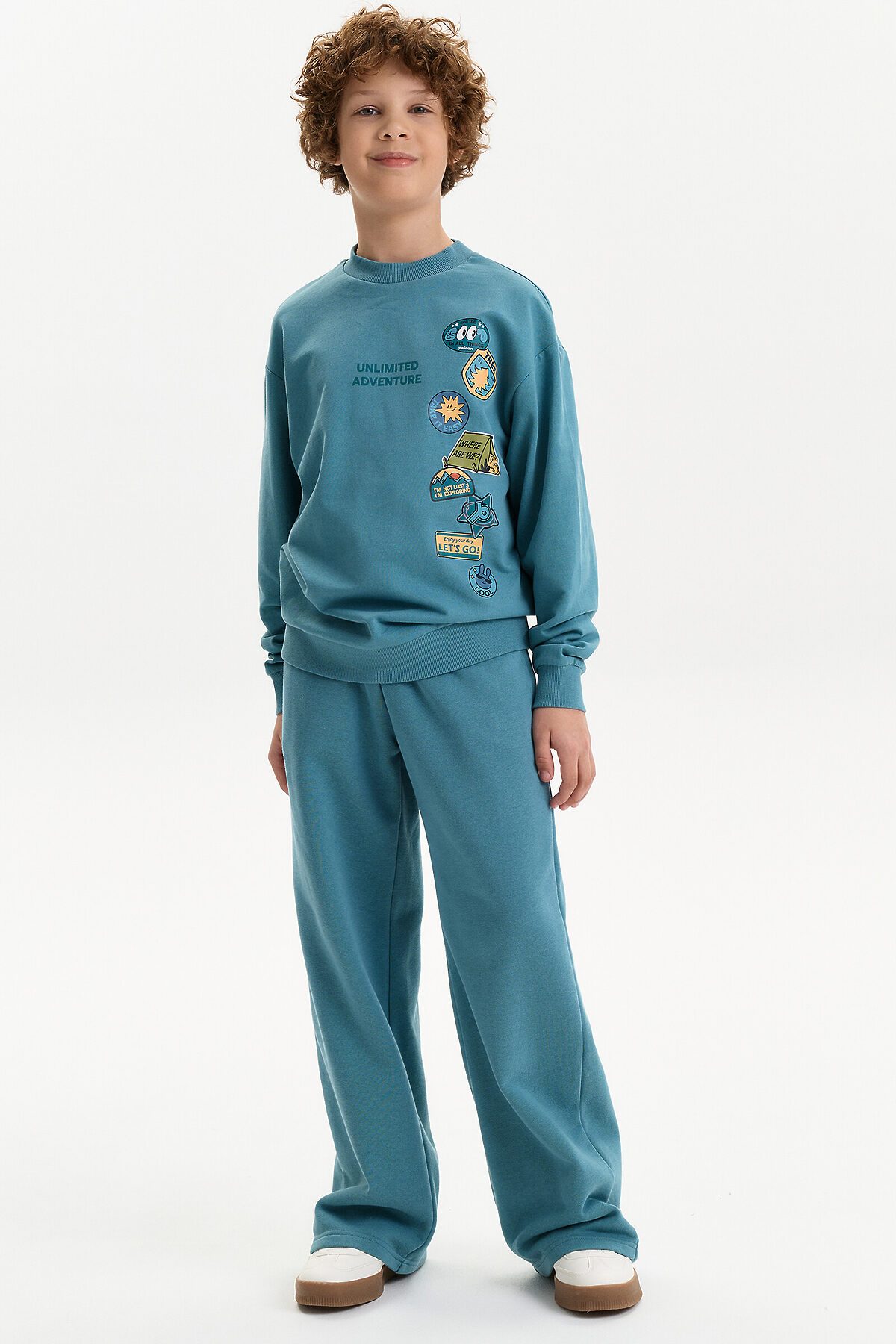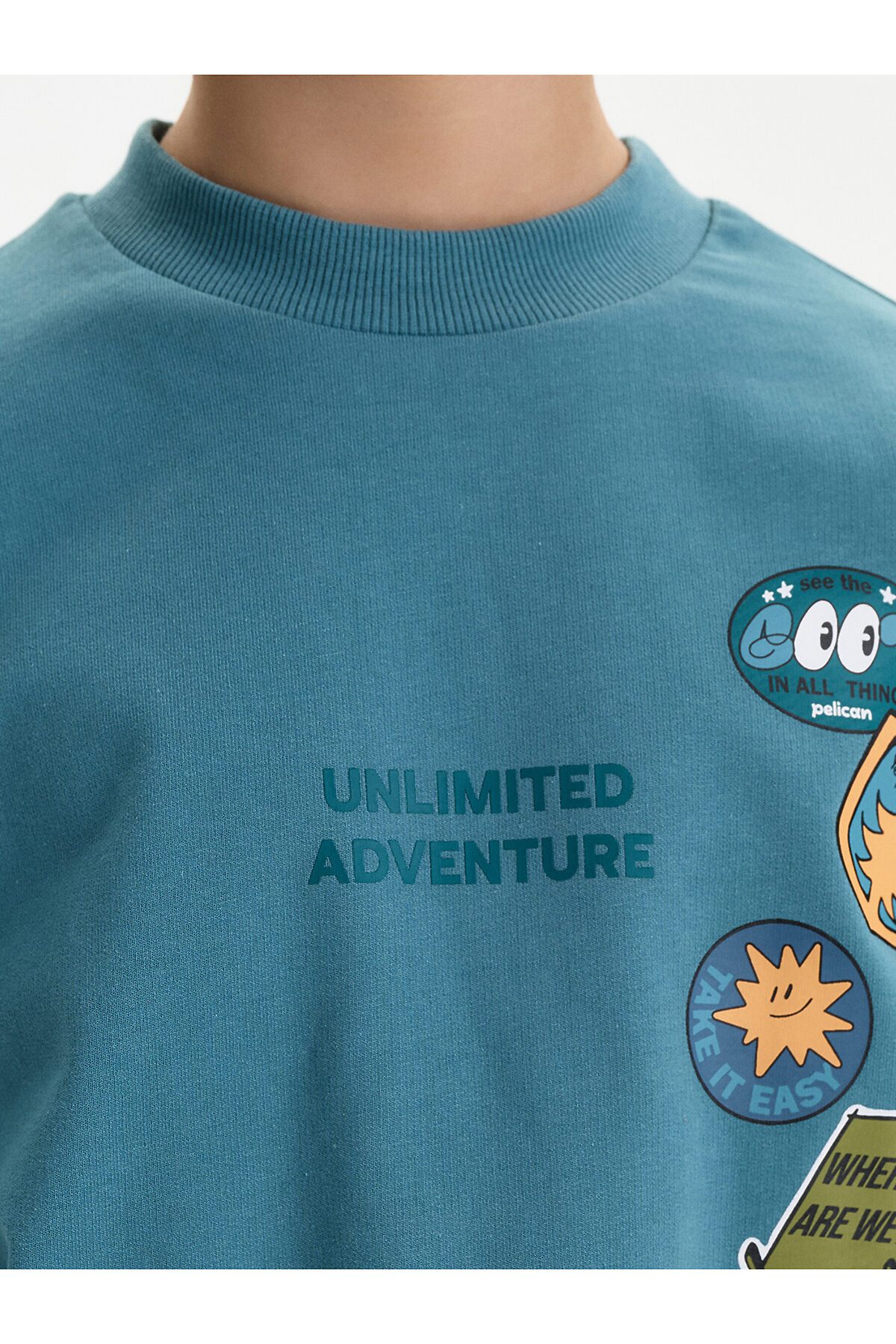 Свитшот из материала футер-петля. Манжеты и низ изделия из рибаны. Перевод текста: Безграничные приключения: Видеть во всём хорошее: Не напрягаться: Где мы?: Я не потерялся, я исследую: Наслаждайтесь своим днём: Вперёд!