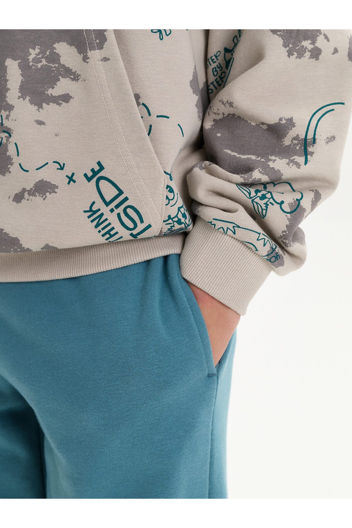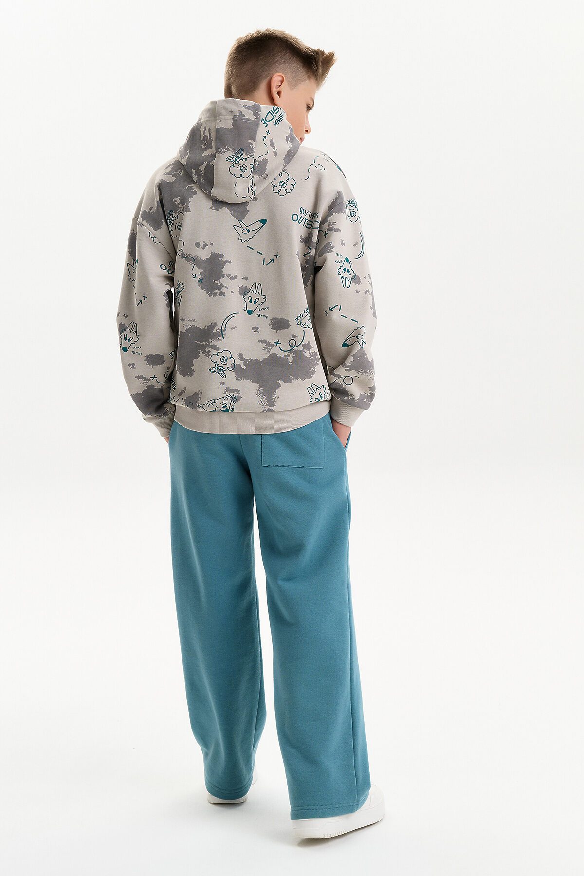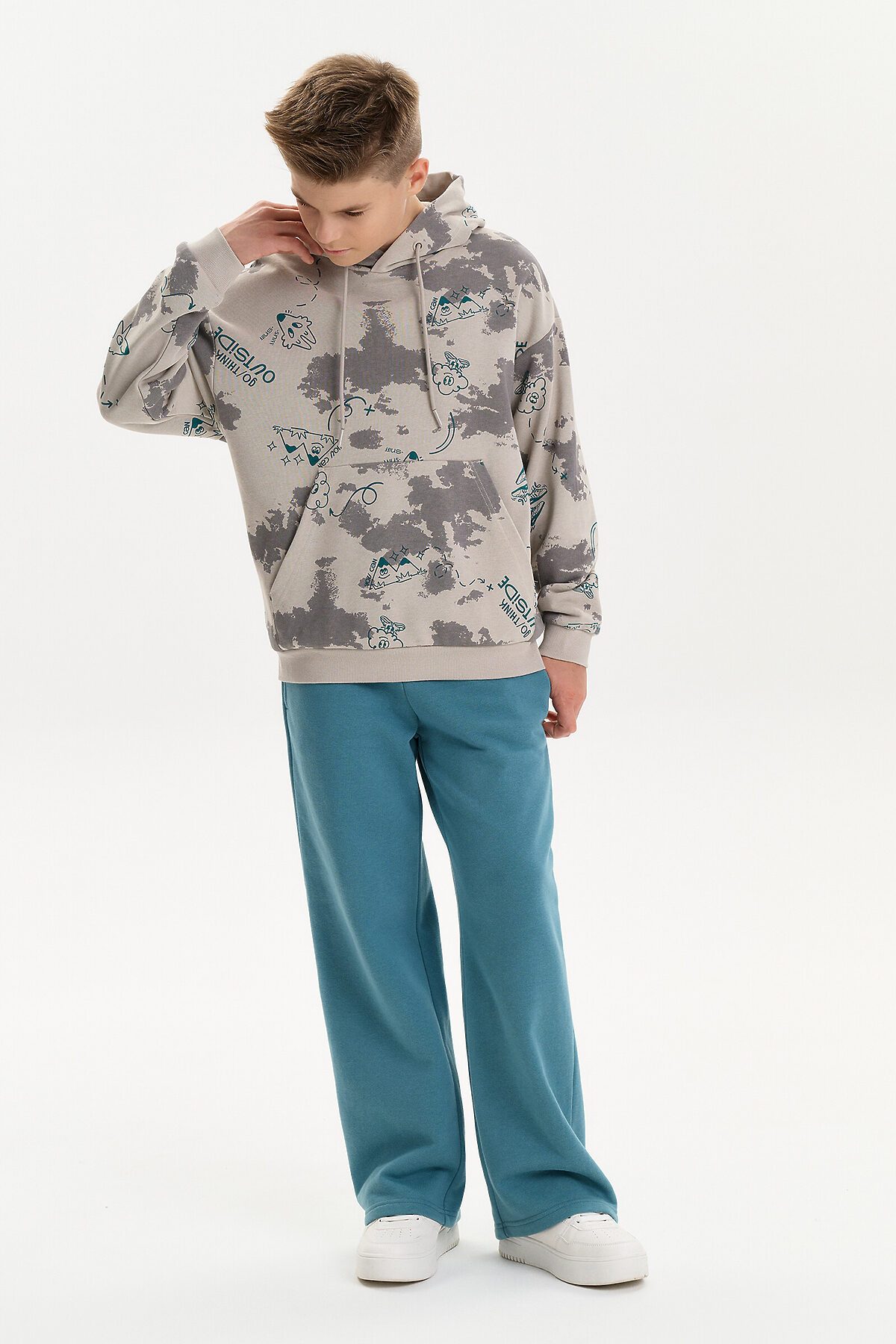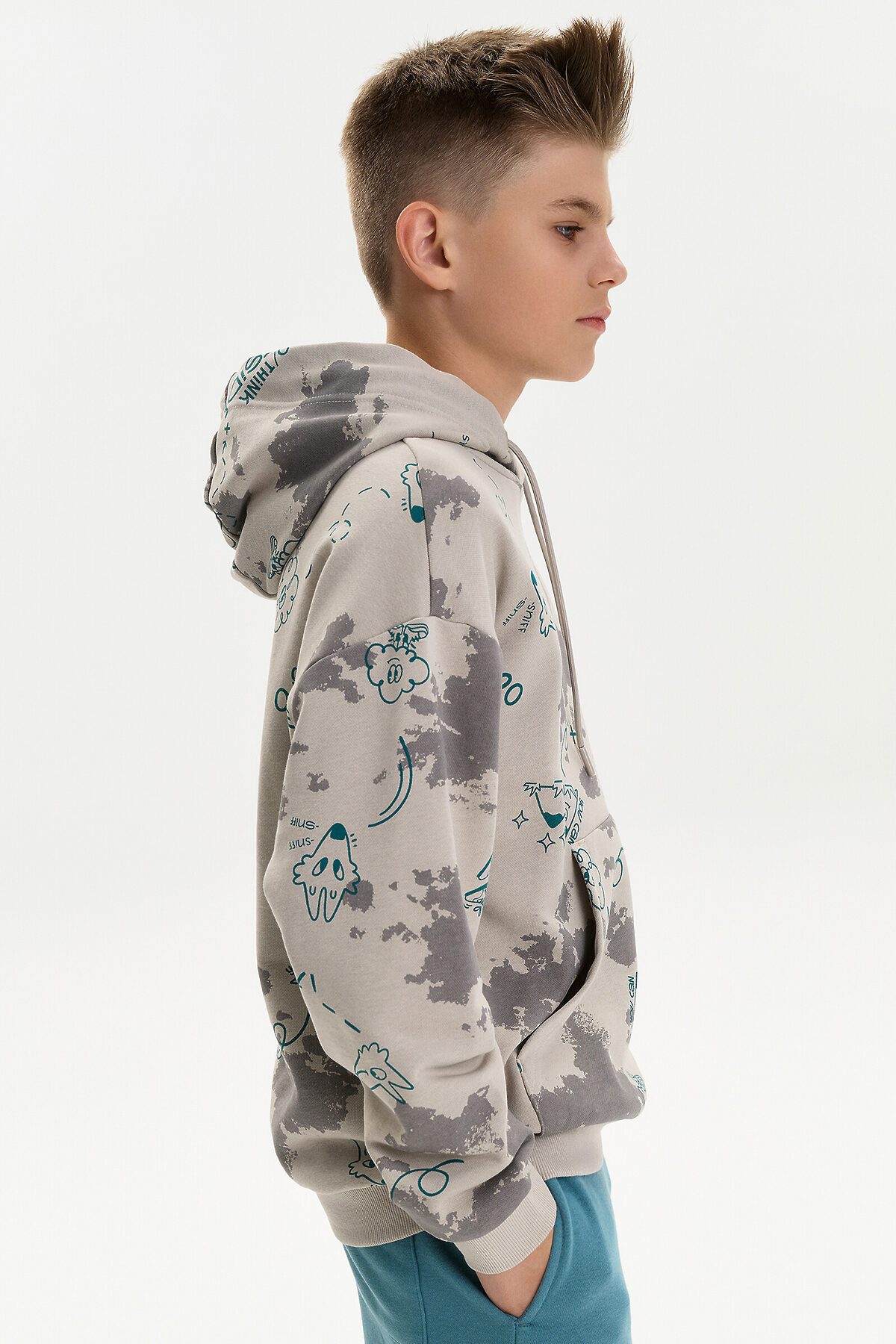 Худи из терри свободного покроя "оверсайз" со спущенным плечом, углубленной проймой. Низ рукава и низ изделия на манжете из рибаны. Капюшон двухшовный с запахом и люверсами, высота капюшона регулируется с помощью шнурка. По переду карман-кенгуру. Перевод текста: Step by step - шаг за шагом: you can - ты можешь: go/think outside - выйти на улицу/мыслить нестандартно.