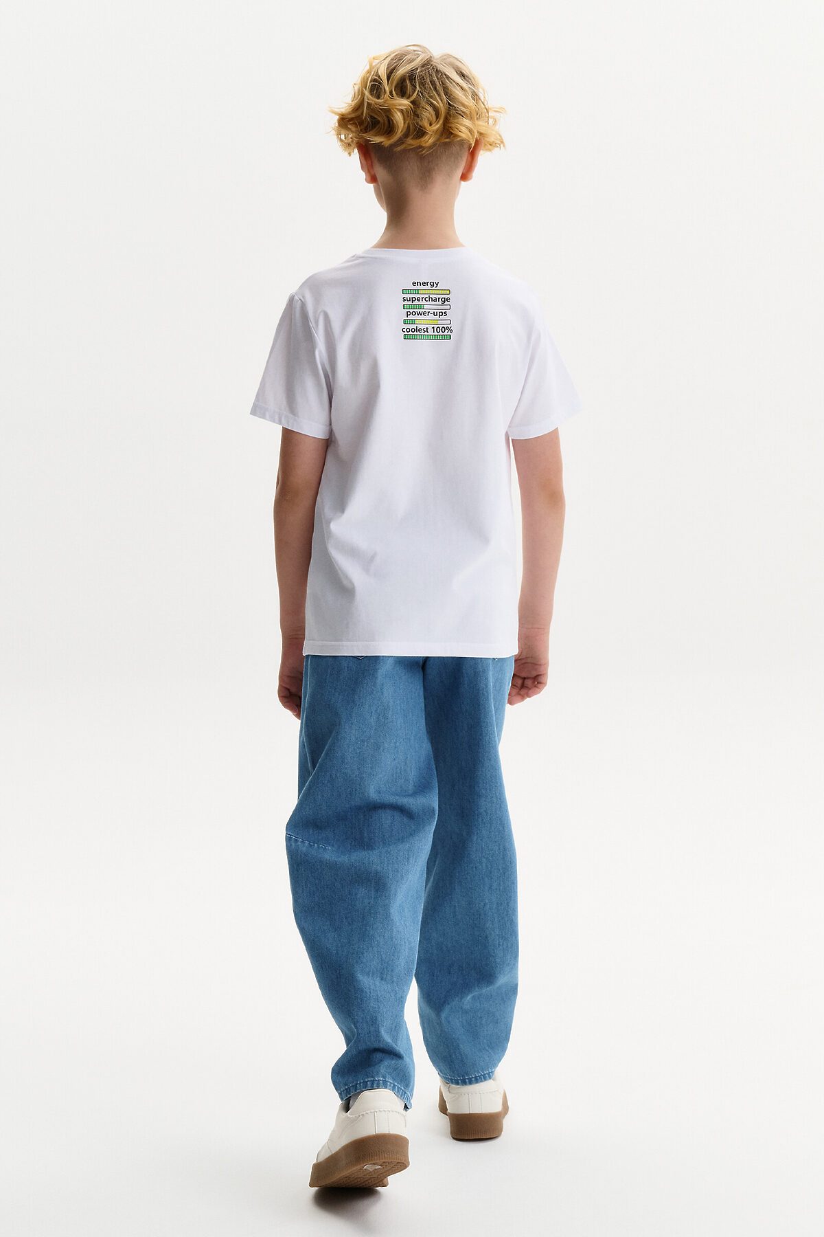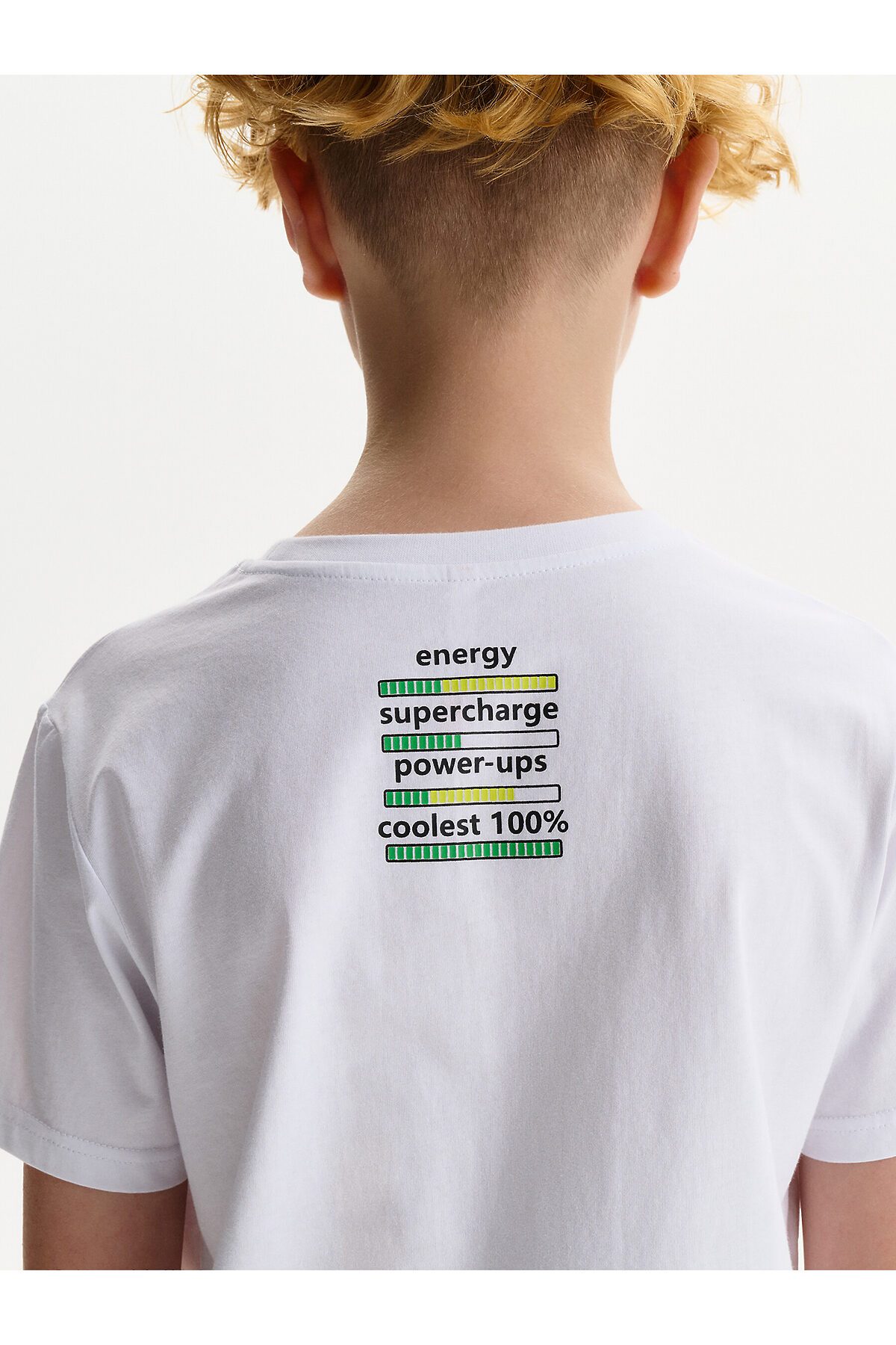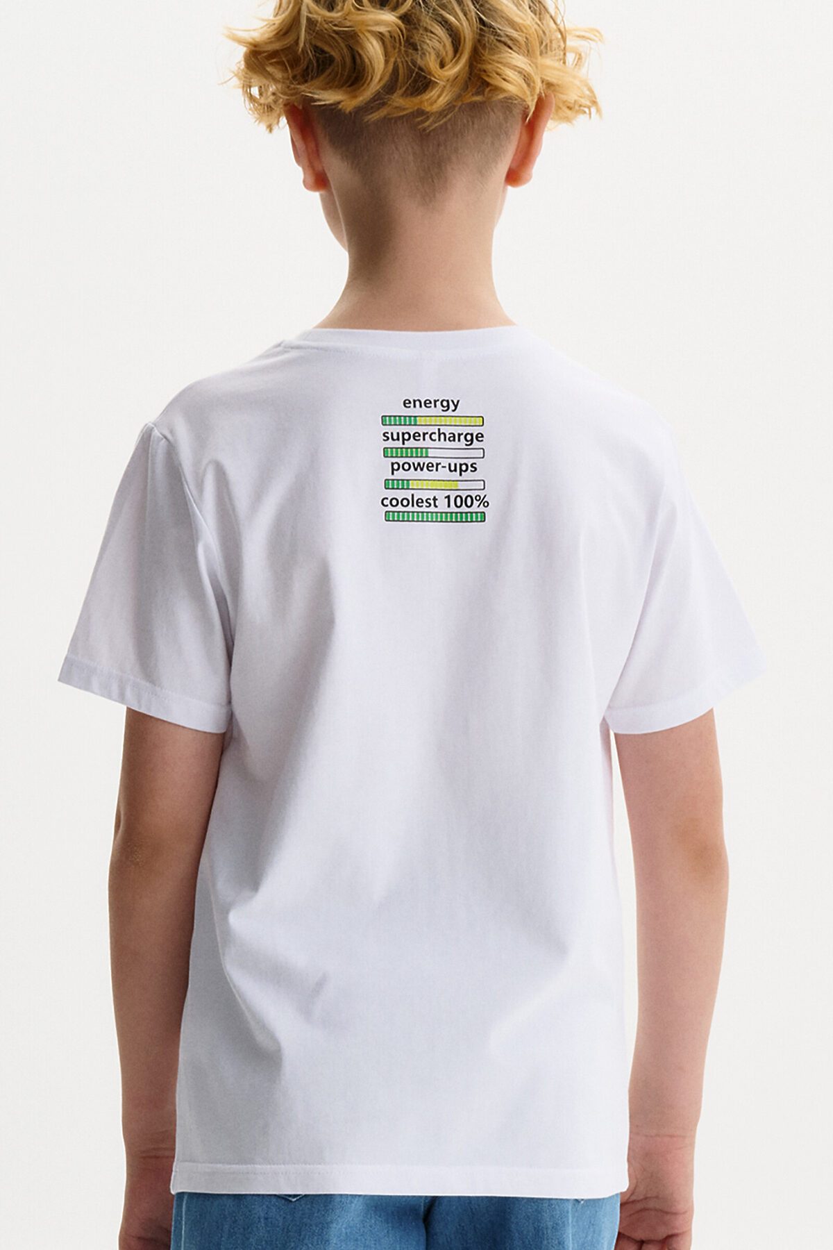 Футболка для мальчика - это идеальный выбор для активного ребенка. Вырез горловины обработан эластичной тканью — она прекрасно держит форму, не растягивается, при этом ребёнку удобно надевать и снимать футболку. Изделие неприхотливо в уходе. Футболка летняя с принтом по переду в виде диноавра (дракона) и надписями в стиле Digital. Перевод надписей: "always online" - всегда онлайн. На спине - текстовый принт, перевод текста: "energy, supercharge, power-ups, coolest 100%" - энергия, заряд, сила, крутость. Яркая спортивная футболка подходит как для подростков так и для малышей в детский сад. Выполненная из 100% хлопка, футболка подойдет для летних и весенних дней, а также это прекрасный вариант для малышей, которые ходят в детский сад.