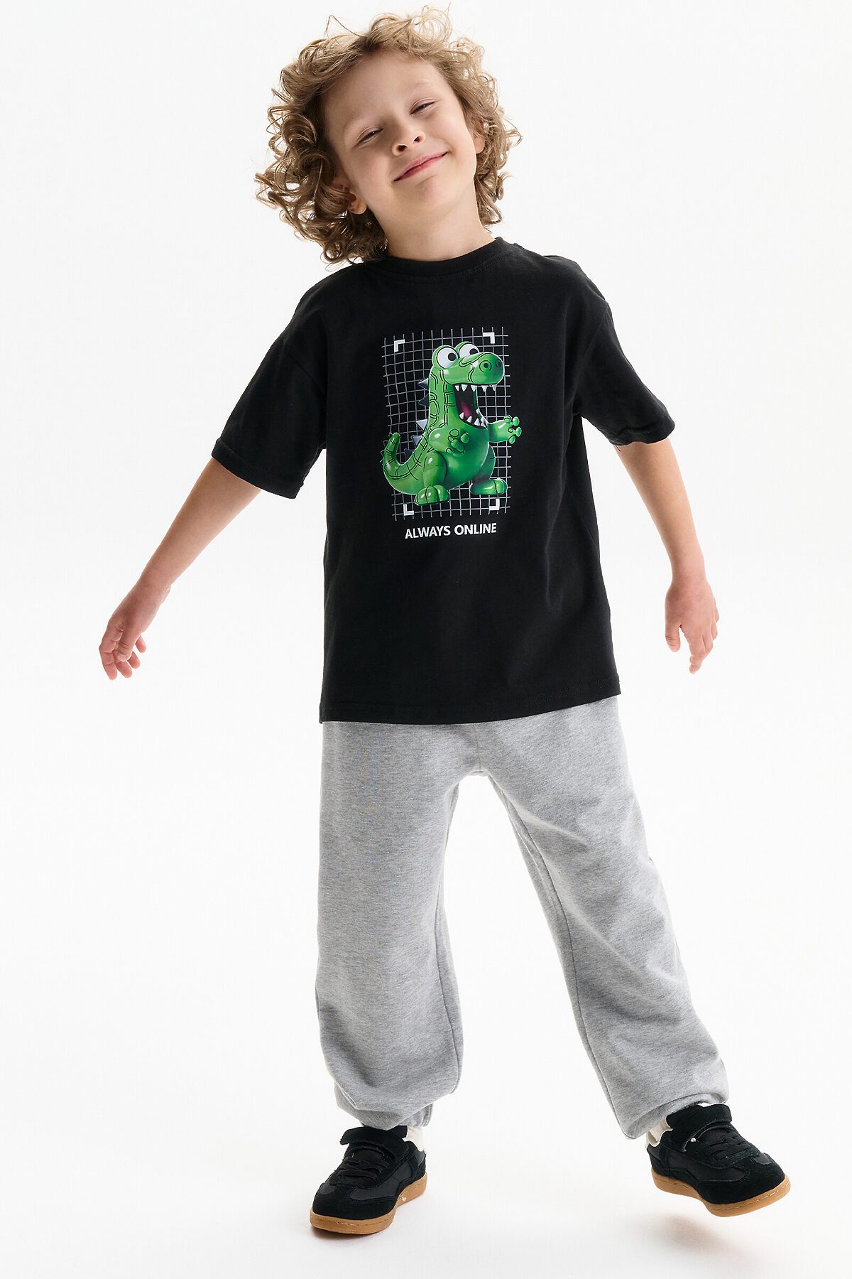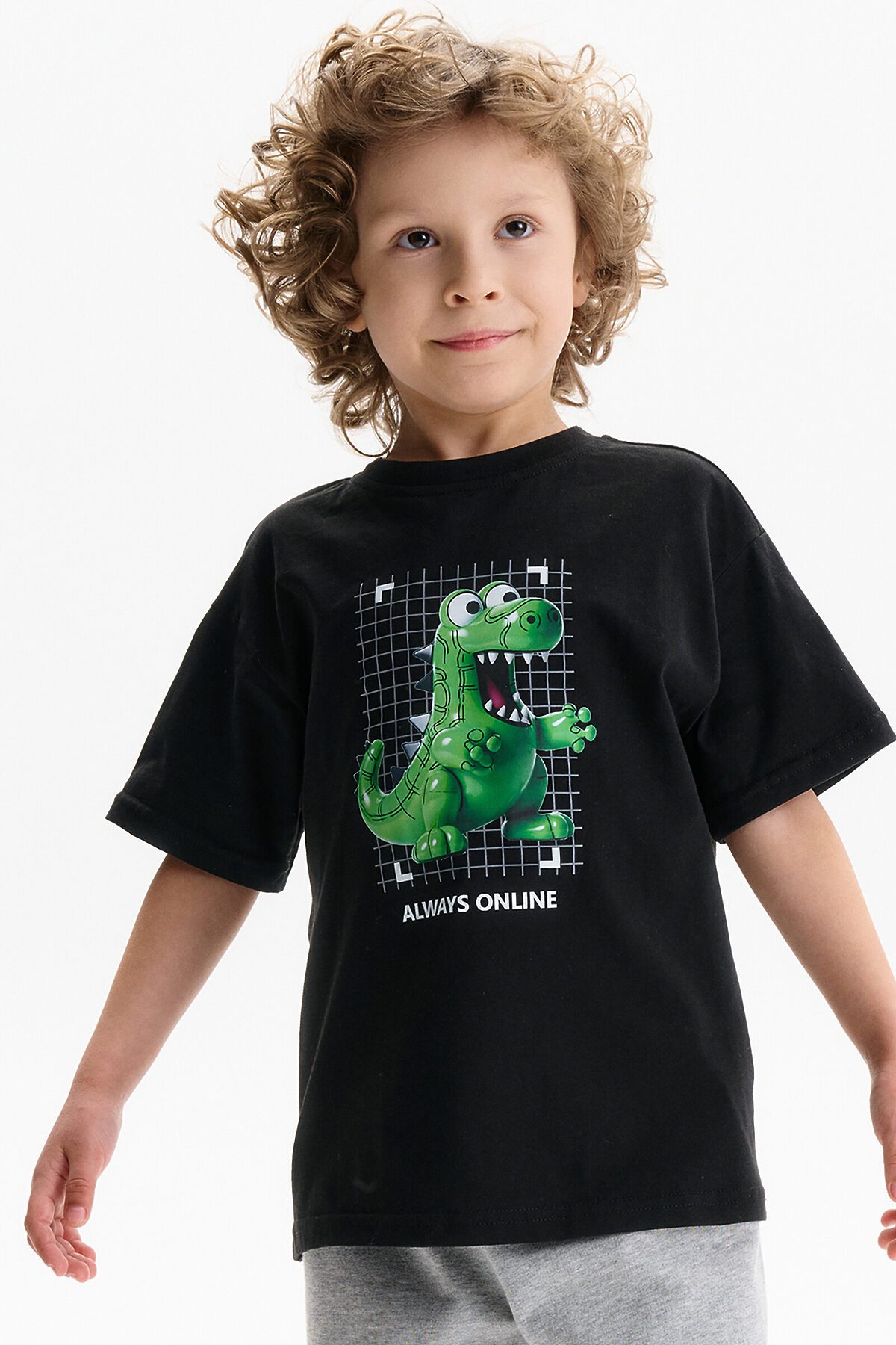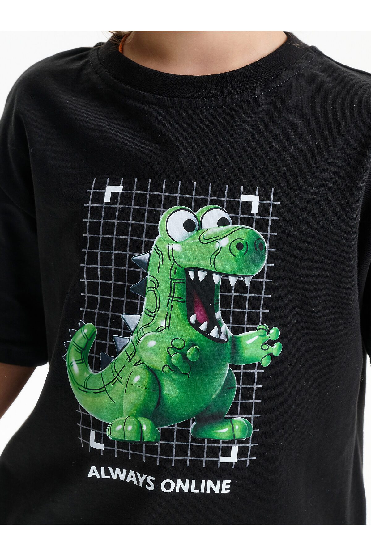 Футболка для мальчика свободного кроя - это идеальный выбор для активного ребенка. Вырез горловины обработан эластичной тканью — она прекрасно держит форму, не растягивается, при этом ребёнку удобно надевать и снимать футболку. Футболка летняя с принтом в виде динозавра с надписями на спине в стиле Digital подойдет для юных геймеров и любителей аниме. Перевод надписей "always online" - всегда онлайн, "energy, supercharcge, power-ups, coolest 100%" - энергия, заряд, сила, крутость. Футболка y2k станет отличным дополнением для любителей кавай (kawaii) и японской культуры.Яркая спортивная футболка подходит как для подростков так и для малышей в детский сад. Подходит для любого времени года.