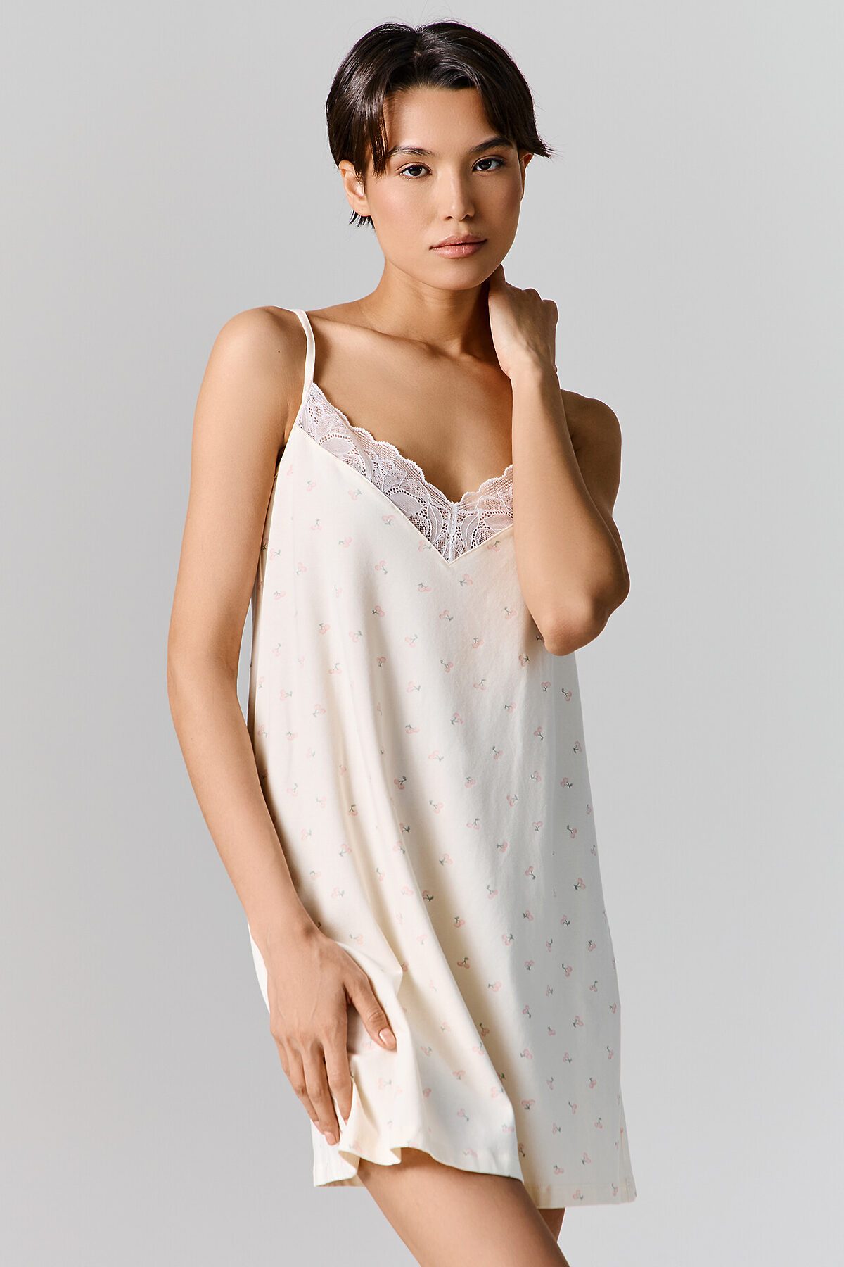 Сорочка ночная женская MARK FORMELLE, персиковые вишенки на молочном