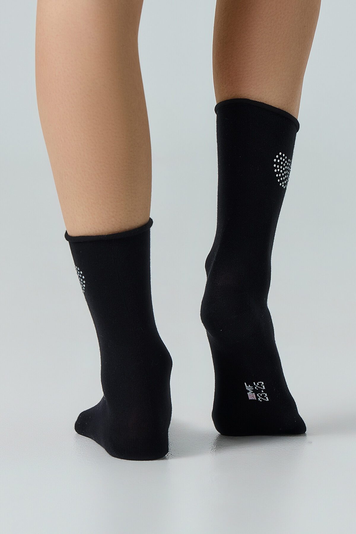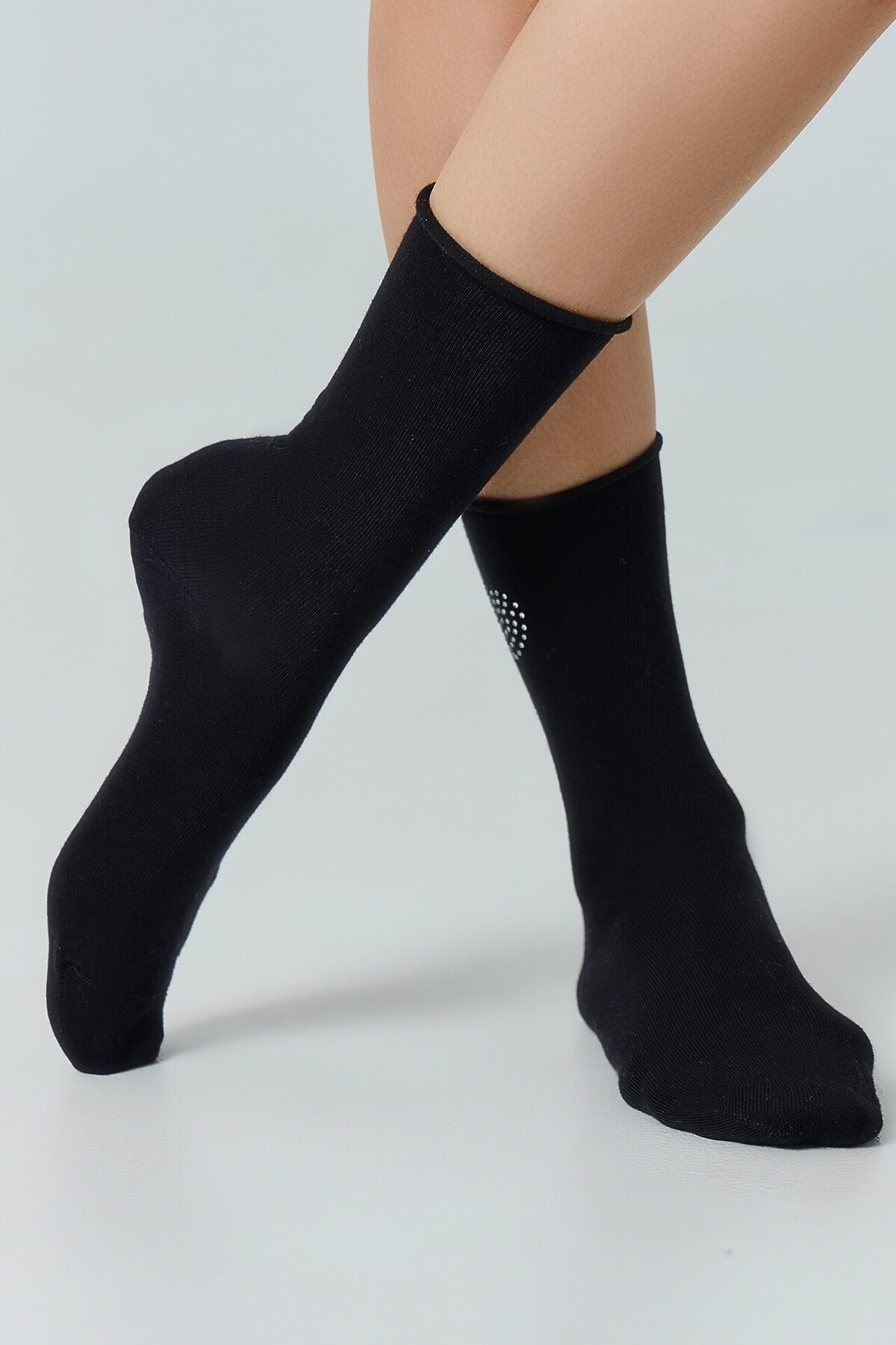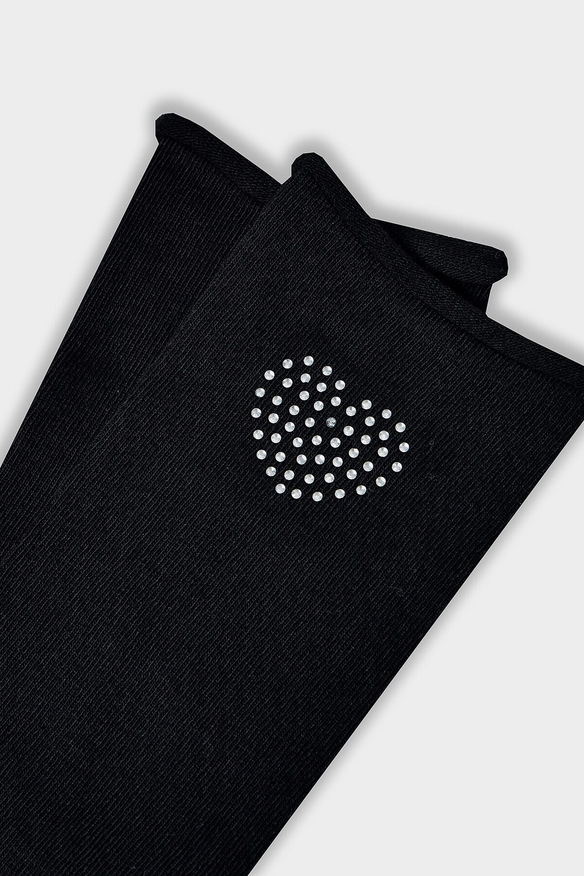 рис.3138 Женские классические, однотонные носки с рисунком в виде сердечка из страз.