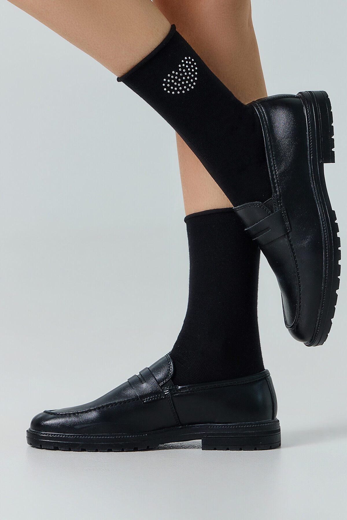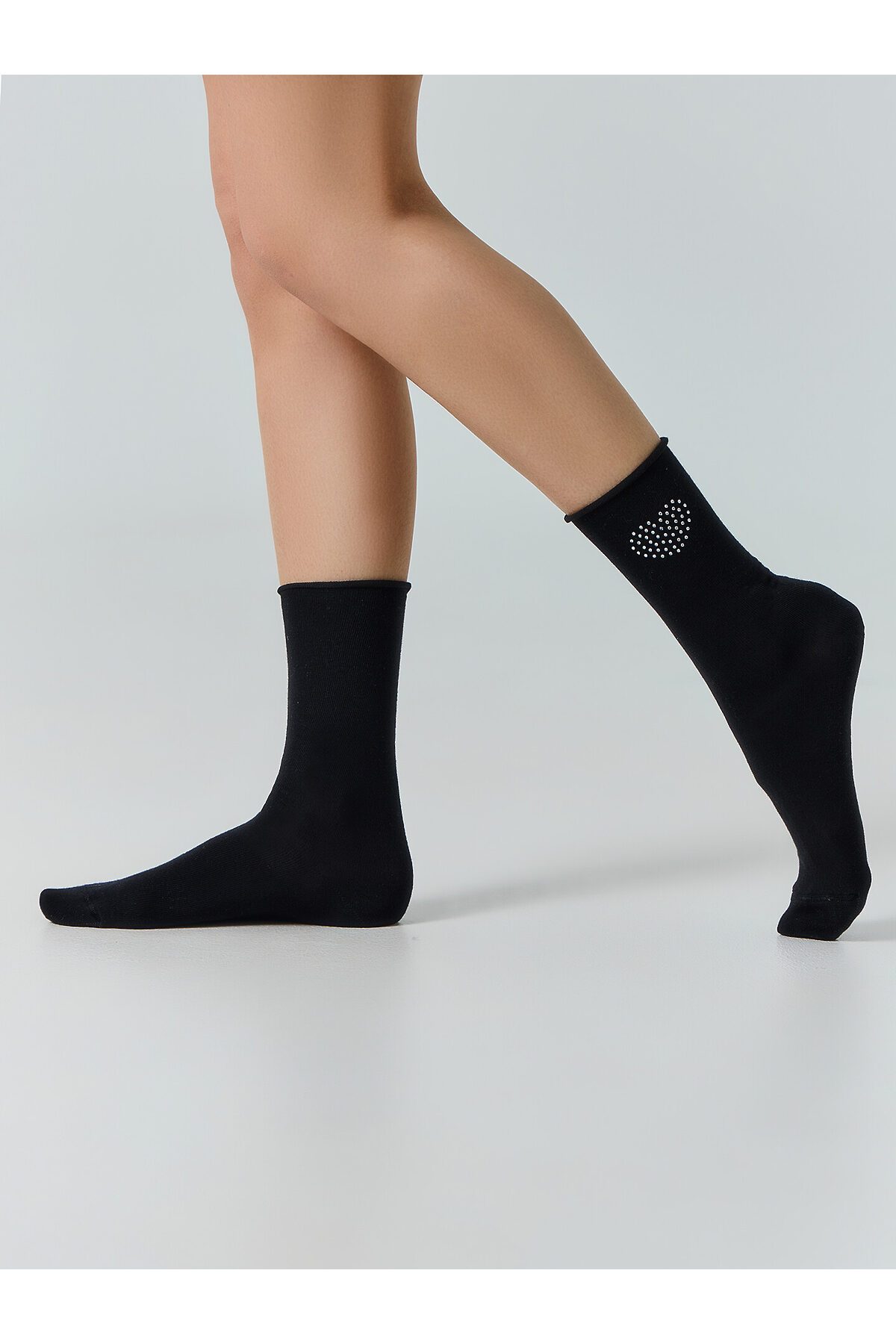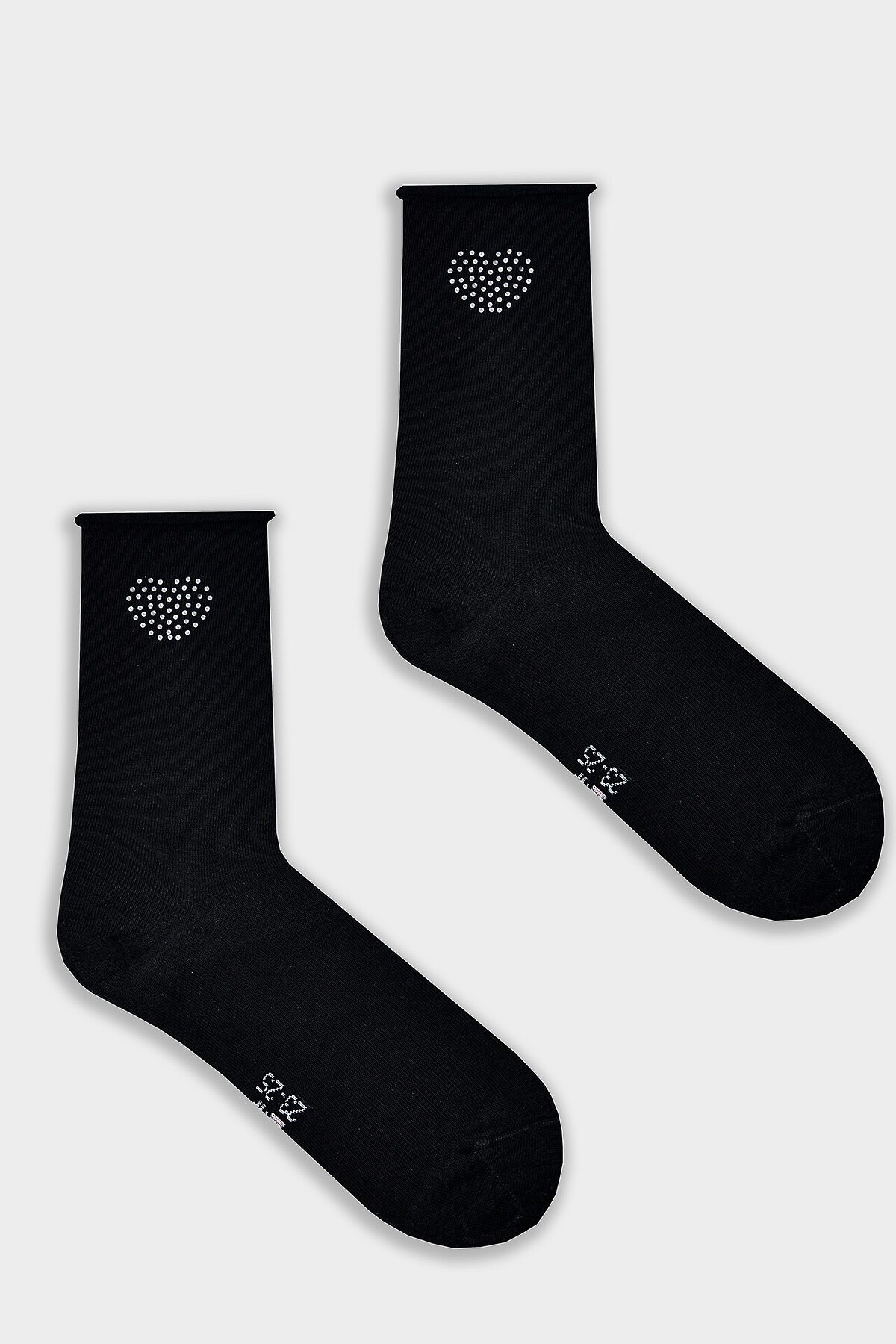 рис.3138 Женские классические, однотонные носки с рисунком в виде сердечка из страз.