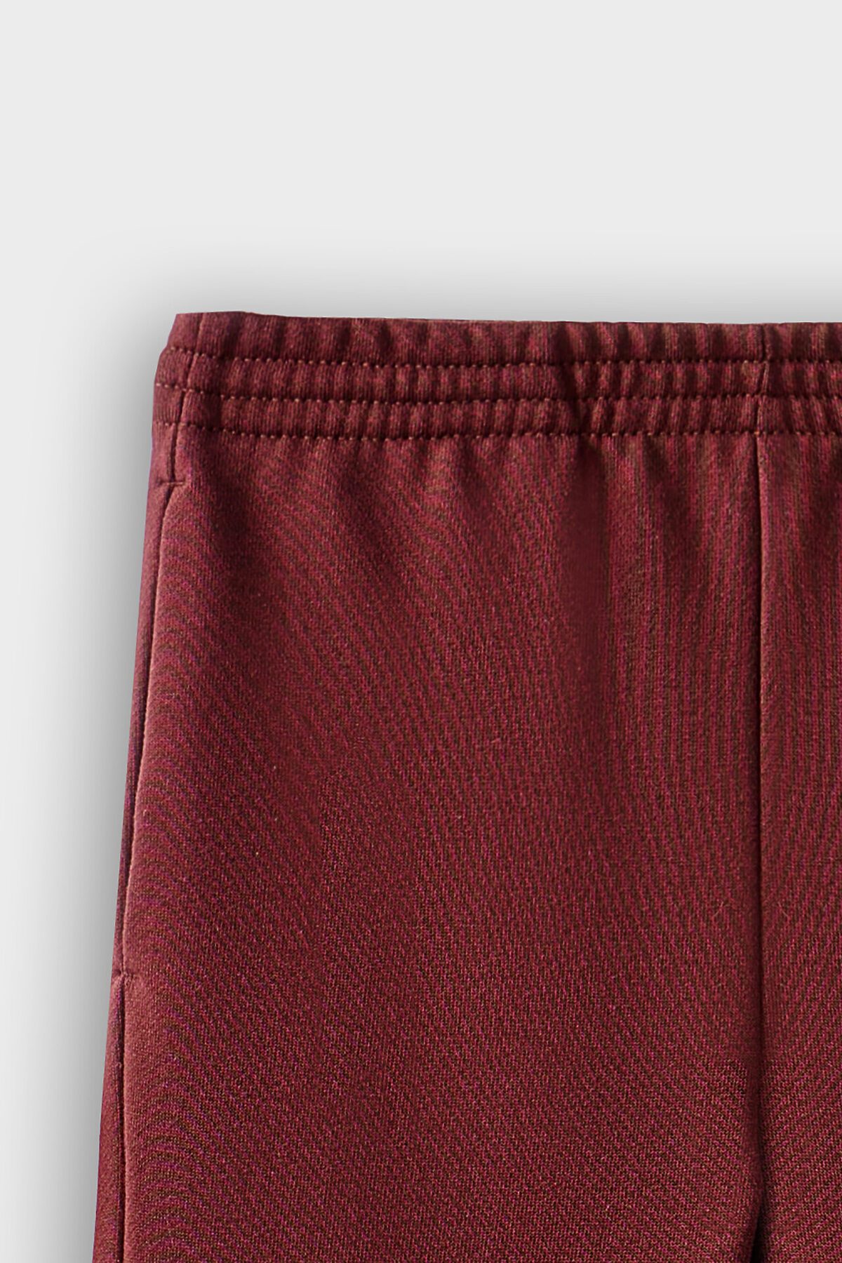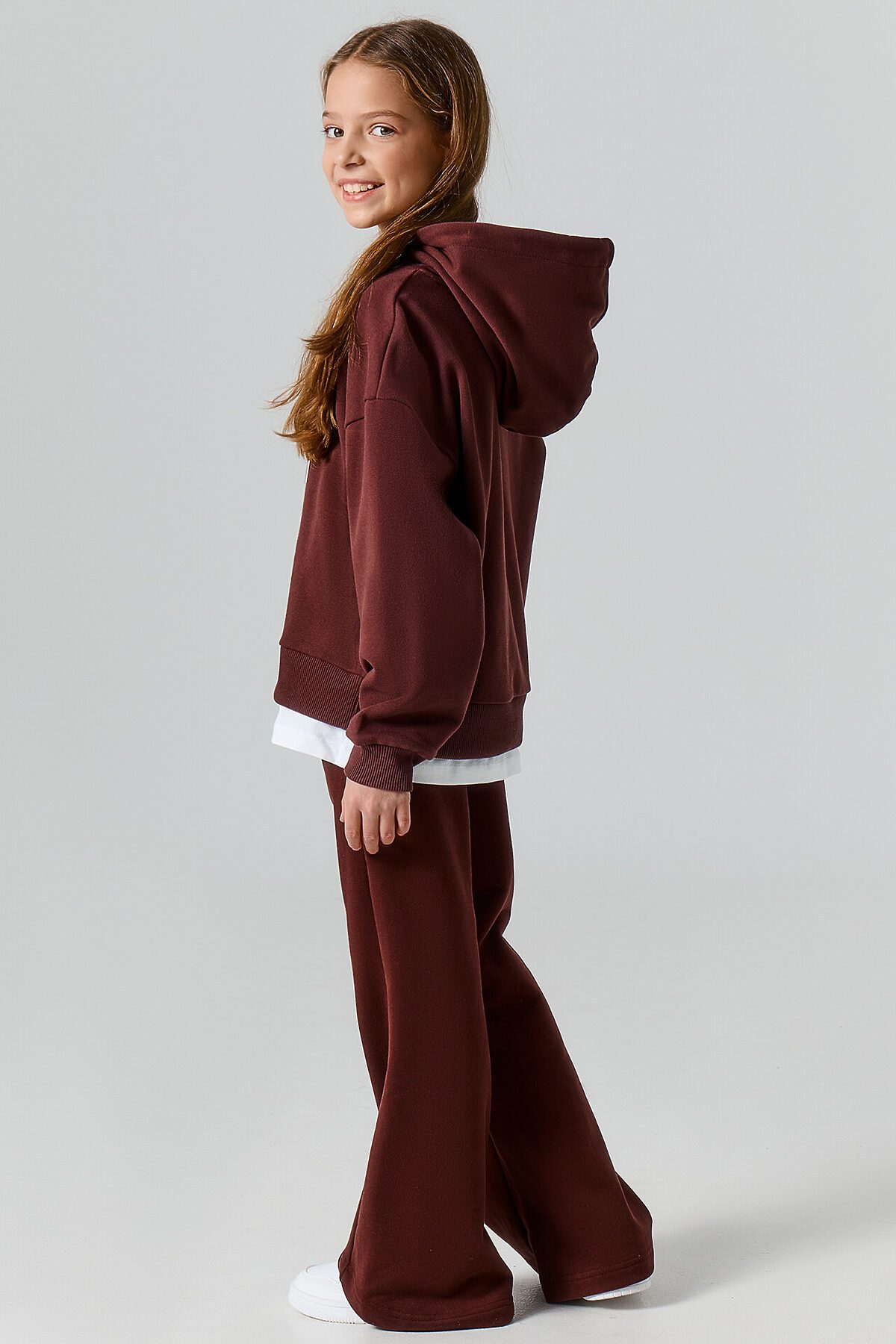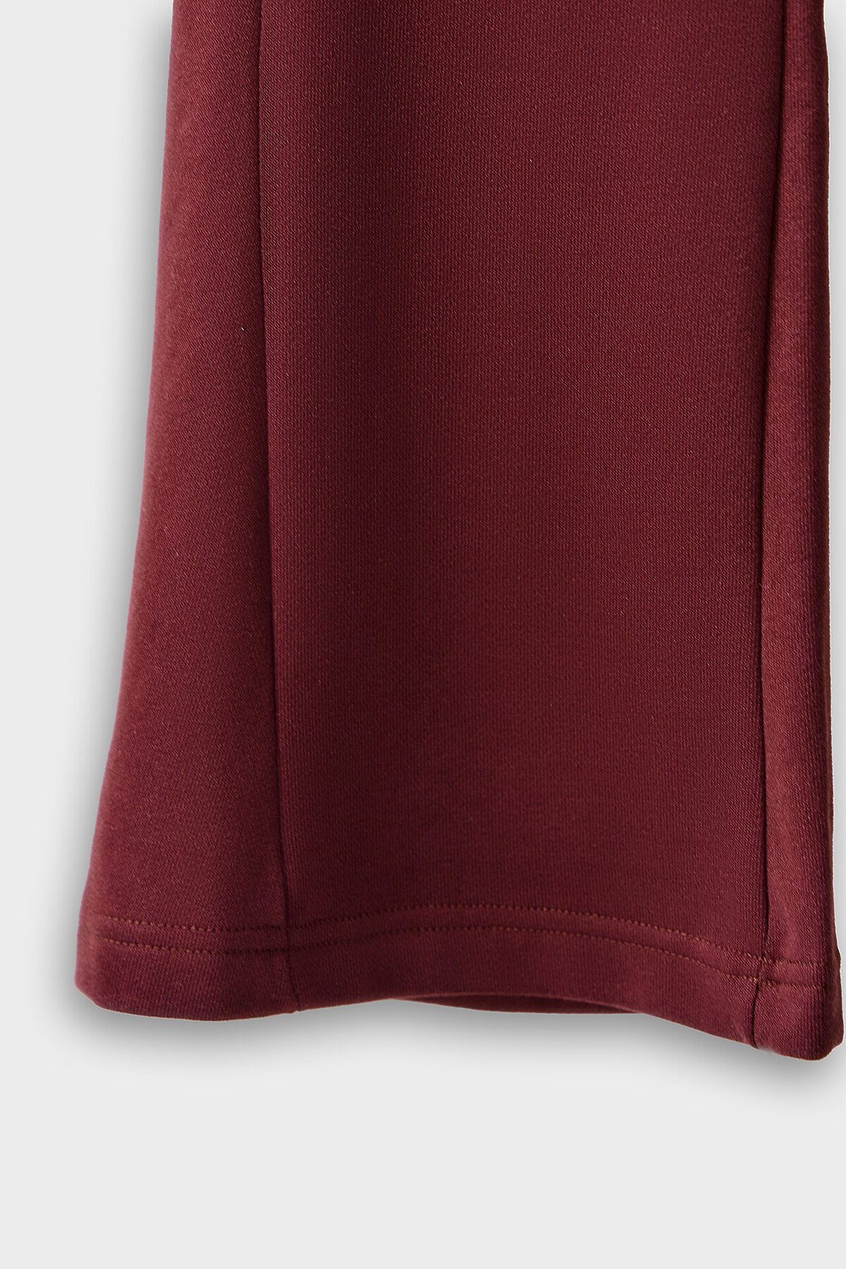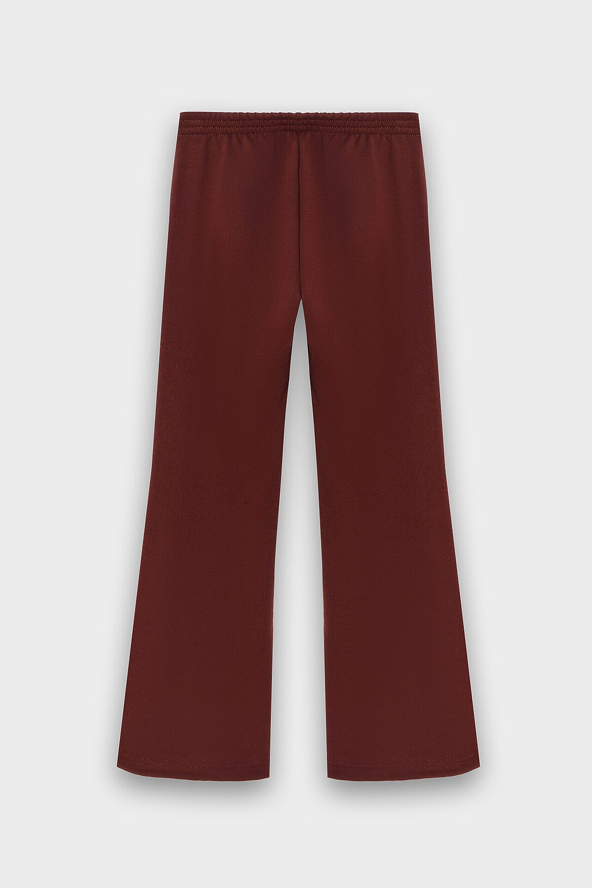Брюки свободного силуэта с высокой посадкой. Пояс цельнокроенный с эластичной тесьмой внутри 30RV. По поясу сделаны 2 отделочные строчки. Боковые швы перенесены вперед. Карманы в боковых швах. Низ с открытым срезом. По низу сделана отделочная строчка.