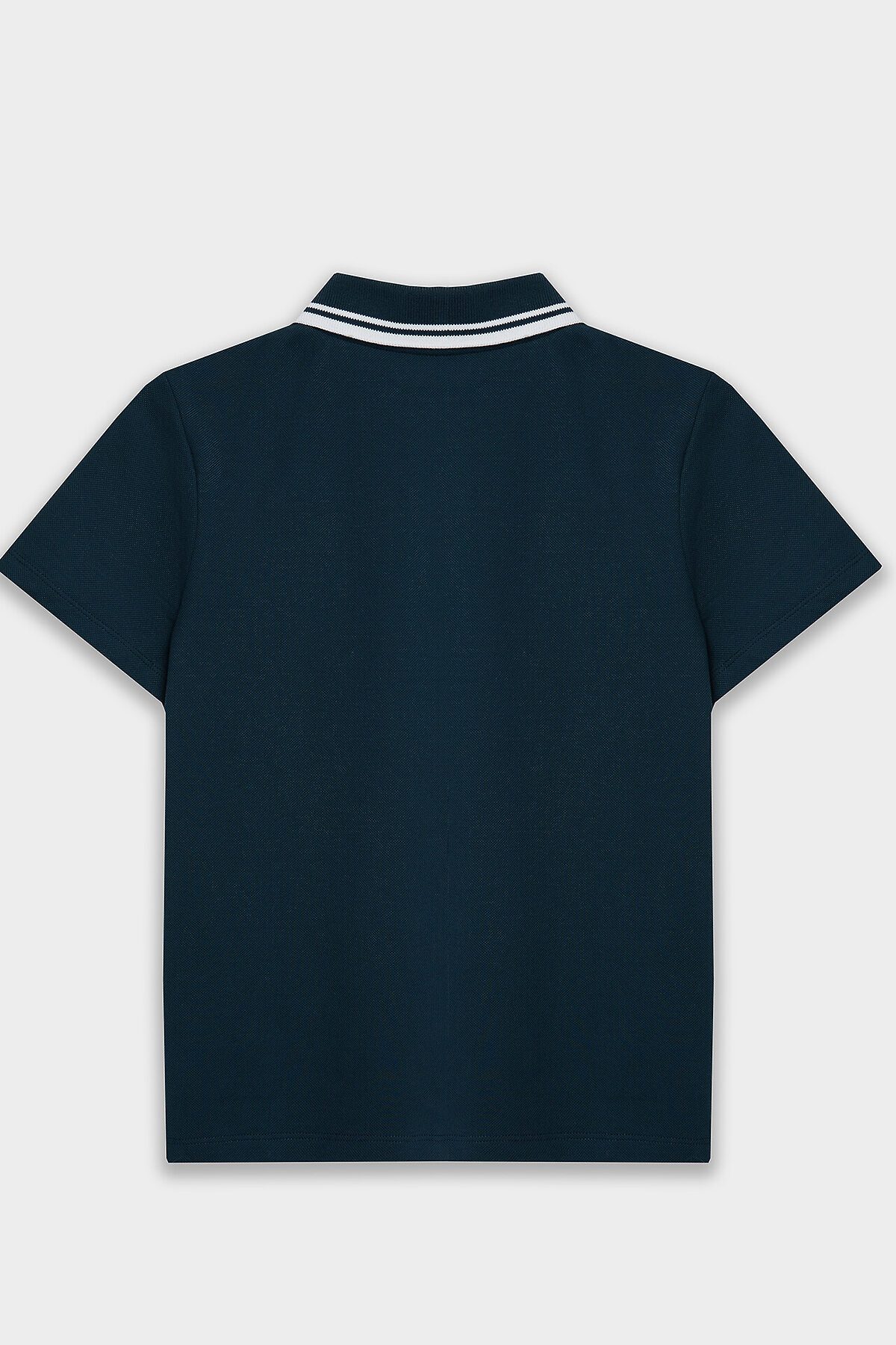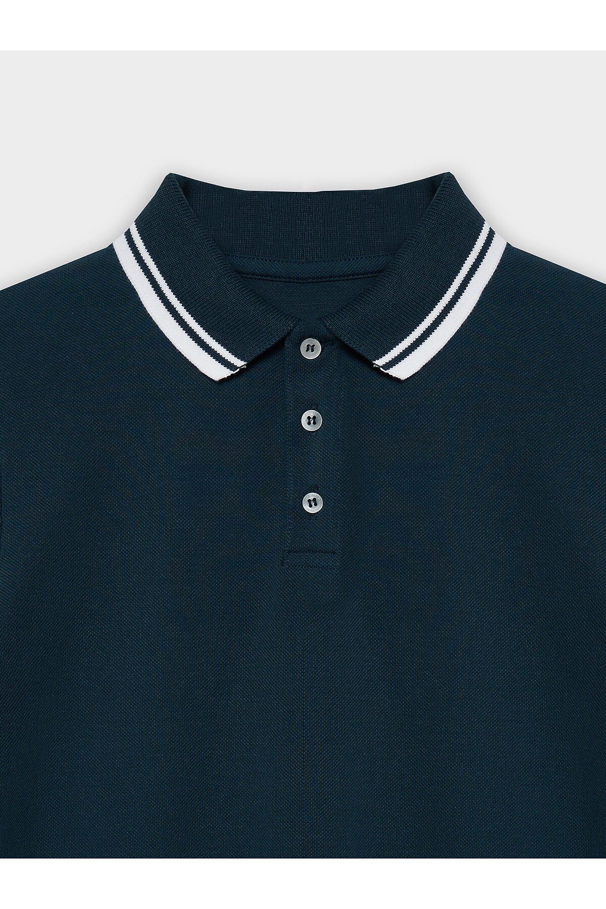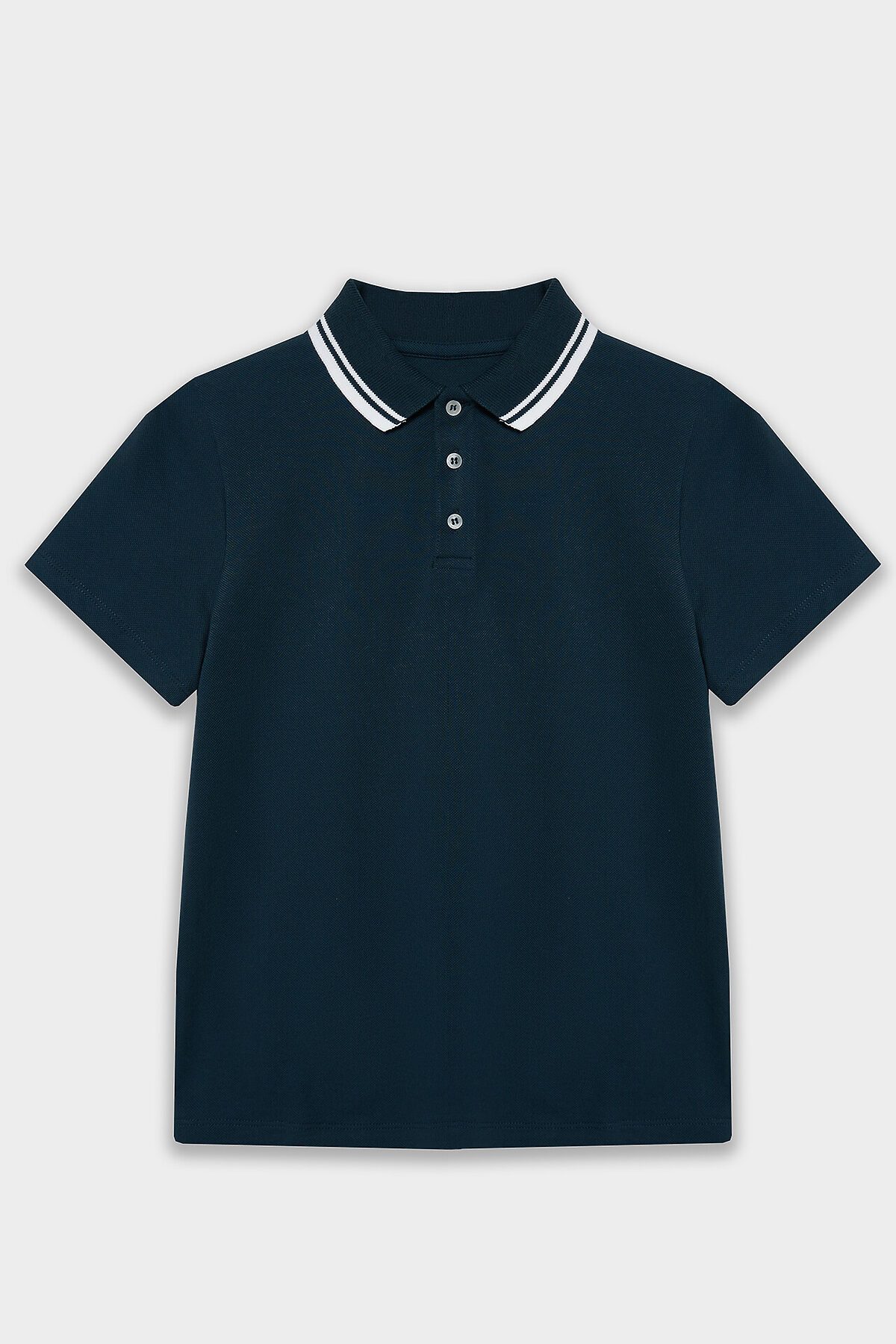 Силуэт прямой. Перед, спинка цельнокроеные. По переду изделия выполнен разрез на застежку на 3 вертикальные петли и пуговицы. В горловину втачен готовый воротник (довяз). Припуск шва втачивания воротника в горловину по спинке окантован бейкой, настроченной по перегибу на спинку между плечевыми швами. Рукава короткие одношовные. Низ изделия и рукавов обработаны швом в подгибку.