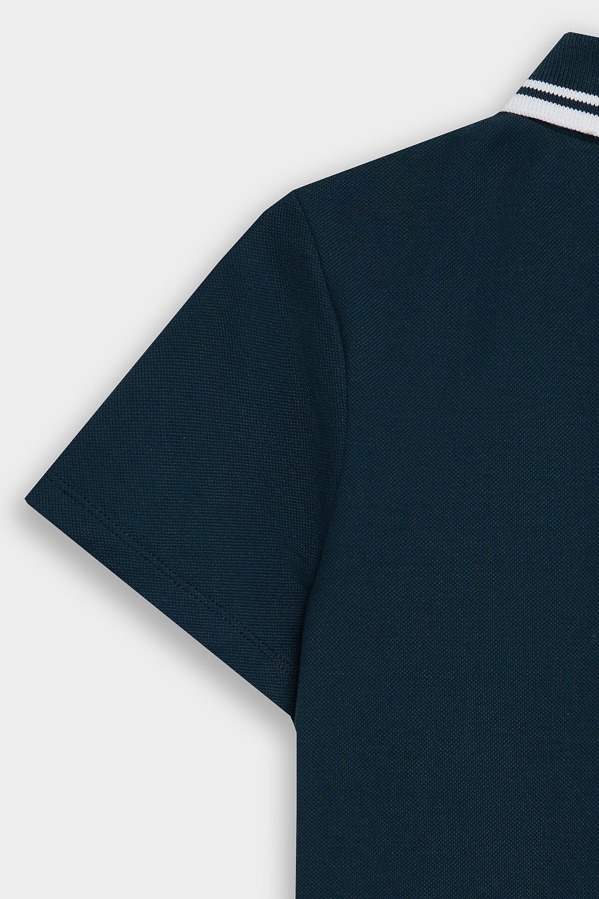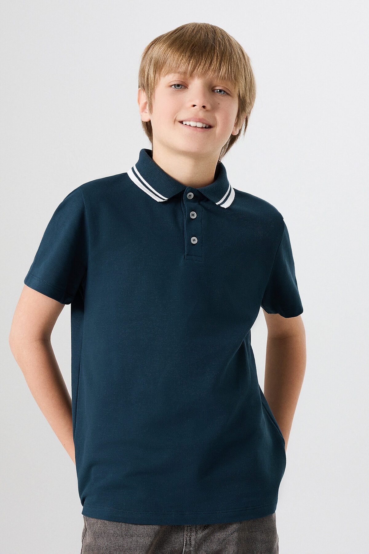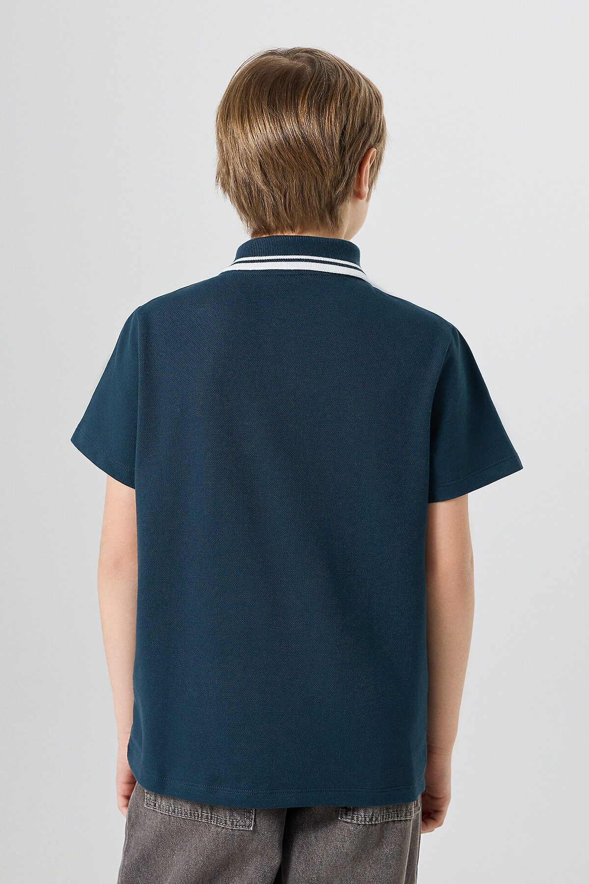 Силуэт прямой. Перед, спинка цельнокроеные. По переду изделия выполнен разрез на застежку на 3 вертикальные петли и пуговицы. В горловину втачен готовый воротник (довяз). Припуск шва втачивания воротника в горловину по спинке окантован бейкой, настроченной по перегибу на спинку между плечевыми швами. Рукава короткие одношовные. Низ изделия и рукавов обработаны швом в подгибку.