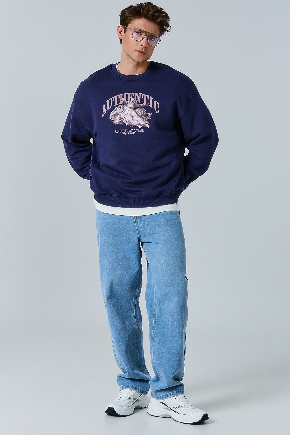 Мужской свитшот с надписью — это стильная модель свободного кроя для повседневной носки. Он выполнен из футера без начёса, который сочетает в себе лёгкость, воздухопроницаемость и мягкость.