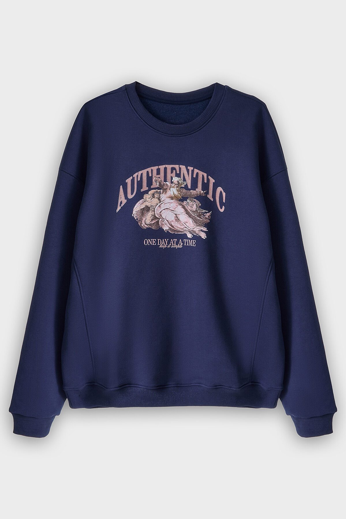 Свитшот имеет круглый вырез и длинные рукава со спущенным плечом, что создаёт расслабленный силуэт. Манжеты и нижняя планка из эластичной рибаны обеспечивают аккуратное прилегание и сохраняют форму. Надпись на английском языке добавляет модели мотивирующий и осмысленный акцент.