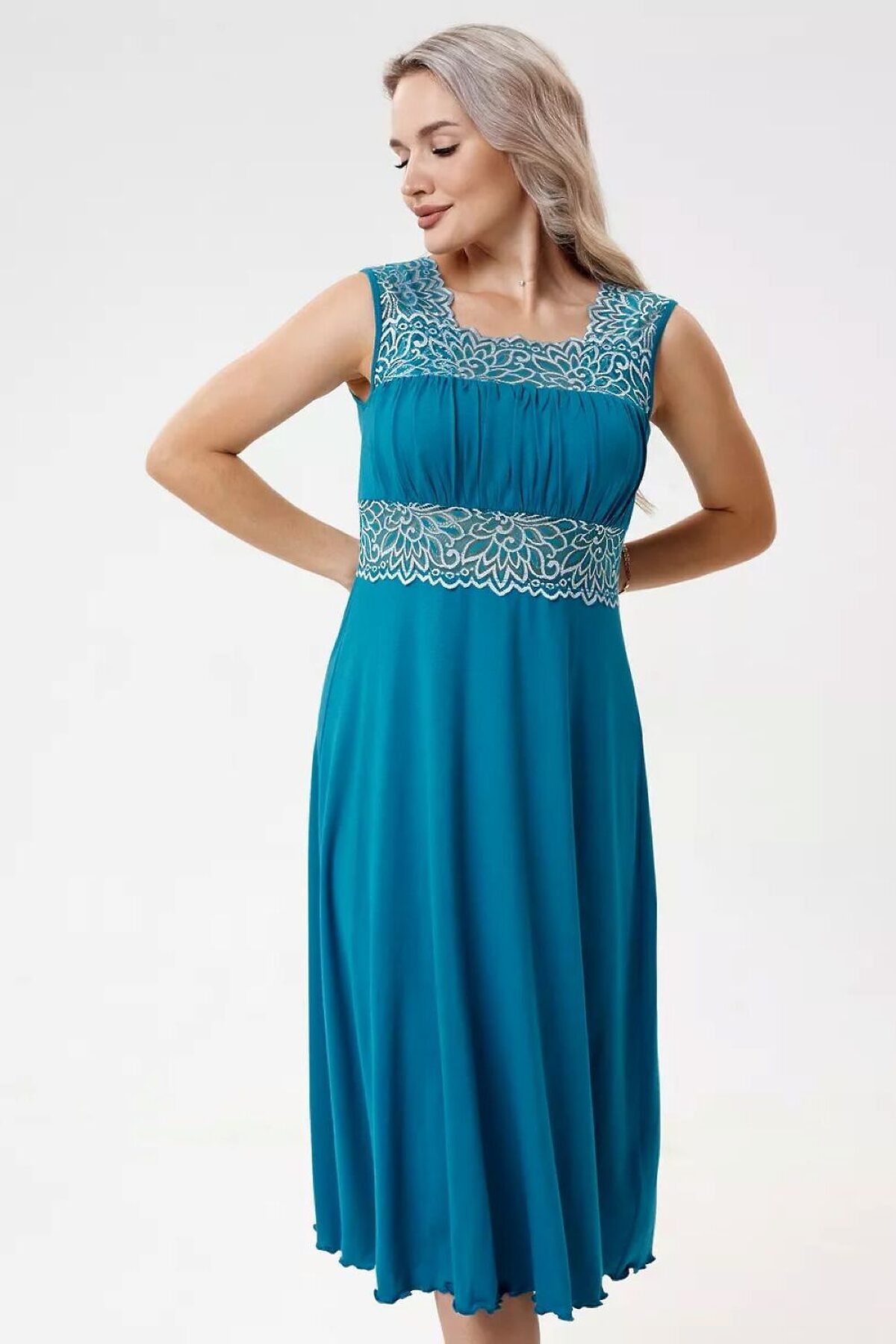 Ночная сорочка длинная прилегающего силуэта, расклешенная к низу от груди модная и стильная модель, выполненная из мягкой ткани и украшенная эластичным кружевом. Двойная кокетка с верхней задрапированной частью, удачно поддерживает грудь, создавая при этом приятное и комфортное ощущение. Верхние и нижние срезы кокеток и широкие бретели, выполненные из эластичного кружева, обеспечивают отличную посадку на плечах, не сковывают движения и мягко обхватывают тело. Ночнушка изготовлена из вискозной ткани, она мягкая и нежная для осязания, имеет малый вес, хорошо регулирует теплообмен, пропускает воздух, не электризуется, не вызывает раздражение кожи, удерживает цвет. Эта модель рубашки для сна больших размеров прилегающего силуэта является прекрасным выбором для женщин, которые хотят выглядеть красиво и чувствовать себя уютно и расслабленно дома. Она подходит для тех, кто ищет удобную и красивую ночную одежду. Данная модель подходит для девушек и женщин всех возрастов. Рубашка, благодарю крою подойдет для беременных и кормящих мам. Благодаря своей универсальности может использоваться как уютное домашнее платье. Стильное, современное и комфортное платье для дома, которое необходимо в любой сезон. Широкий размерный ряд: от маленьких до больших, сорочка сядет на любую фигуру. Подойдет на любой рост: для высоких, для невысоких и дам среднего роста. Подходящий вариант для каждого возраста. Приобретайте нашу одежду для дома и почувствуйте себя Королевой. Эффектная кружевная ночнушка станет отличным подарком. Ночнушка подойдет для походов в роддом. Сделайте выбор в пользу качественной и стильной одежды и наслаждайтесь приятным сном и отдыхом.