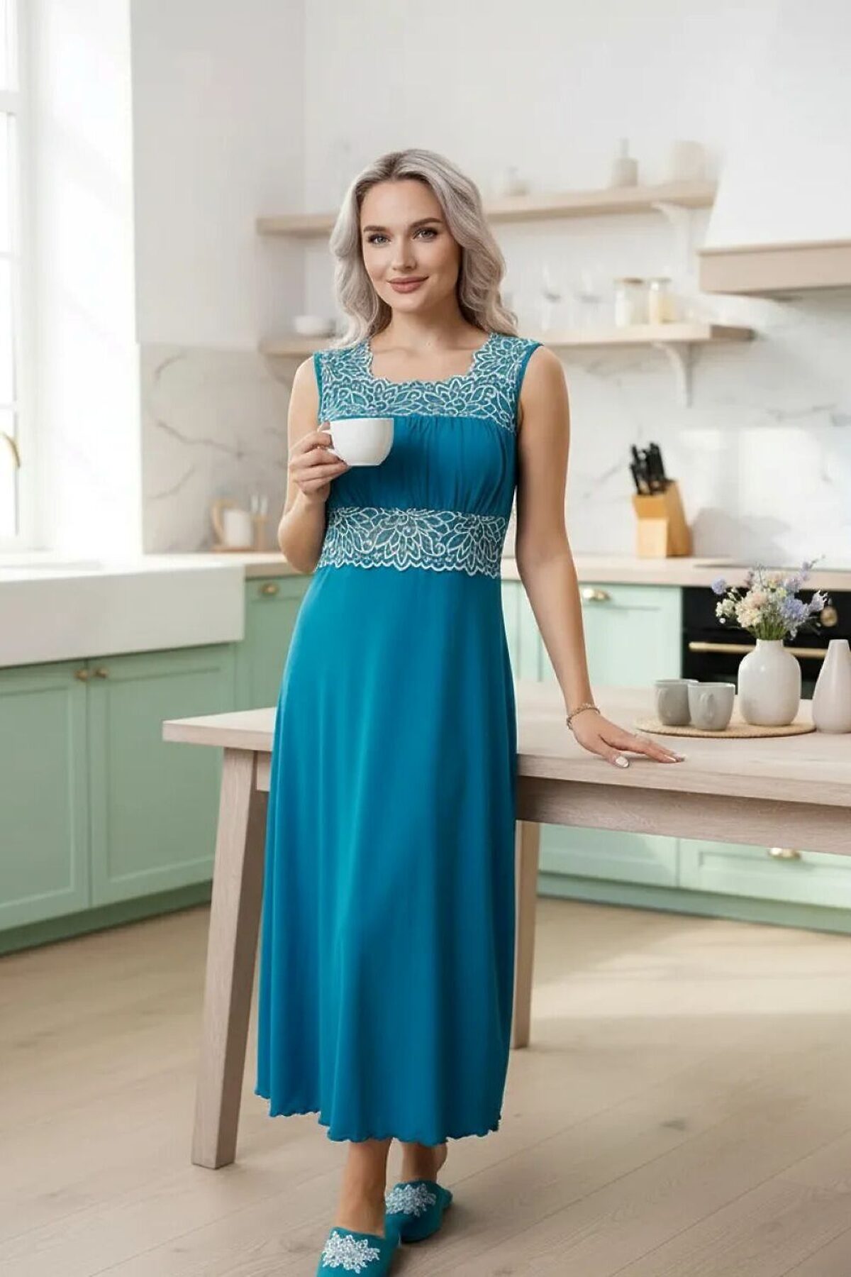 Сорочка Риана длинная НАТАЛИ, бирюза