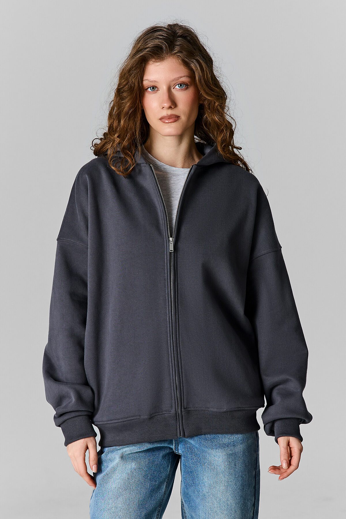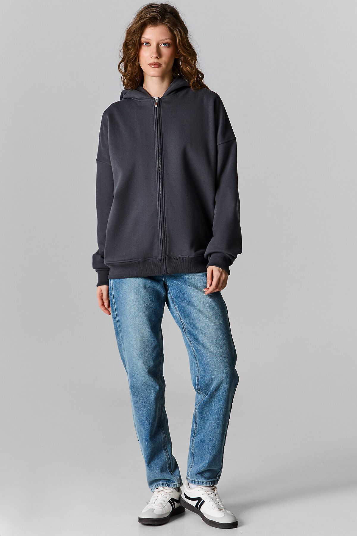Эта женская толстовка на молнии станет стильным и удобным дополнением вашего гардероба. Футер, из которого выполнена модель, обеспечивает мягкость и тепло, необходимые для прохладных дней. Свободный силуэт гарантирует максимальный комфорт и современный стиль, а капюшон добавляет дополнительную защиту от непогоды. Центральная застежка на тесьму-молнию обеспечивает удобство в носке. Длинные рукава с эластичными манжетами из рибаны и спущенное плечо подчеркивают современный стиль толстовки. В боковых швах расположены карманы с подкладкой из кулирки, что делает эту модель еще более практичной и удобной.