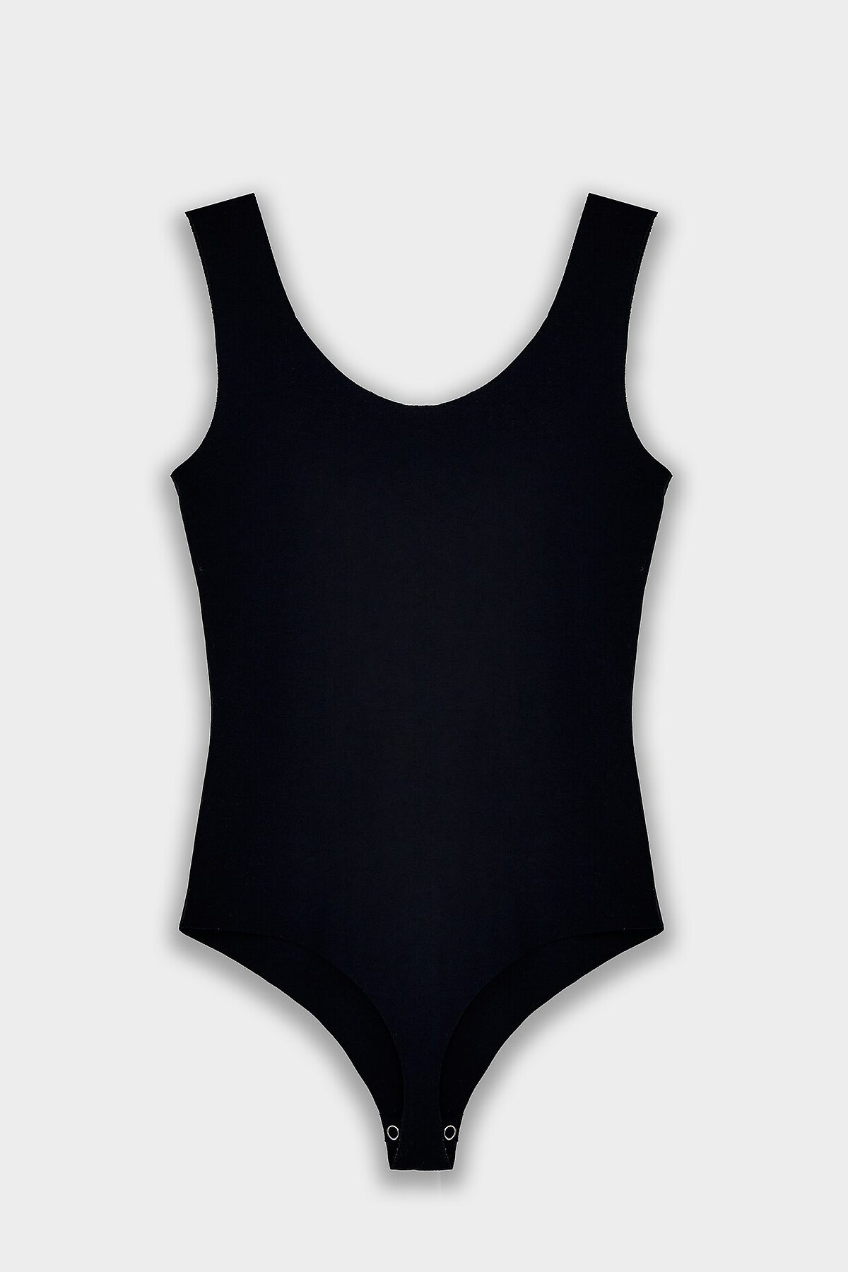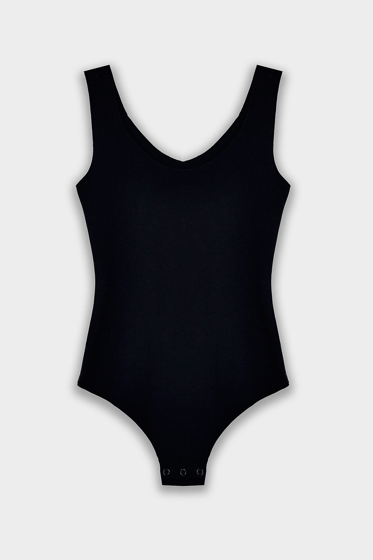 Боди женское из трикотажного кулирного полотна с коротким рукавом. Перед и спинка цельнокроенные. Круглая горловина по переду. По горловине и рукавам притачаны обтачки ширителем. Передние и задние срезы по ножкам обработаны эл. тесьмой 6мм. (жилка WT4-6, Девсел арт 13460W) на плоскошовной машине с верхним застилом. Ластовица из кулирного полотна. По переднему срезу ластовицы обработана застежка на 3-х книпперах.