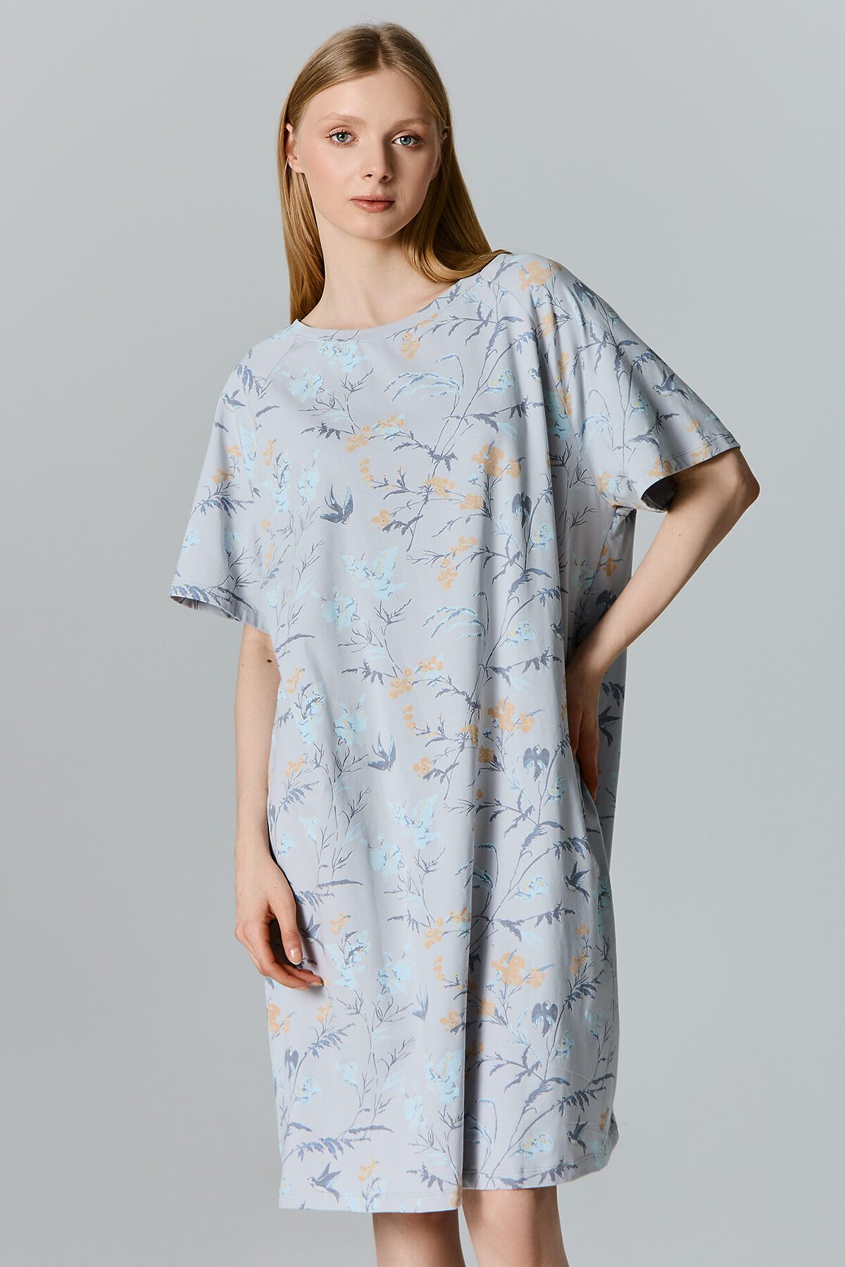 Сорочка ночная женская MARK FORMELLE, цветочки на сером