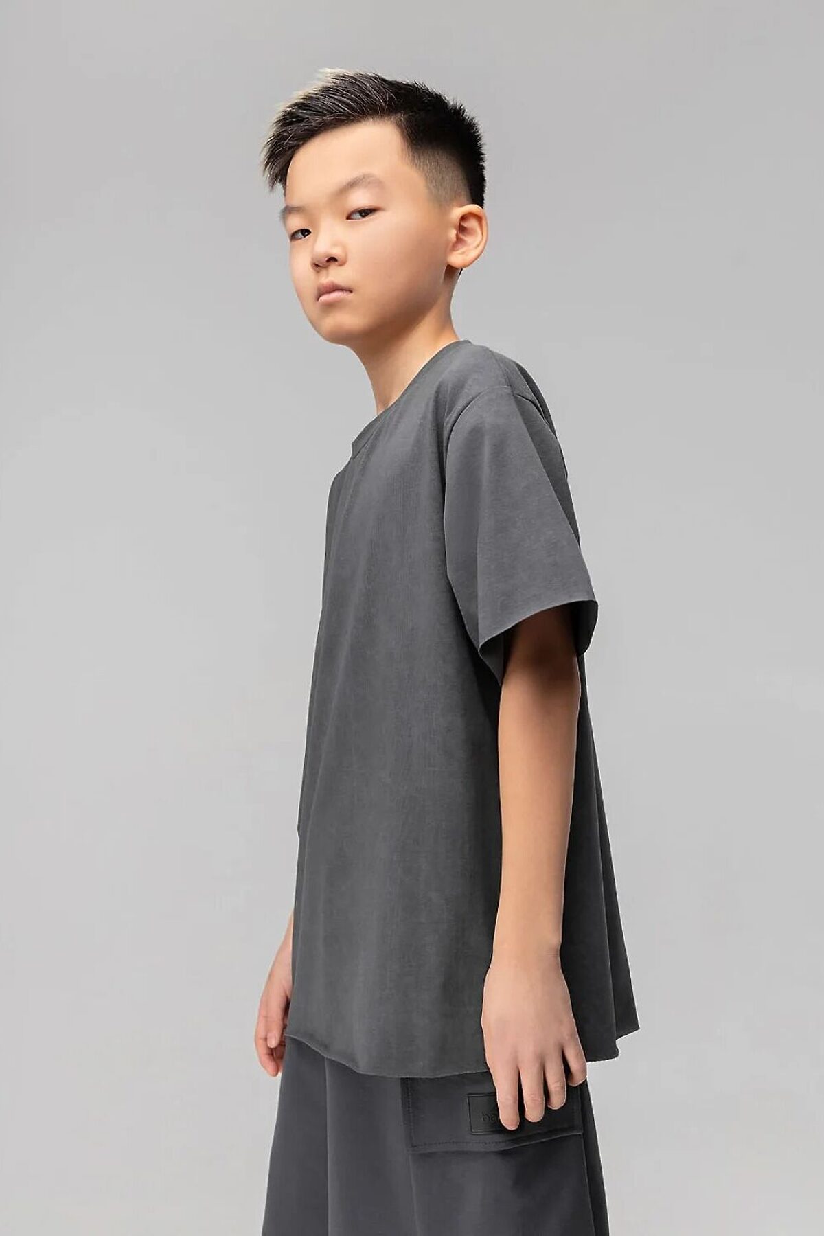 Свободная футболка с трендовым эффектом "варенки". Футболка с необработанными краями и коротким рукавом. Брендированная нашивка на спинке.