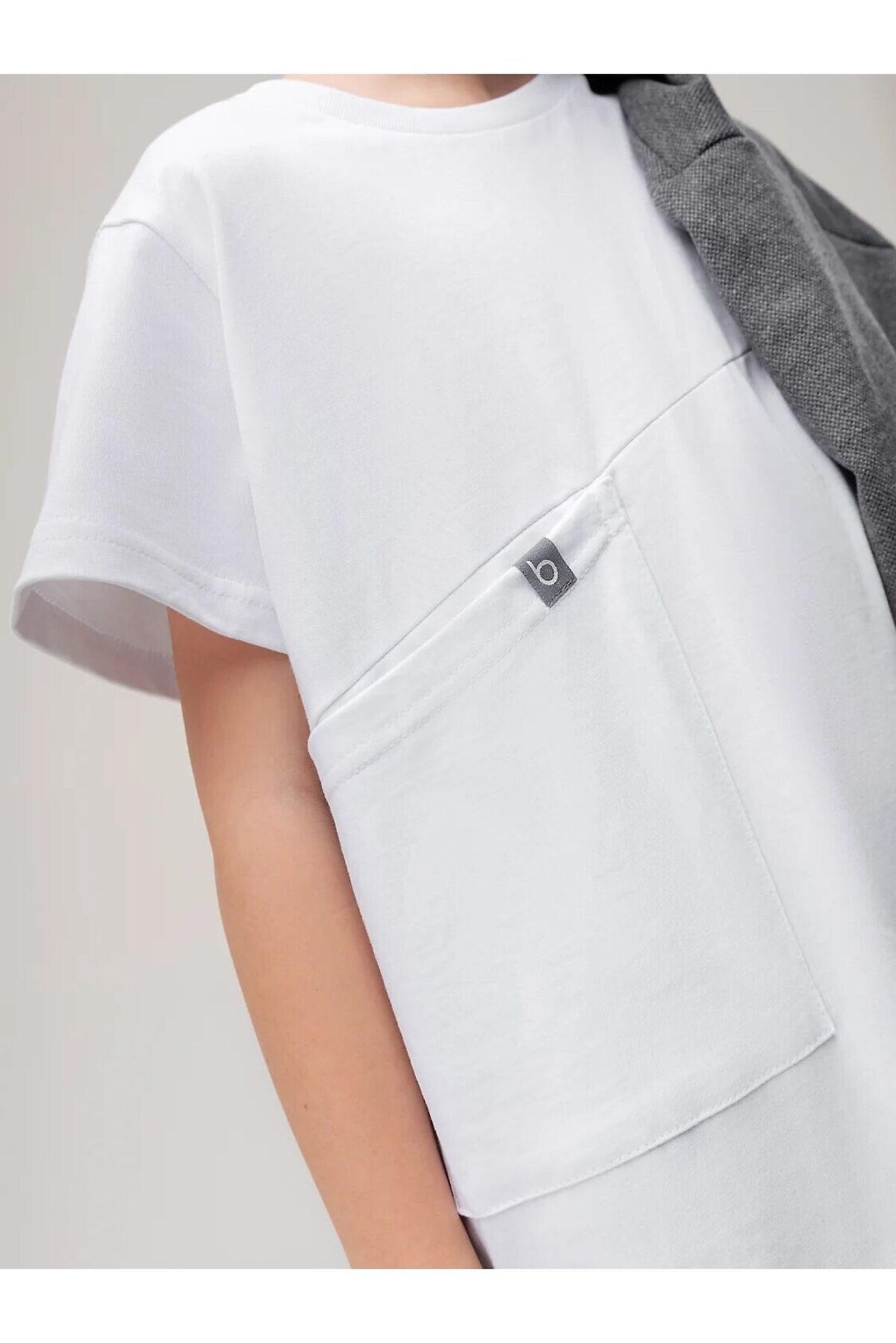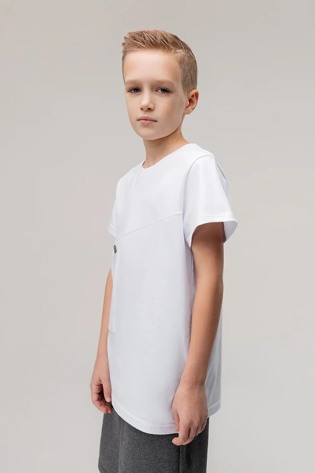 Футболка свободная с коротким рукавом. Горловина футболки округлой формы. Низ изделия прямой. На полочке накладной карман.