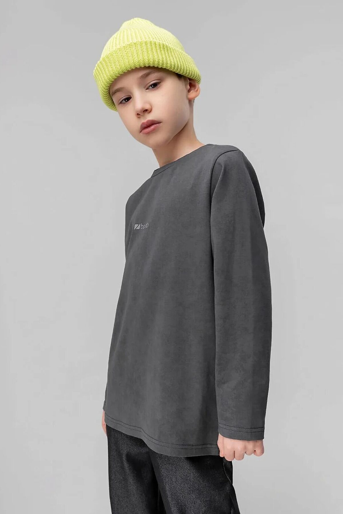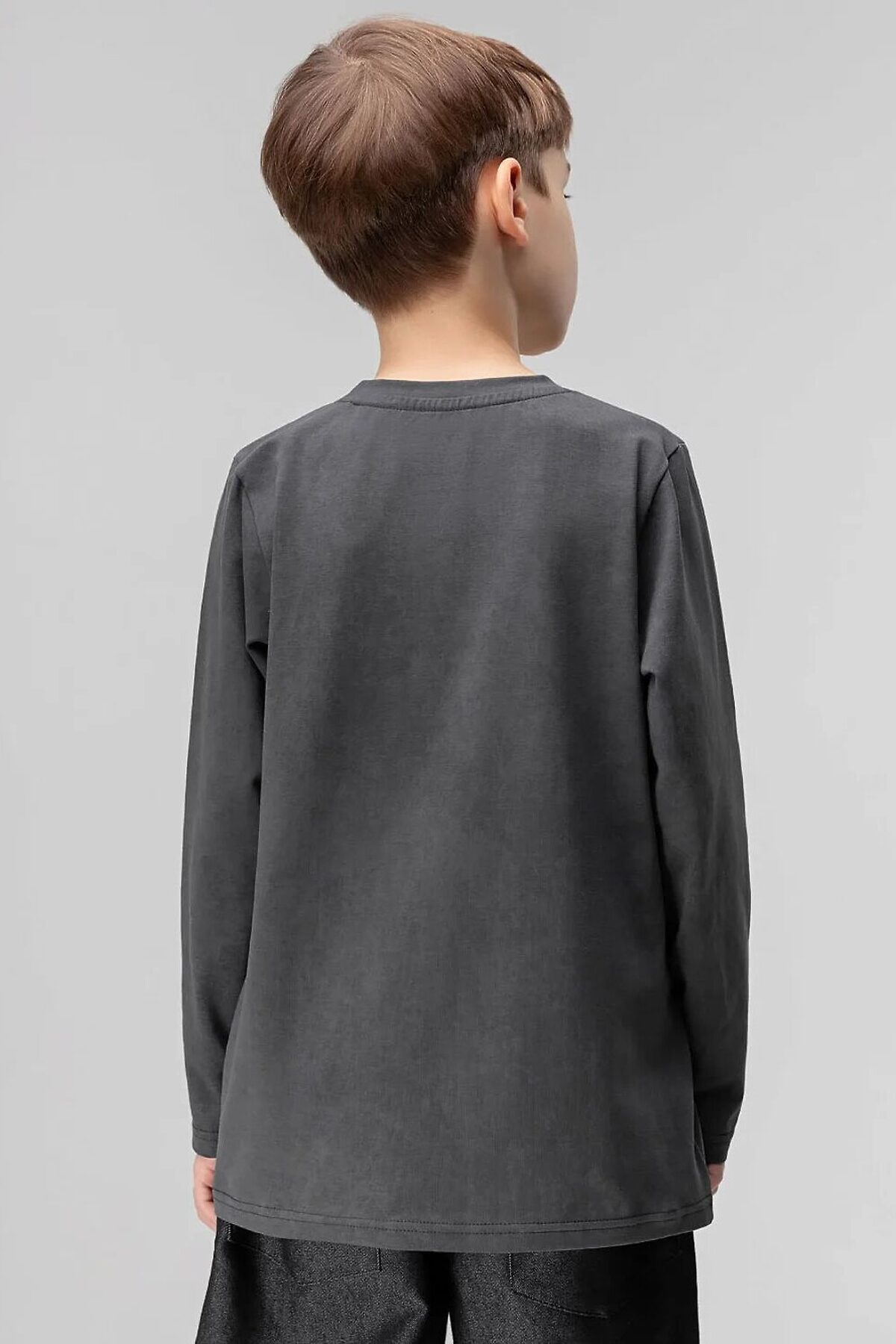 Лонгслив свободного силуэта с длинным рукавом. Горловина лонгслива округлой формы. Низ изделия прямой.