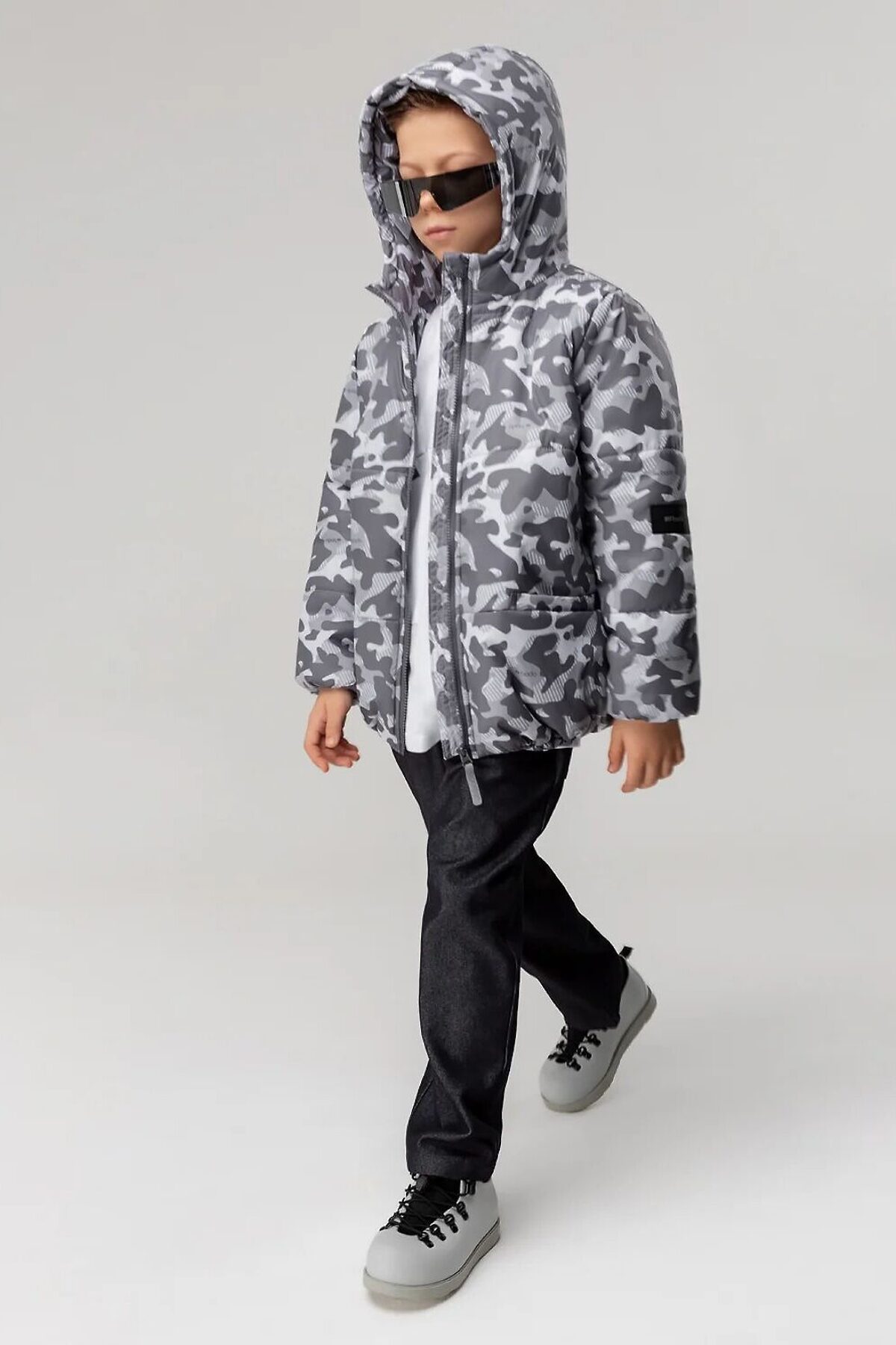Куртка с подкладкой, прямого силуэта, с втачными рукавами, с воротником стойка. Куртка с центральной застёжкой на тесьму - «молния». На полочках располагаются карманы в швах с настрочной листочкой. Материал верха: курточная ткань Милан 100% полиэстер, утеплитель Hetta Filt 150 г/кв.м, подкладочный материал кулирная гладь хлопок 100% Температурный режим от -5 до +10, в зависимости от индивидуального теплообмена ребенка.