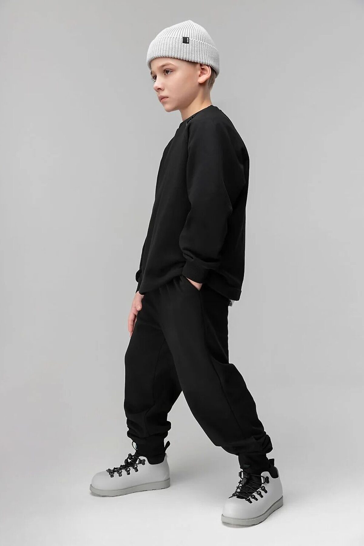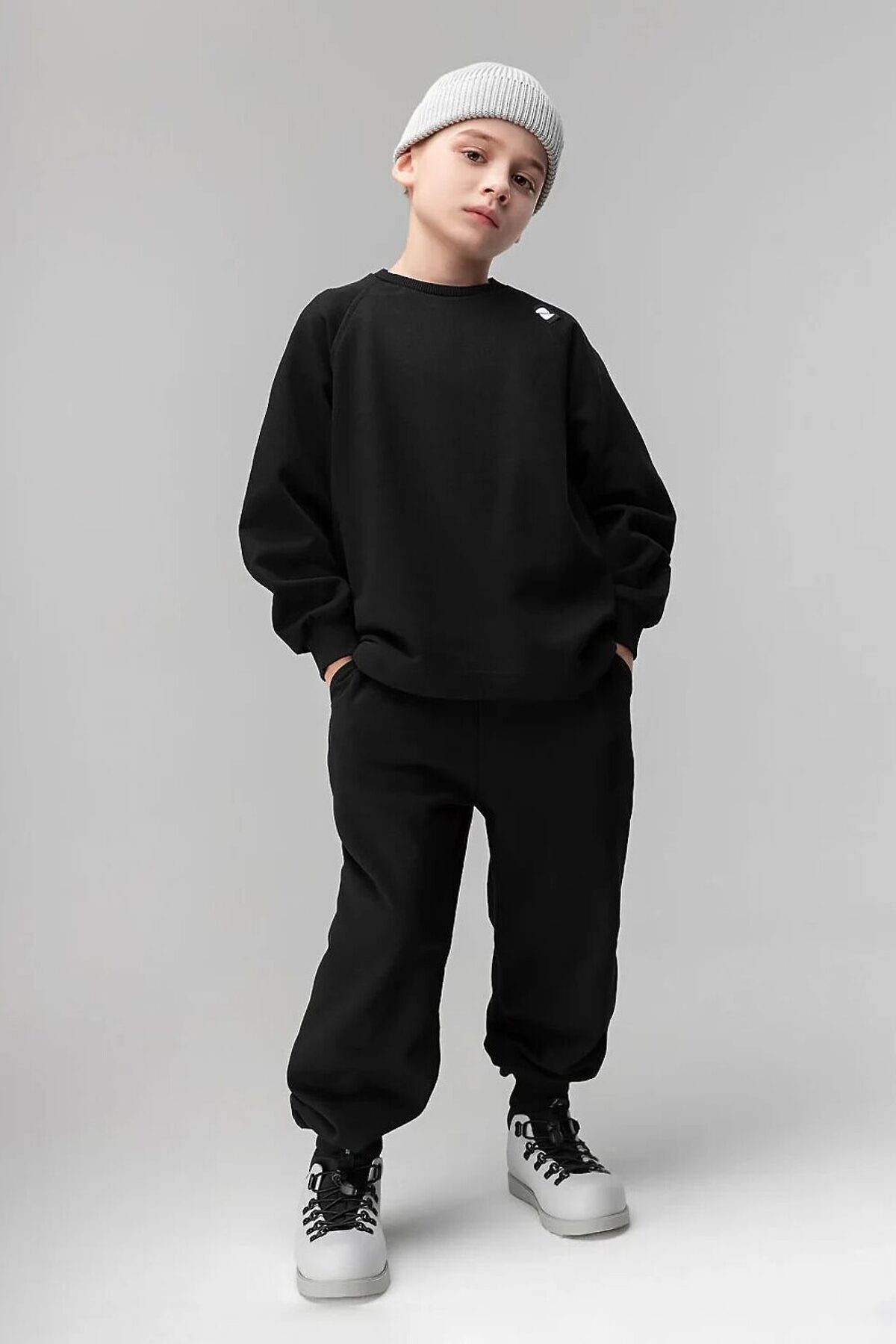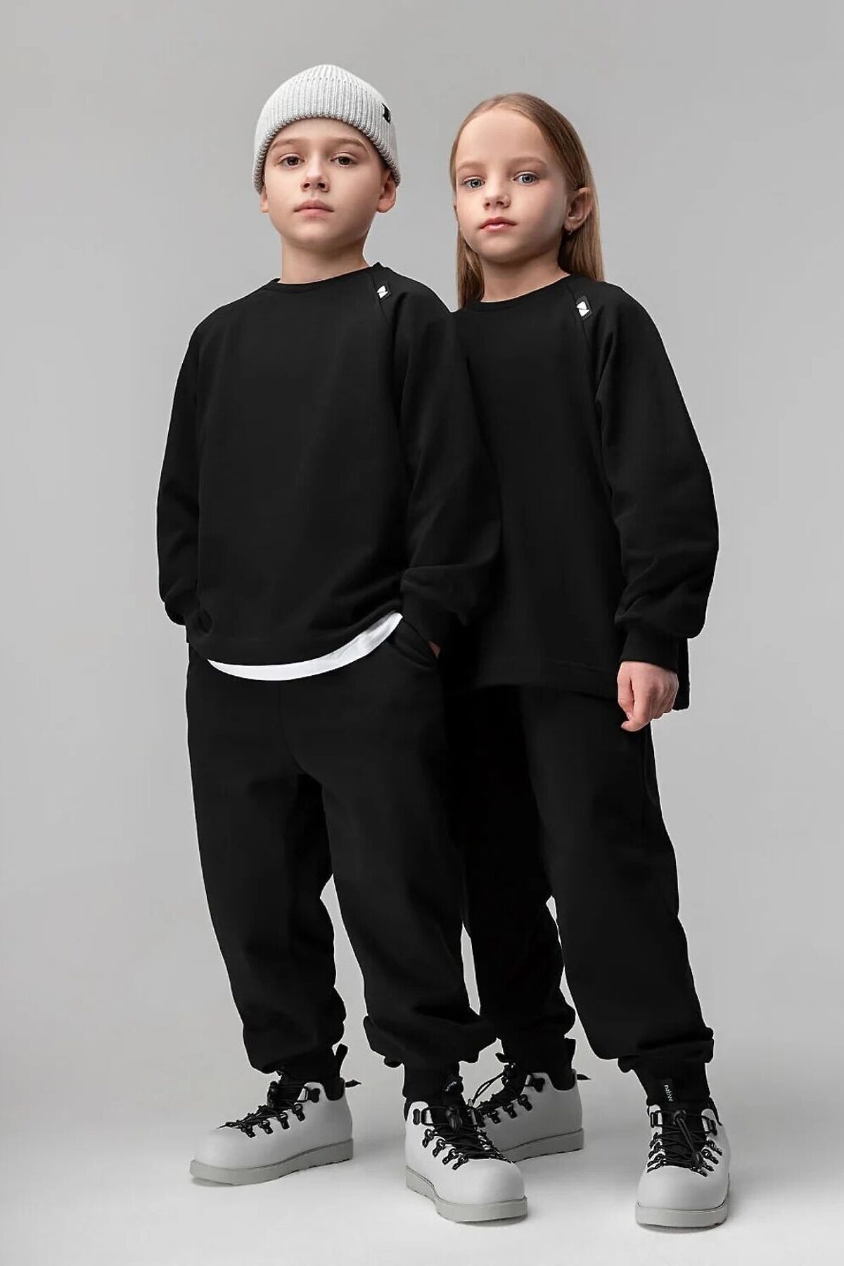 Толстовка прямого силуэта, свободная с рукавом реглан и притачной манжетой. Толстовка на утяжке по низу изделия. Брюки прямые свободные на притачном поясе с внутренней резинкой, на притачной манжете . Брюки с боковыми карманами, накладным карманов на задней половинке брюк.