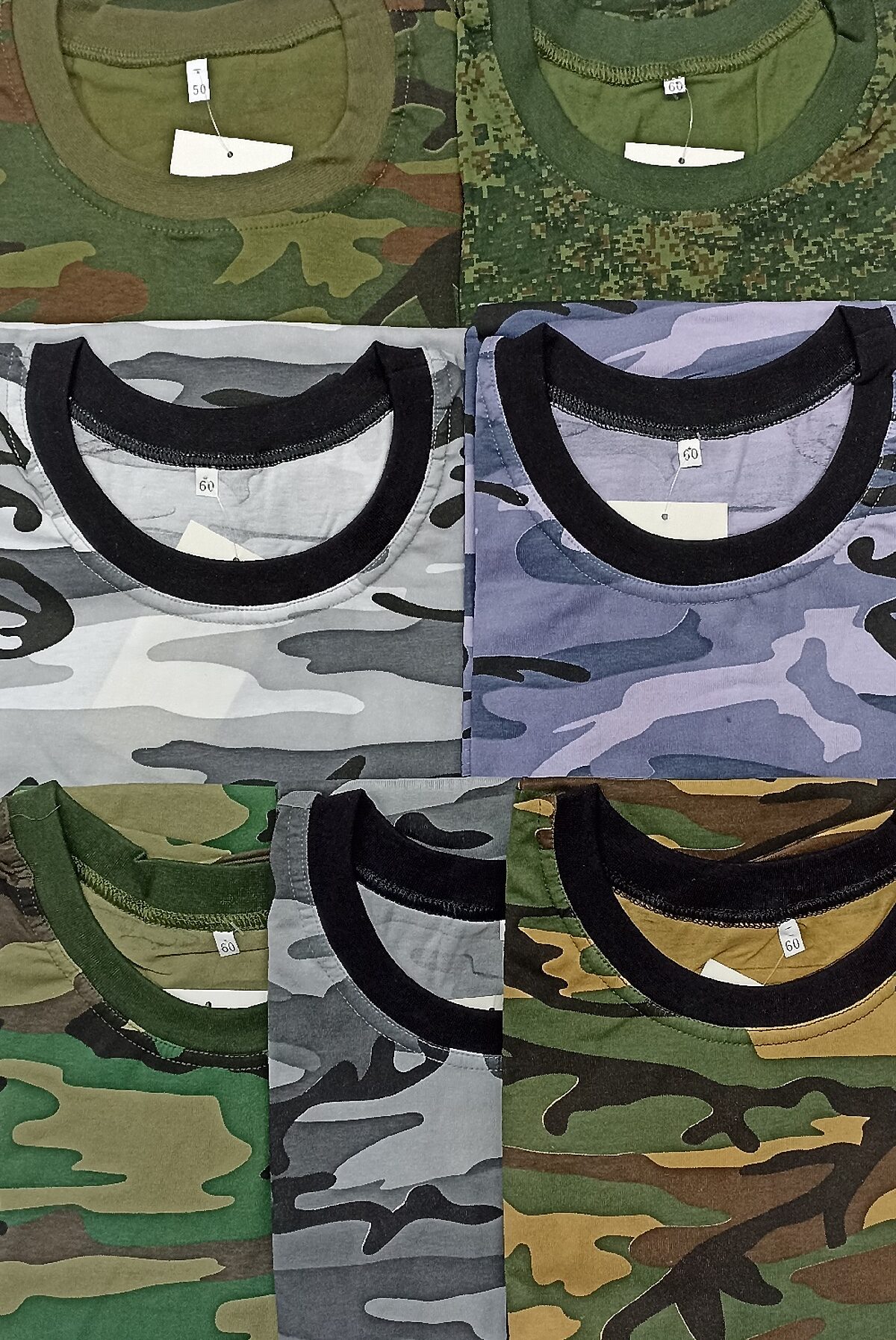 Футболка мужская с коротким рукавом, разноцветная (маскировочный рисунок), 100% хлопок. В двух цетах: зелёном и сером (разных оттенков и рисунков согласно фото). ВНИМАНИЕ! Цвет при заказе не выбирается, поставка осуществляется рандомно (случайный выбор при отгрузке со склада).