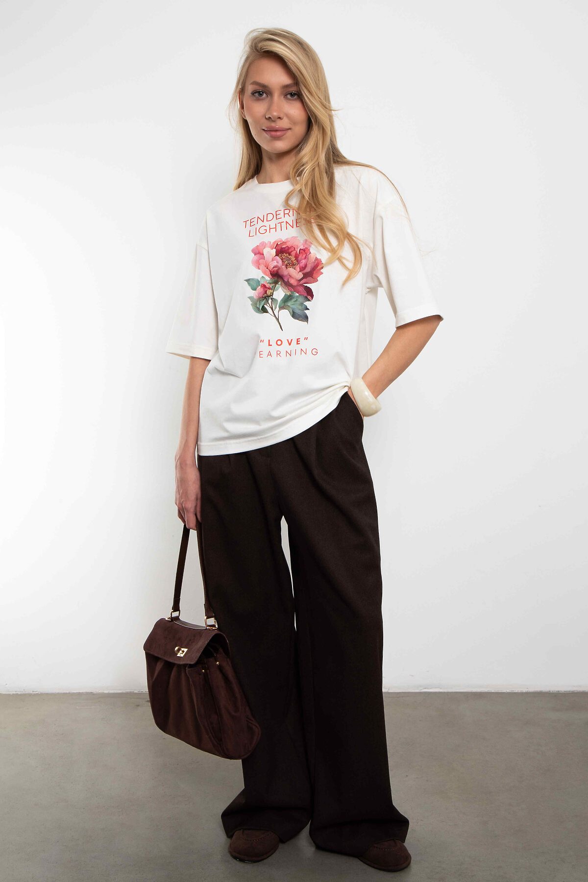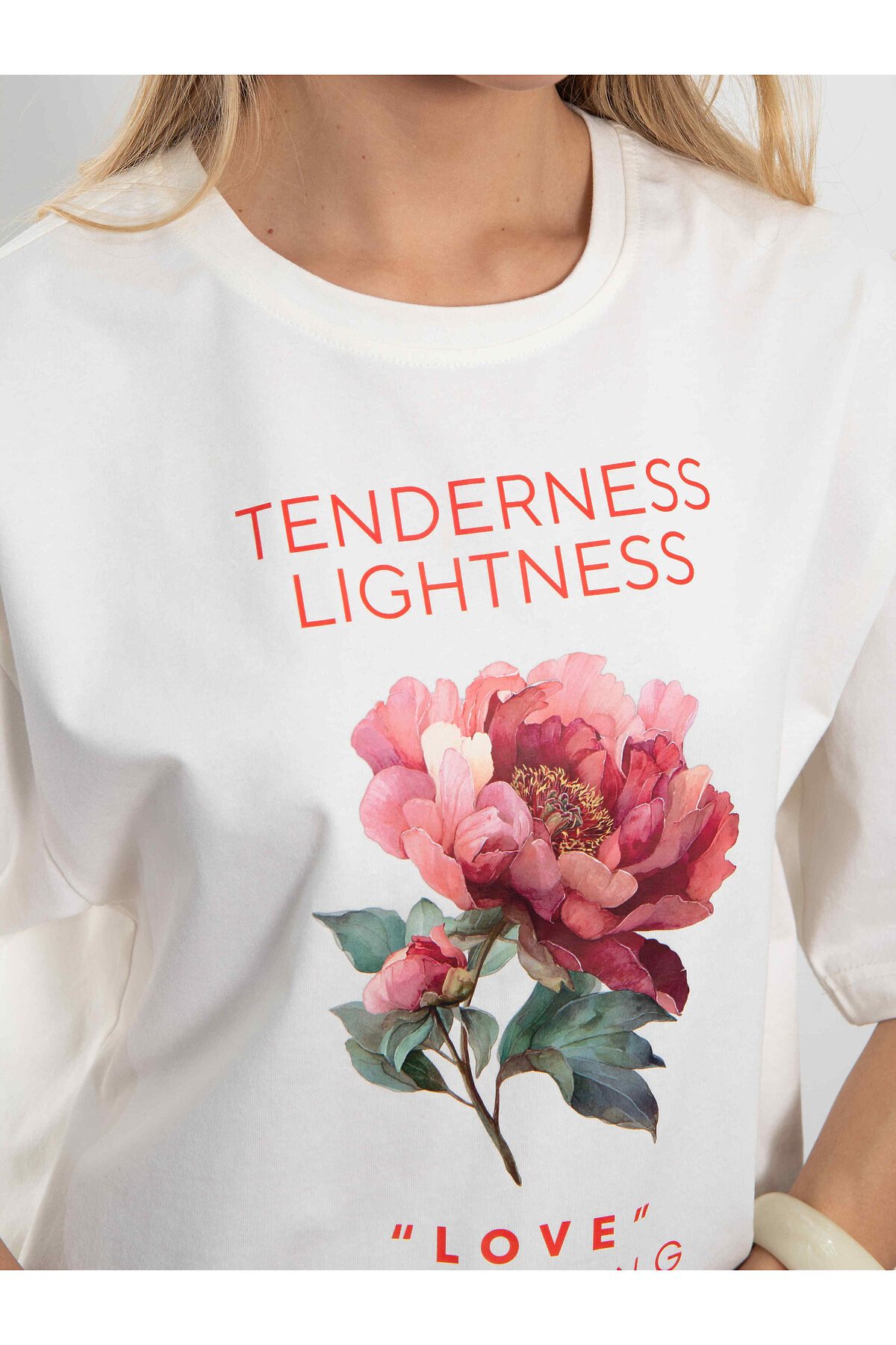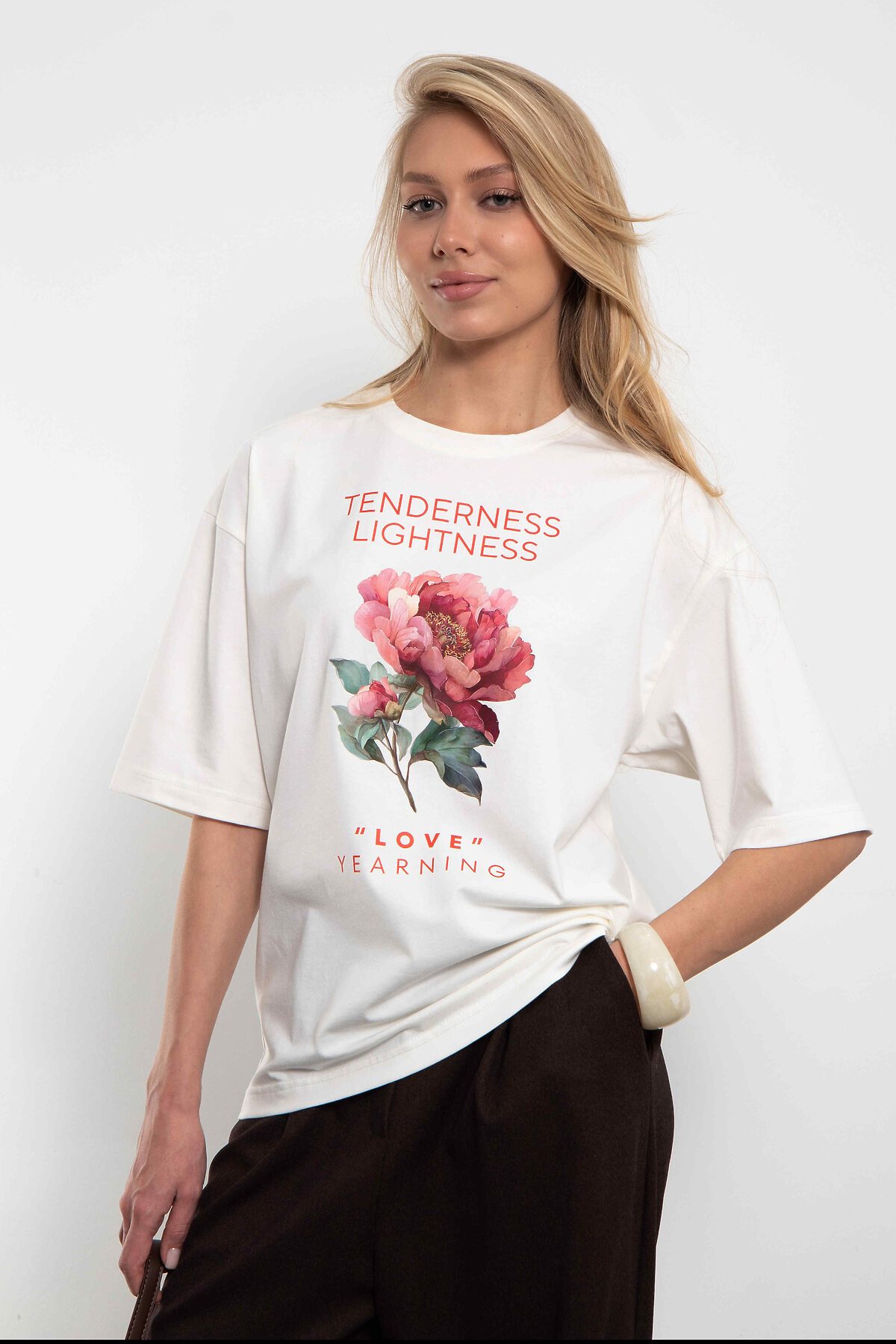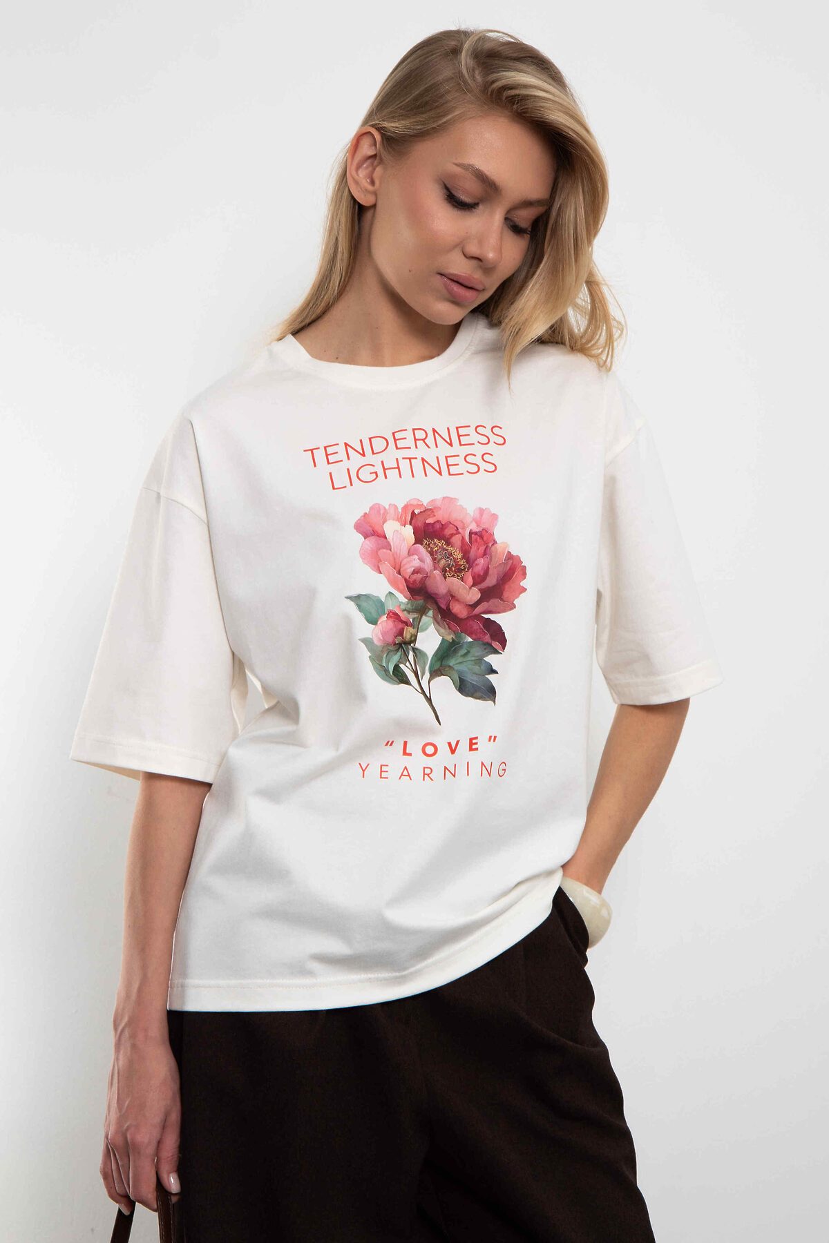 Футболка женская с оверсайз Пион KOSMOS, молочный