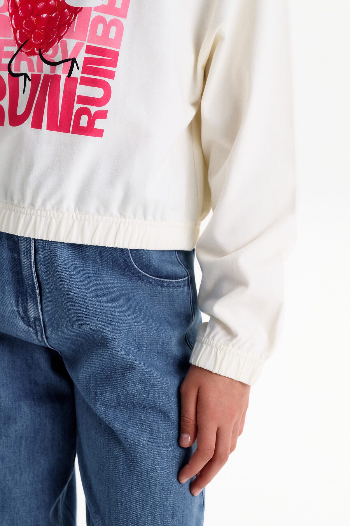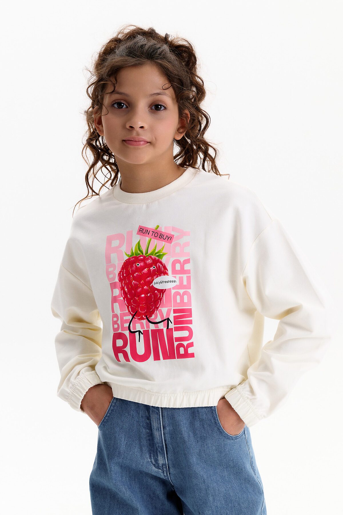 Укороченная объемная толстовка из мягкого футера для девочки. Плотность 235 гр/кв.м. 100% хлопок — ткань дышащая, приятная на ощупь и очень комфортная. Низ изделия и рукавов собраны на широкую внутреннюю резинку — модель красиво и аккуратно сидит по фигуре, рукава не сползают. Перевод: двигается реально быстро!! БЕГИ БЕГИ ЯГОДА: сочная и свежая.
