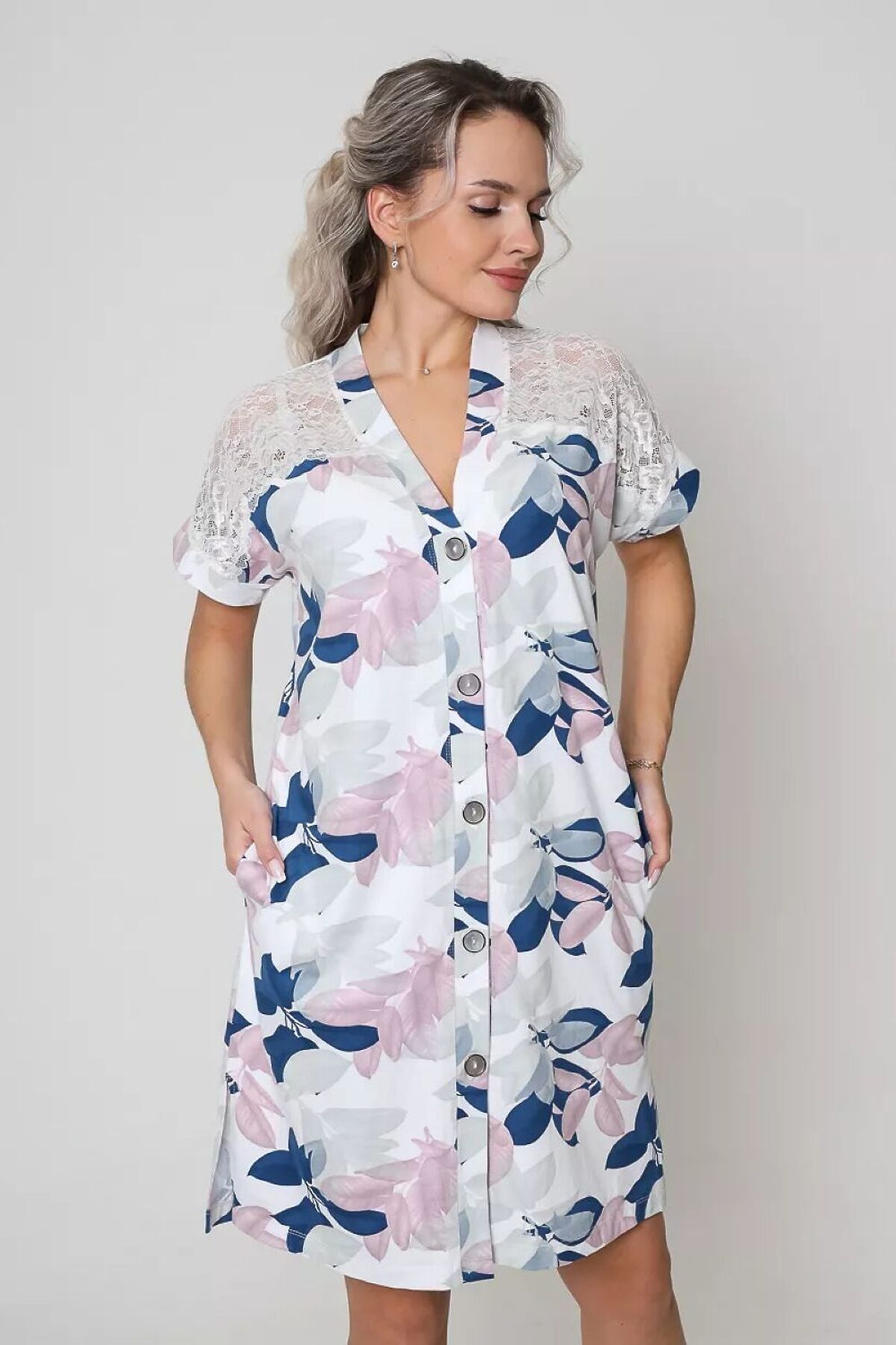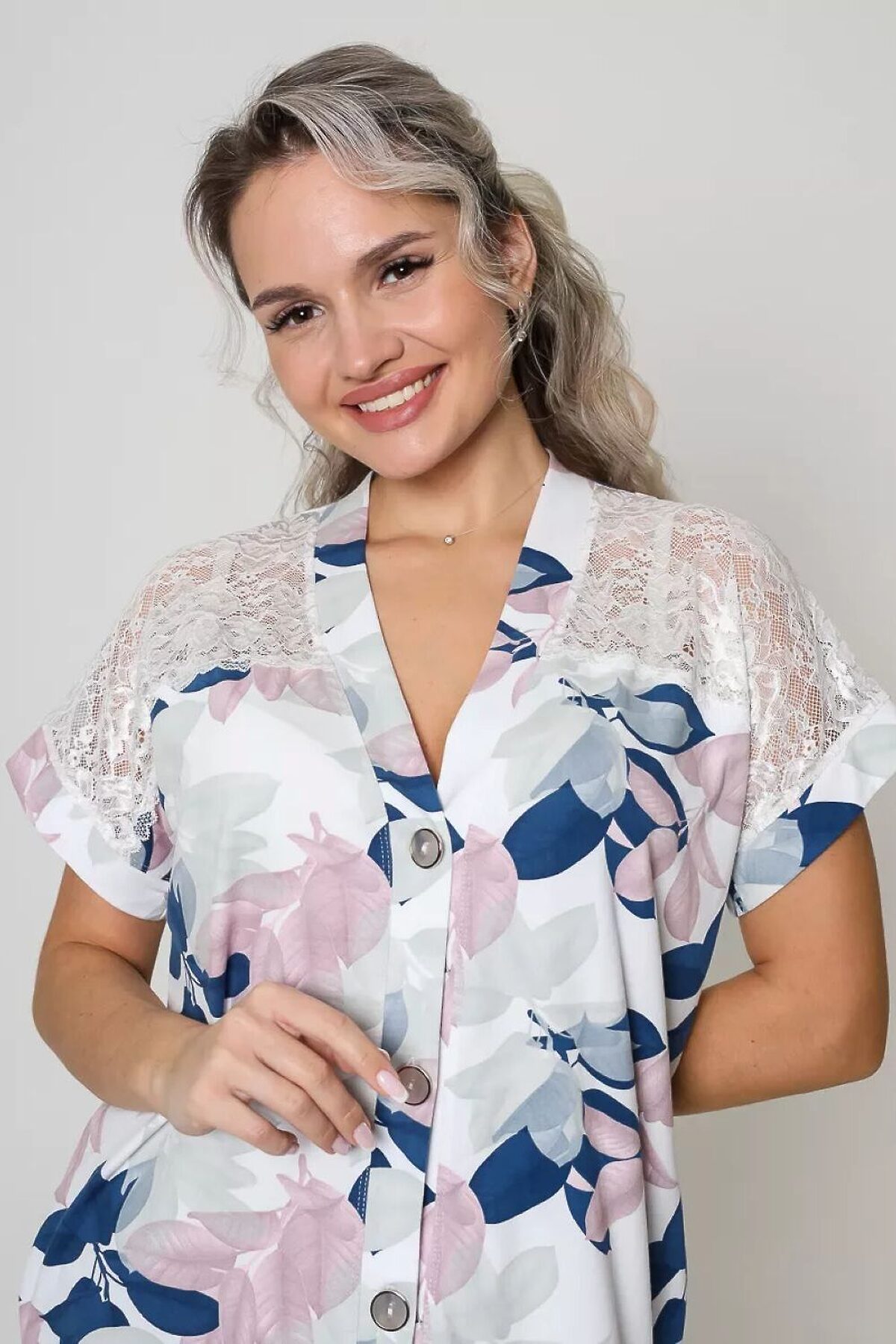 Представляем Вам стильный и удобный короткий женский халатик, идеально подходящий для домашнего использования. Модель доступна в различных размерах, включая большие, чтобы каждая женщина могла найти свой идеальный вариант. Изготовленный из высококачественного нежного хлопка, длинною чуть выше колена. Халат прямого силуэта с карманами в боковых швах и застежкой на пуговицы. Спущенное плечо изделия декорирована эффектным эластичным кружевом. Нарядный, удобный в носке трикотажный халатик также идеально подойдет для беременных женщин, обеспечивая комфорт и свободу движений. Халат имеет короткий рукав и удобную длину, что делает его идеальным как для использования дома, так и для посещения роддома. Выберите этот хлопковый халатик и наслаждайтесь комфортом и красотой каждый день. Позвольте себе погрузиться в мир роскоши с этим трикотажным халатом! Стильная, качественная и комфортная домашняя женская одежда порадует каждого, как практичный подарок.