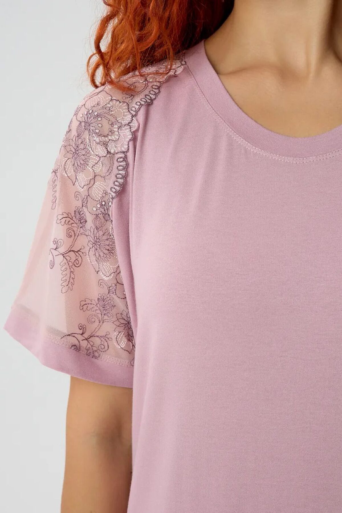 Ночная сорочка из вискозы станет незаменимой частью вашего гардероба для комфортного и стильного отдыха. Длина изделия чуть ниже колена обеспечивает оптимальное удобство и свободу движений, а округлый вырез горловины придает образу мягкость и женственность. Особое внимание привлекают рукава реглан, выполненные из эффектного кружева на сетке, добавляющие сорочке нотку романтичности и изящества. Свободный крой позволяет носить сорочку как будущим мамам, так и всем, кто ценит комфорт в сочетании с элегантностью. Большой размерный ряд позволит каждой женщине найти идеальный вариант, а трикотажная текстура ткани гарантирует идеальную посадку, благодаря своей способности хорошо тянуться и адаптироваться к особенностям фигуры.