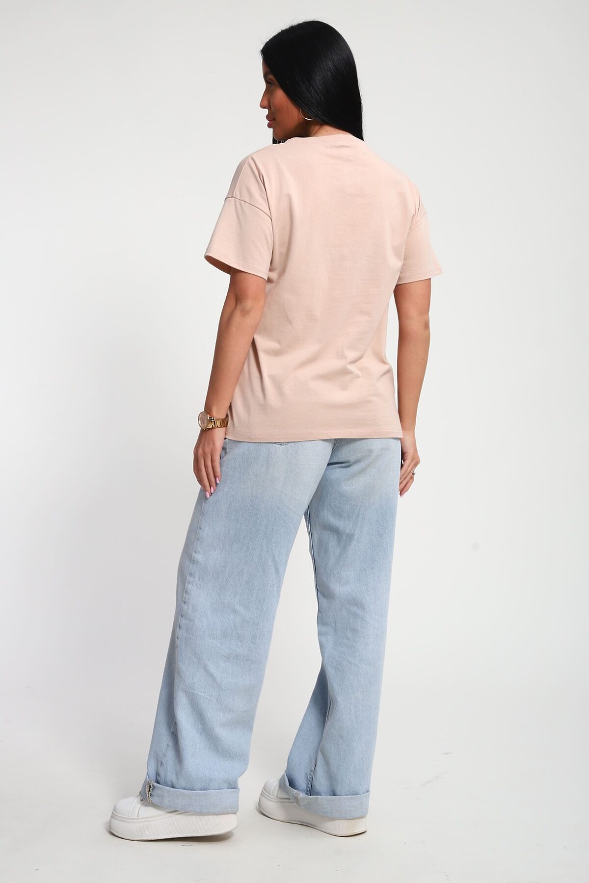 Футболка женская из гладкокрашенного трикотажа, хлопок 100%. Прямого силуэта, свободного облегания. горловина круглой формы. Рукав короткий. Низ изделия прямой. На полочке объемный принт, шелкография.