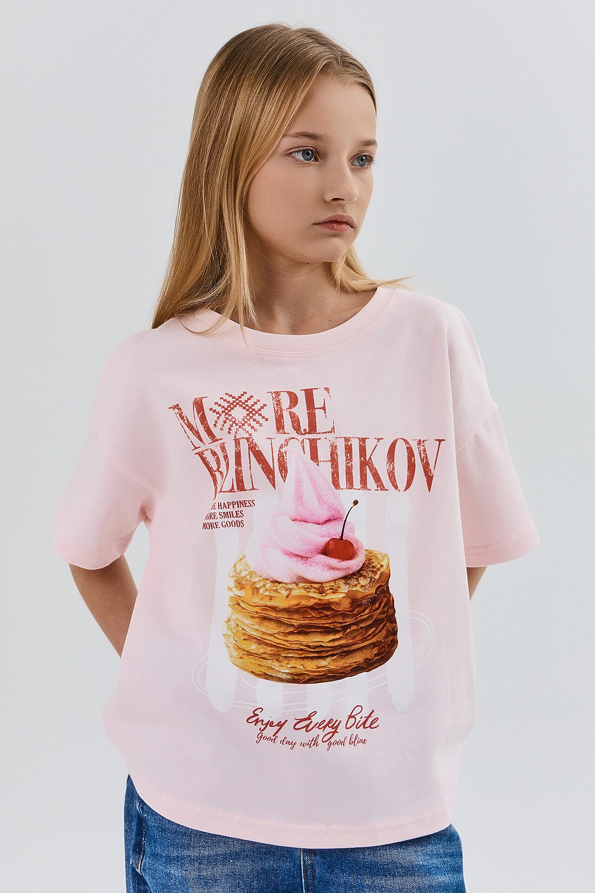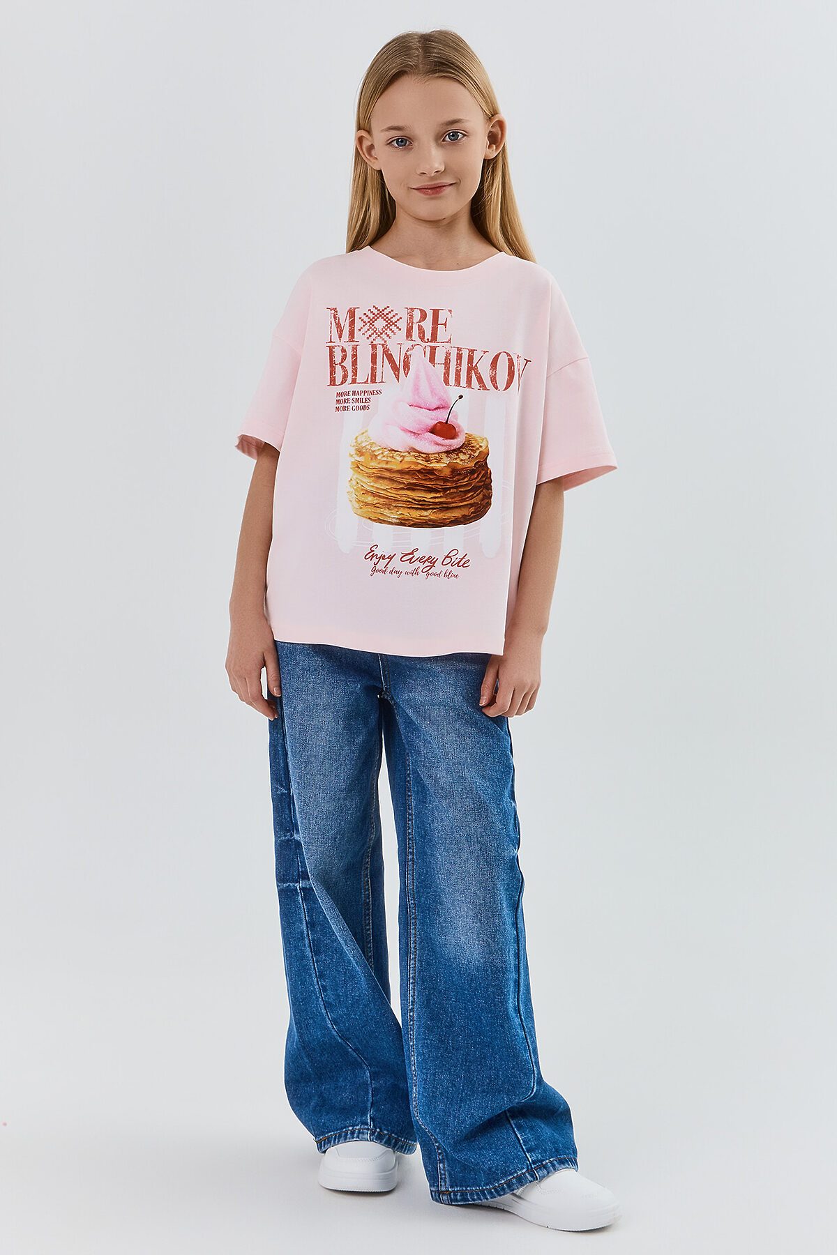 Футболка для девочек с принтом – идеальный выбор для повседневного образа. Модель, выполненная из нежной хлопковой кулирки, обеспечивает комфорт и мягкость при носке. Свободный силуэт и короткие рукава не сковывают движений, а круглая горловина добавляет классический и стильный вид. Дизайн футболки наверняка понравится каждой девочке, придавая её образу яркость и индивидуальность.