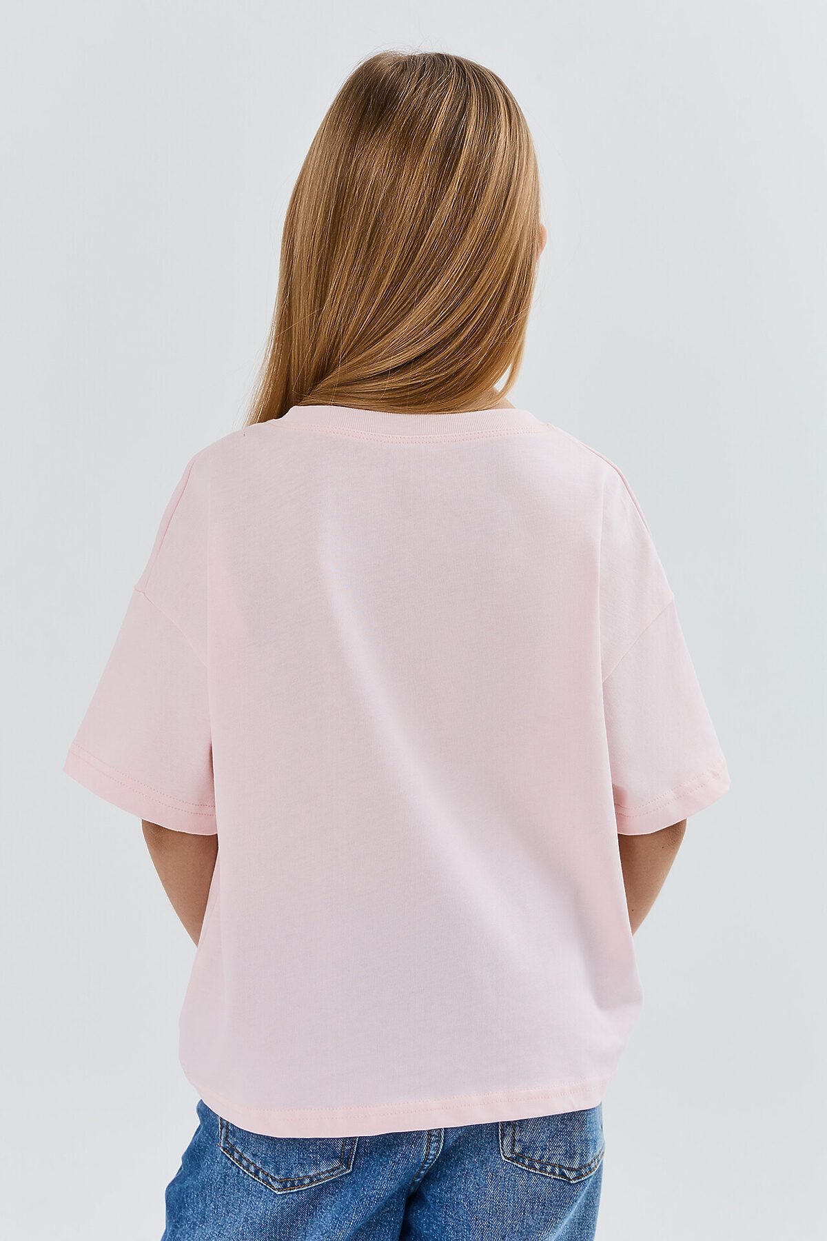 Футболка из трикотажного полотна кулирного переплетения. Силуэт свободный, длина до середины бедра. Рукава короткие, горловина круглая. Дизайн футболки наверняка понравится вашей моднице!