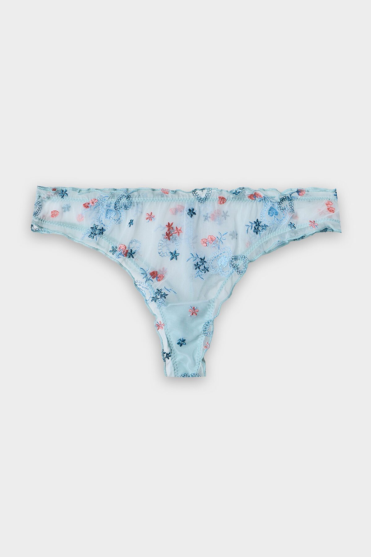 Невероятно нежные трусики бразилиана станут изысканным дополнением женского гардероба. Модель со средней линией талии выполнена из невесомой сеточки с вышивкой, что придаёт ей легкость и изящность. Подкладка ластовицы из хлопка обеспечивает комфорт и гигиеничность, а рюша из сборки по верхнему срезу трусов и по ножкам добавляет романтичности и женственности. Эти трусики идеально сочетаются с подходящим верхом из этой же коллекции, создавая женственный комплект для особенных случаев. Наслаждайтесь нежностью и элегантностью каждый день!