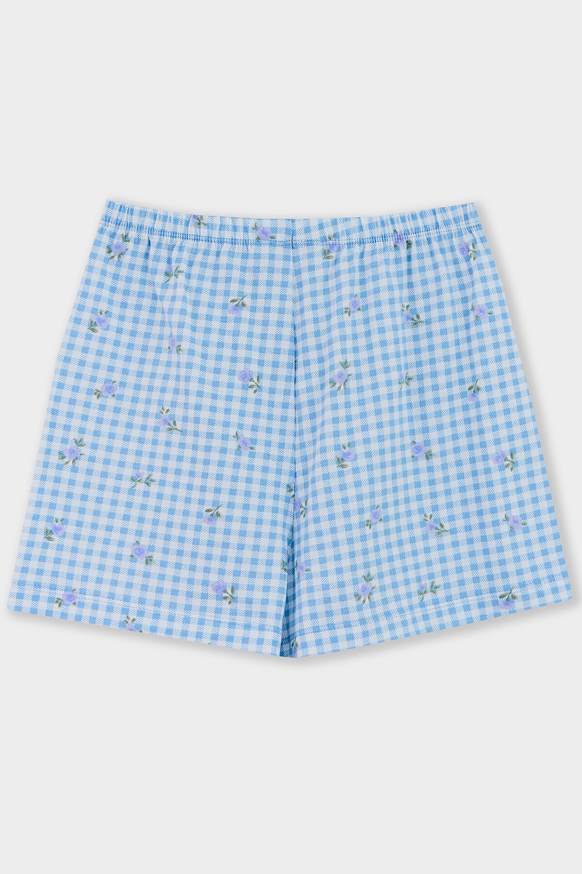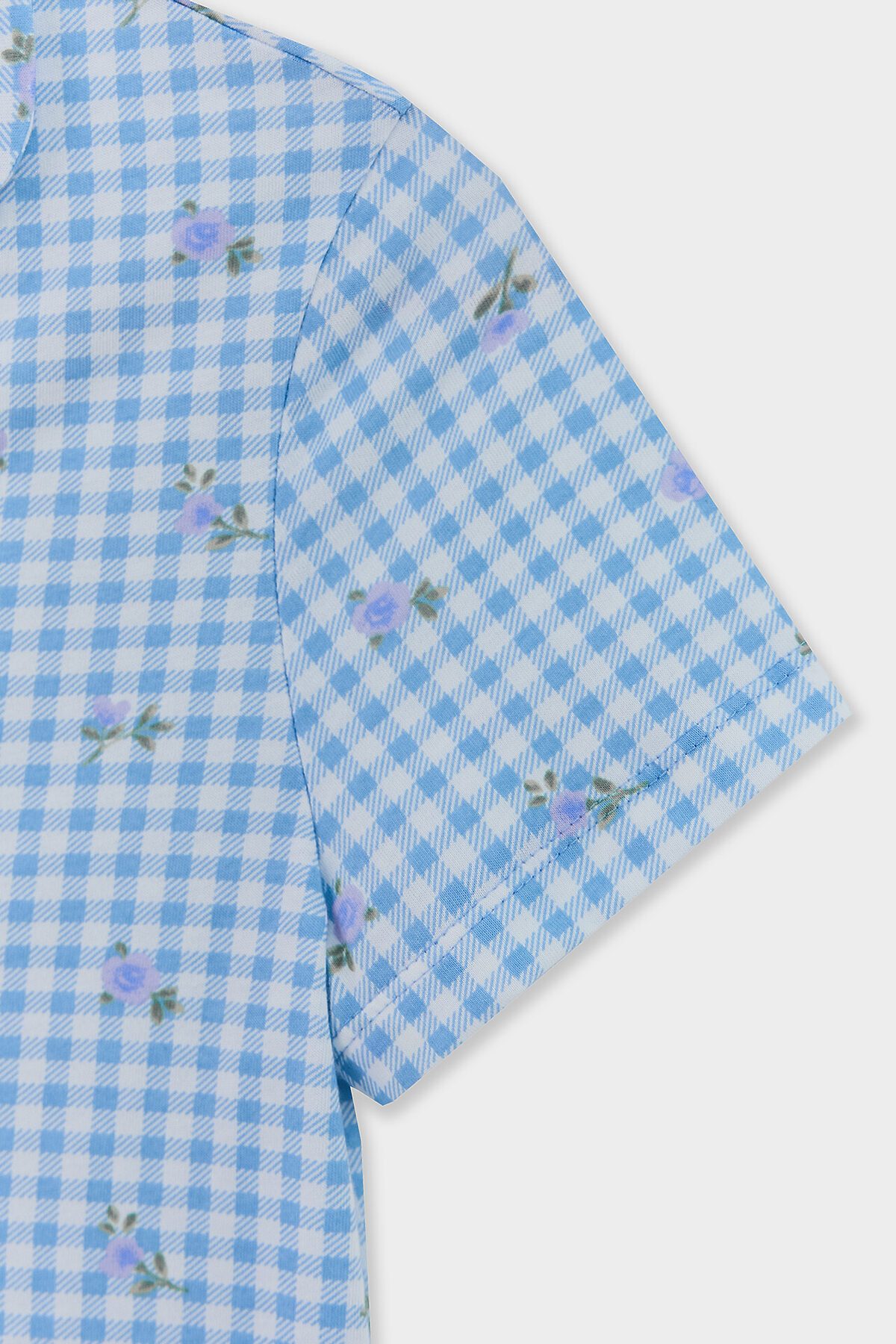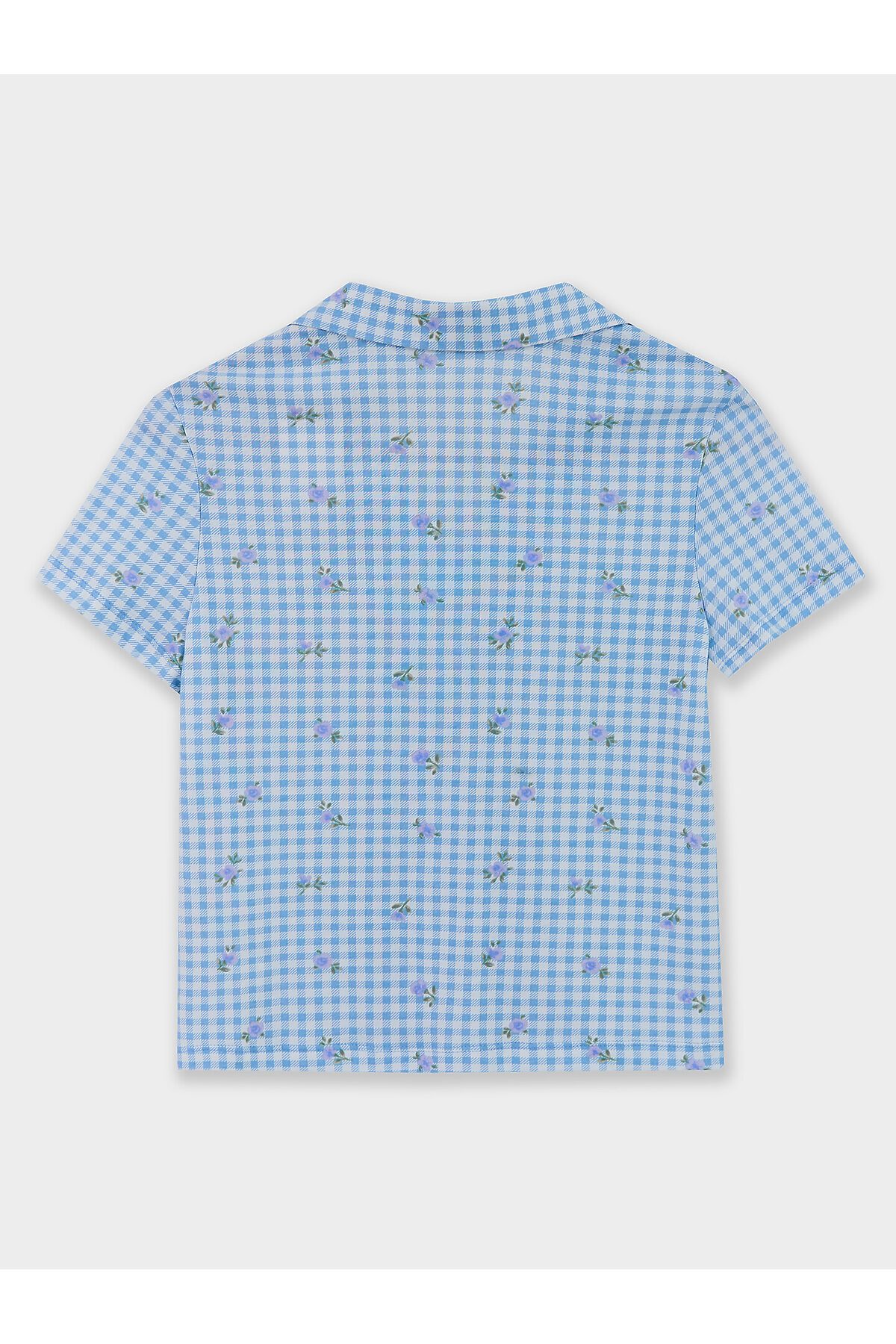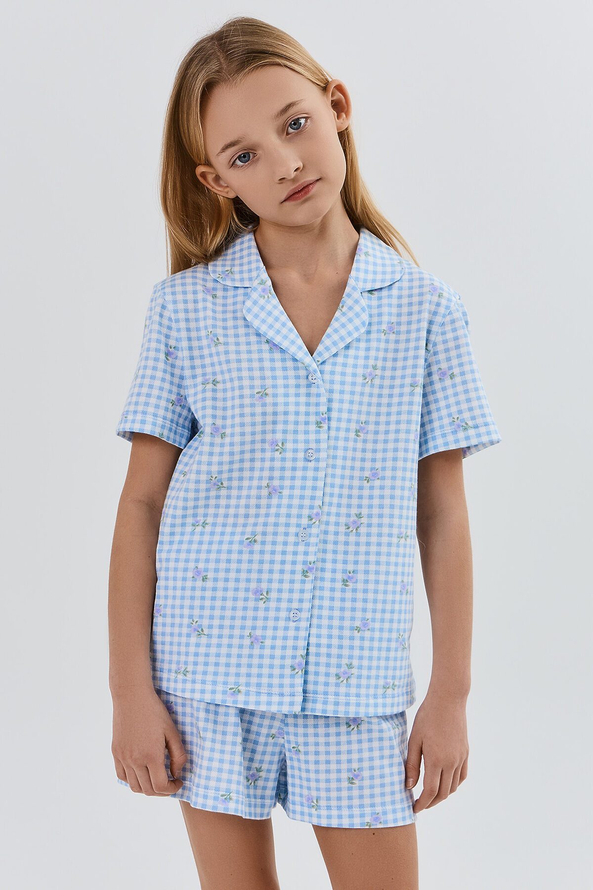 Комплект для девочек (рубашка, шорты) MARK FORMELLE, голубая клетка с цветами