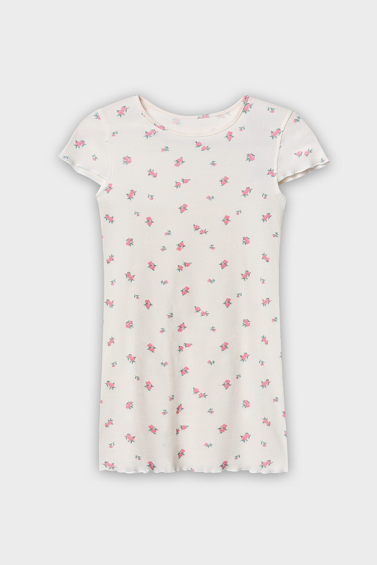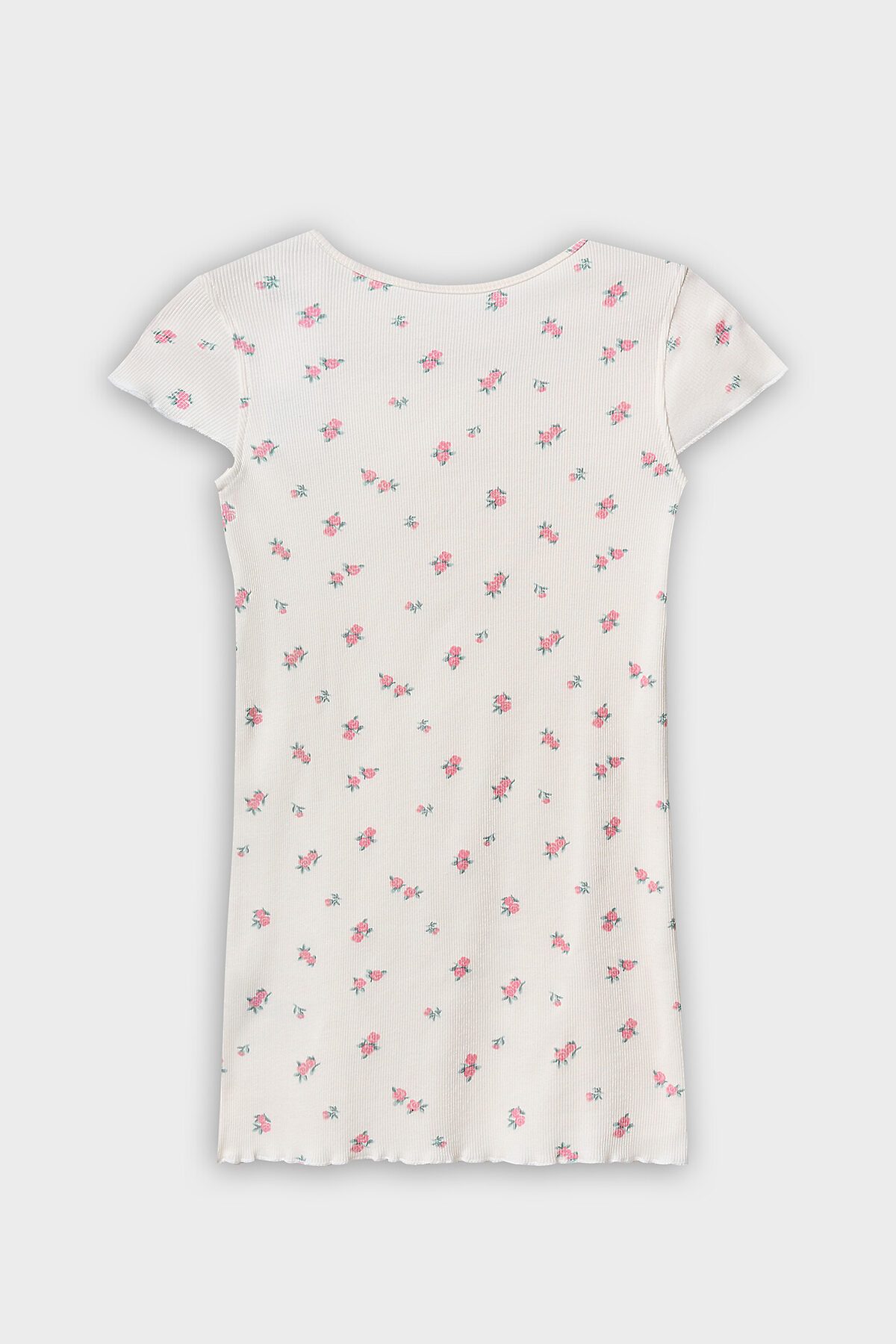 Сорочка свободного силуэта. Перед и спинка цельнокроенные. Длина выше колена. Рукав втачной, короткий обработан микрооверлоком.. Горловина круглой формы, обработана обтачкой. Низ обработан микрооверлоком.