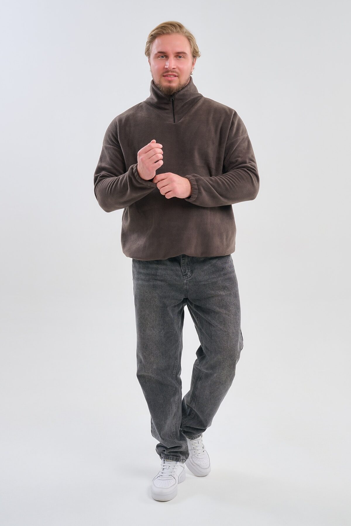 Мужская толстовка выполнена из приятного на ощупь флиса из 100% полиэстера, обладающего отличными теплоизоляционными свойствами и обеспечивающего максимальный комфорт при любых погодных условиях. Особенность модели заключается в том, что по низу изделия и на манжетах вшиты резинки, обеспечивающие плотное прилегание, сохранение формы изделия и защиту от проникновения холода. Горловина представлена формой стойки, дополненной надежным замком-молнией, позволяя владельцу самостоятельно выбирать уровень открытости воротника и создавать стильный образ в зависимости от ситуации. Изысканный дизайн сочетается с удобством эксплуатации, превращая данную модель в идеальный выбор для повседневного использования и занятий спортом в холодное и прохладное время года.