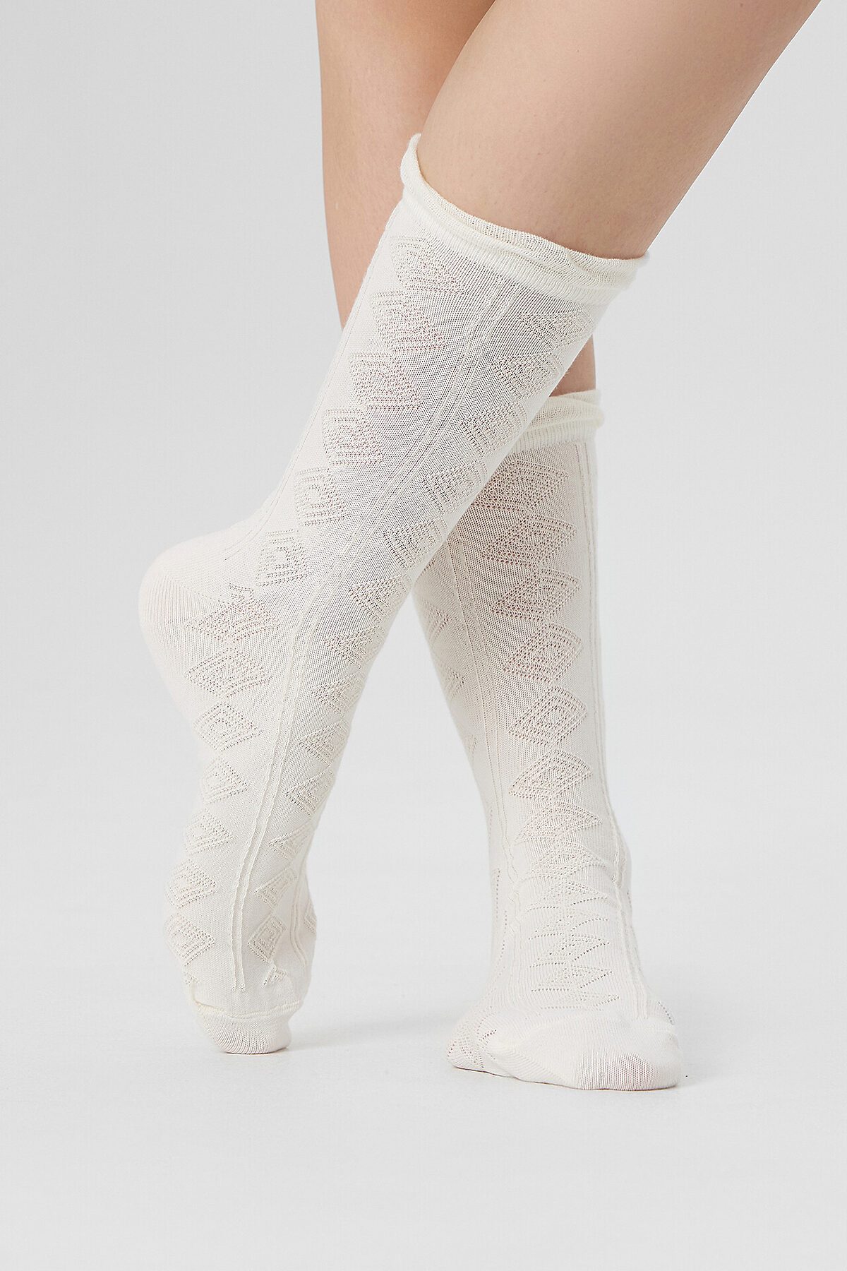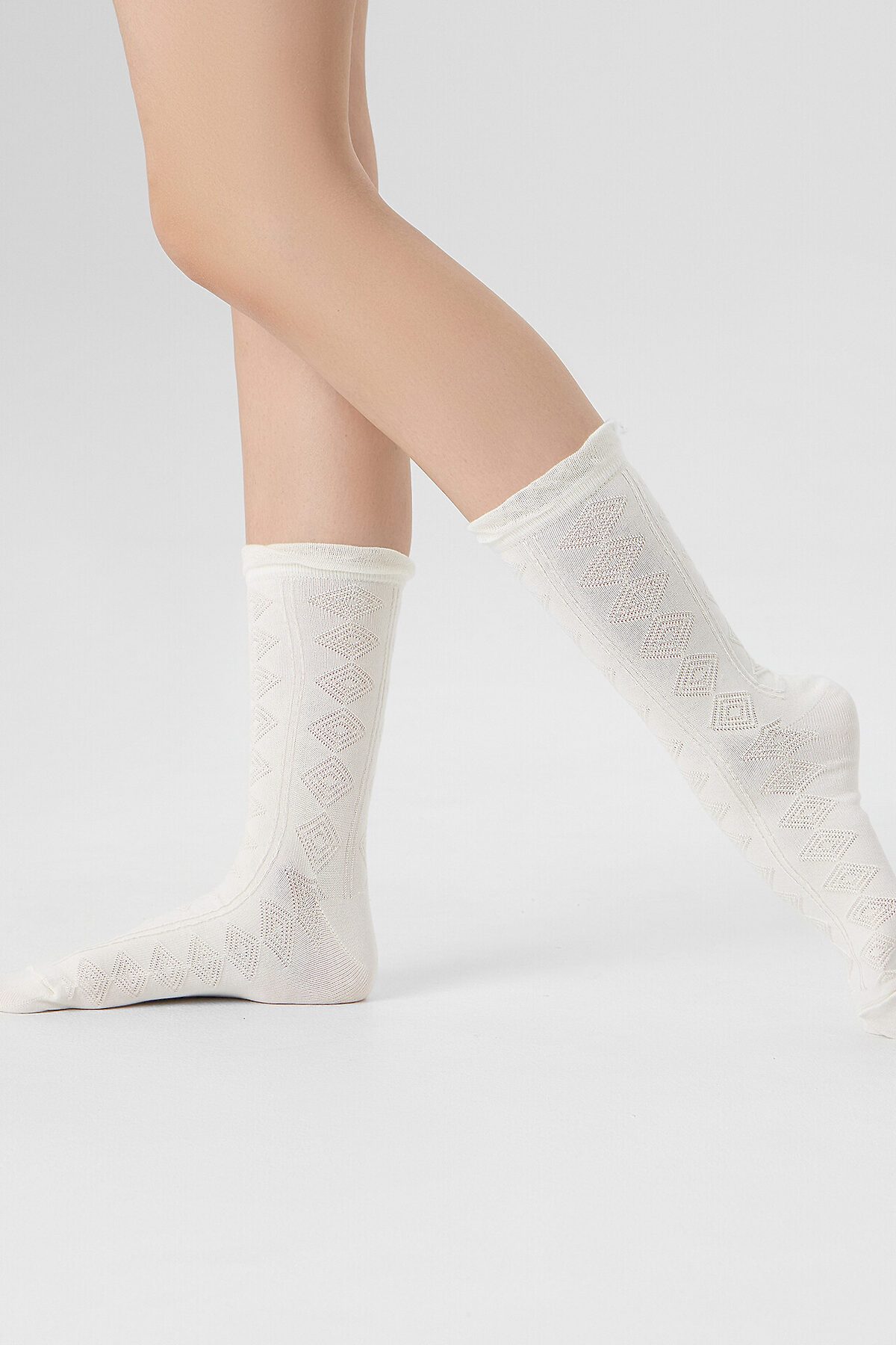 рис.3113 Женские, классические, однотонные носки с объёмным геометрическим рисунком.