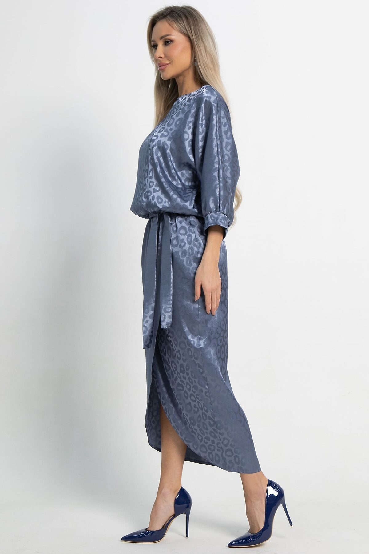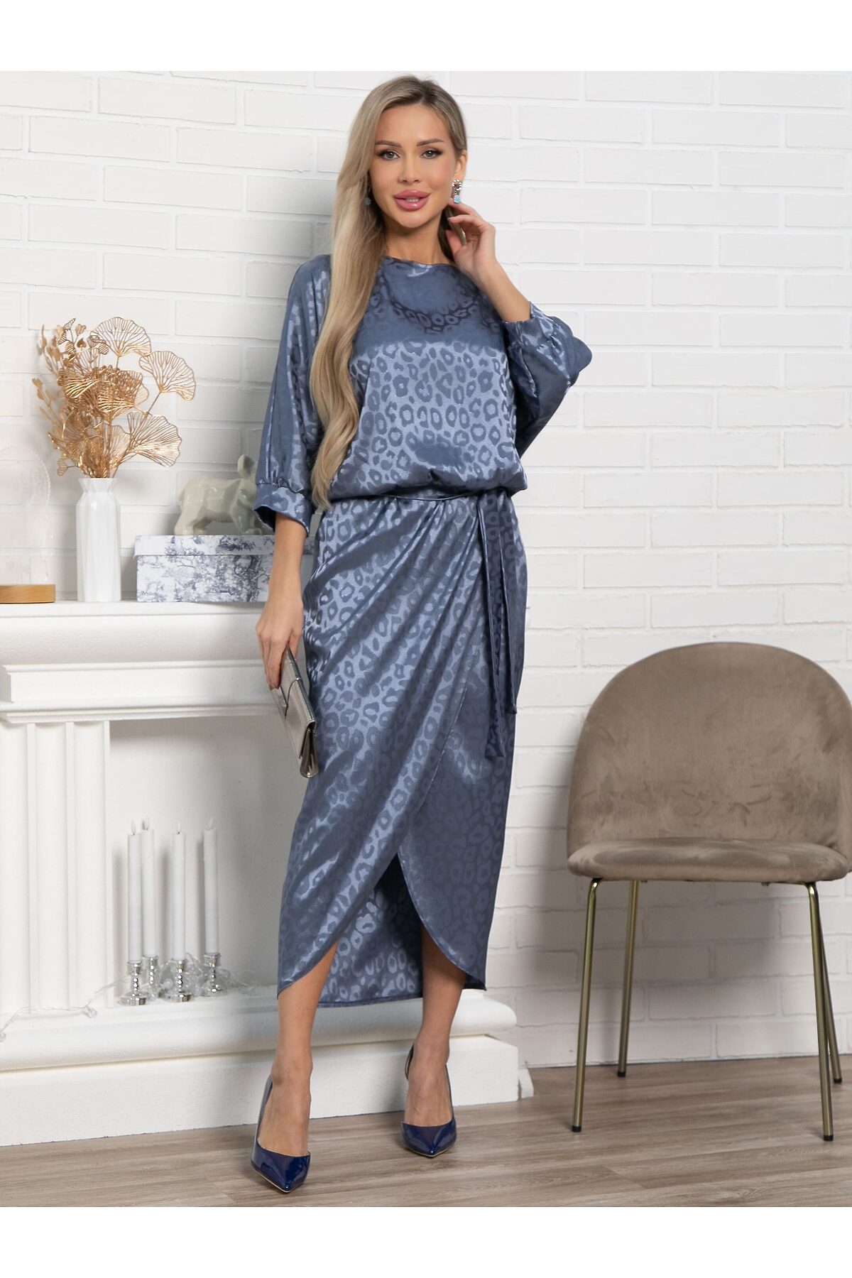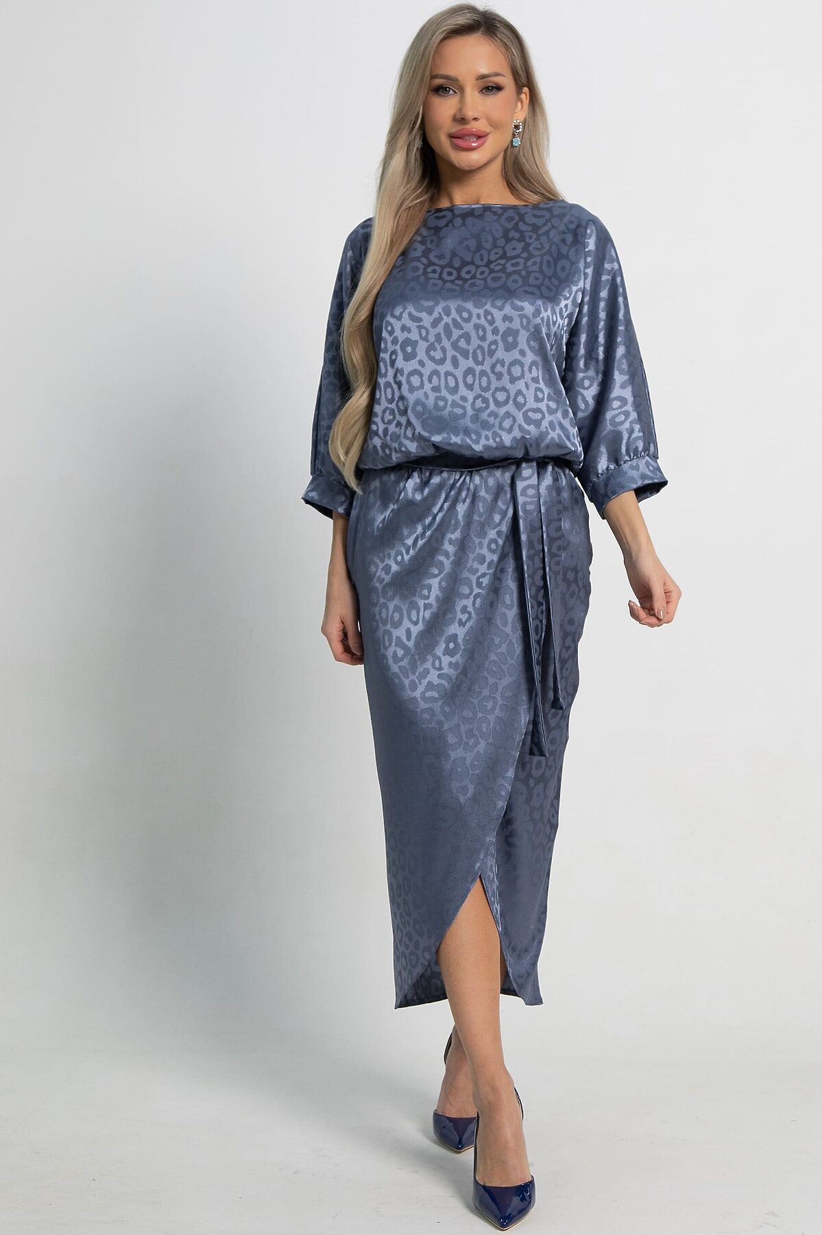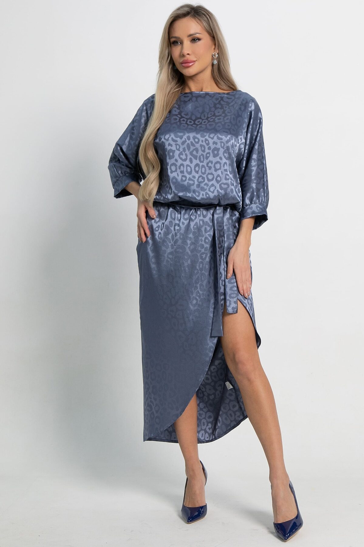 Элегантное платье с леопардовым принтом станет идеальным выбором для любого торжественного случая. Верх платья скроен по типу «летучая мышь», что обеспечивает свободу движений. Юбка на запах в стиле тюльпан идеально подчеркивает фигуру, а резинка по талии добавляет дополнительный комфорт. В комплект входит пояс из основной ткани. Это эффектное платье подчеркнет вашу индивидуальность и станет ярким акцентом любого торжества