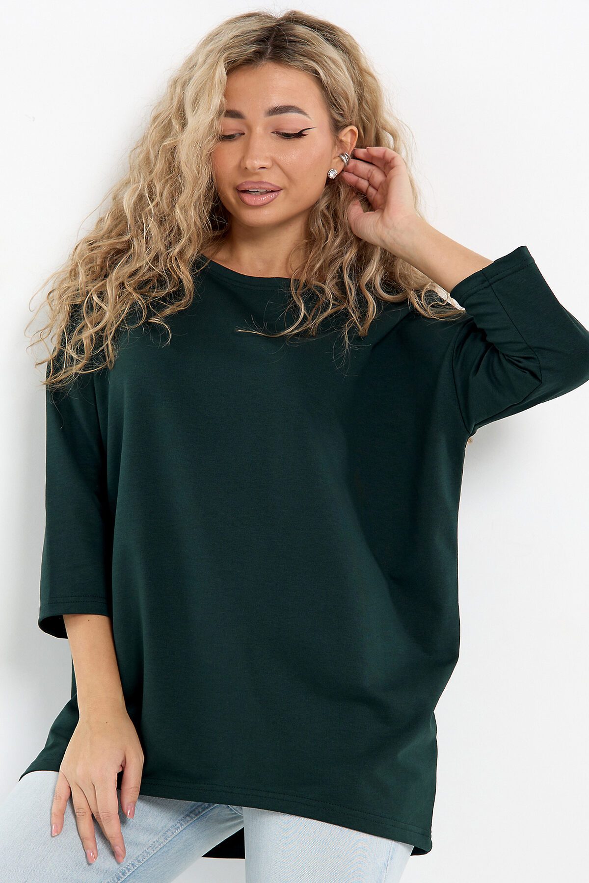 Лонгслив это стильная и комфортная женская кофта, идеально подходящая для одежды стандартных и больших размеров. Лонг это отличный выбор для женщин, которые ценят стиль и комфорт. Изготовленный из футера двунитки, он обеспечивает хорошую воздухопроницаемость. Идеальная кофточка для девушек, подходящая для различных возрастных групп. Независимо от того, с каким образом вы решите носить, он будет отлично сочетаться с различной одеждой, создавая стильные и модные образы. Стильный лонгслив оверсайз с рукавом 3/4 это оптимальный вариант одежды второго слоя для осени и зимы, именно такая ткань позволит найти лучший баланс между тепло и не жарко. Отлично подходит для повседневной носки и вечерних мероприятий. Данная туника без горла может стать в вашем гардеробе отличной одеждой для дома, а также для офиса и под верхнюю одежду. Хотя в ней не жарко даже в тёплую погоду. Трикотажный свитшот в меру удлиненный. Лонгслив абсолютно не стесняет движений и подчеркивает вашу свободу. Классический лонгслив легко сочетать с другими предметами гардероба.