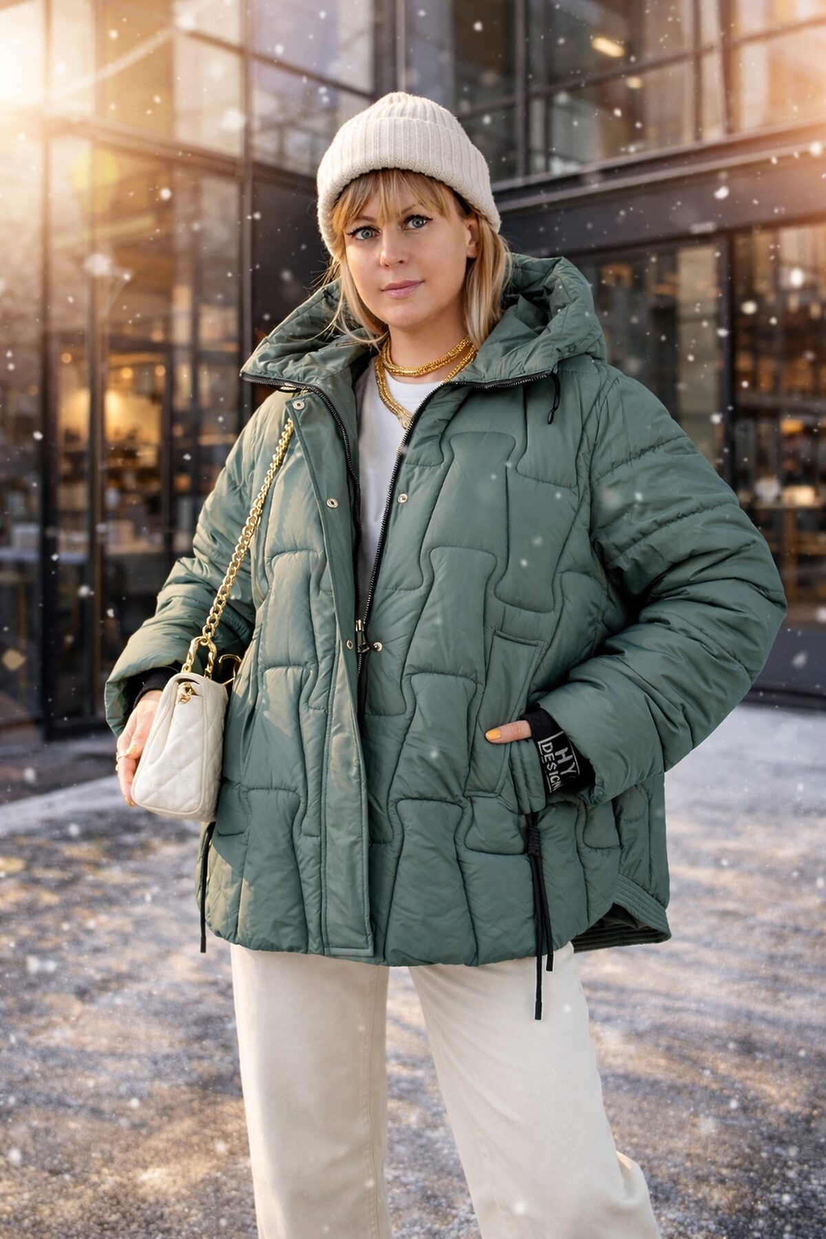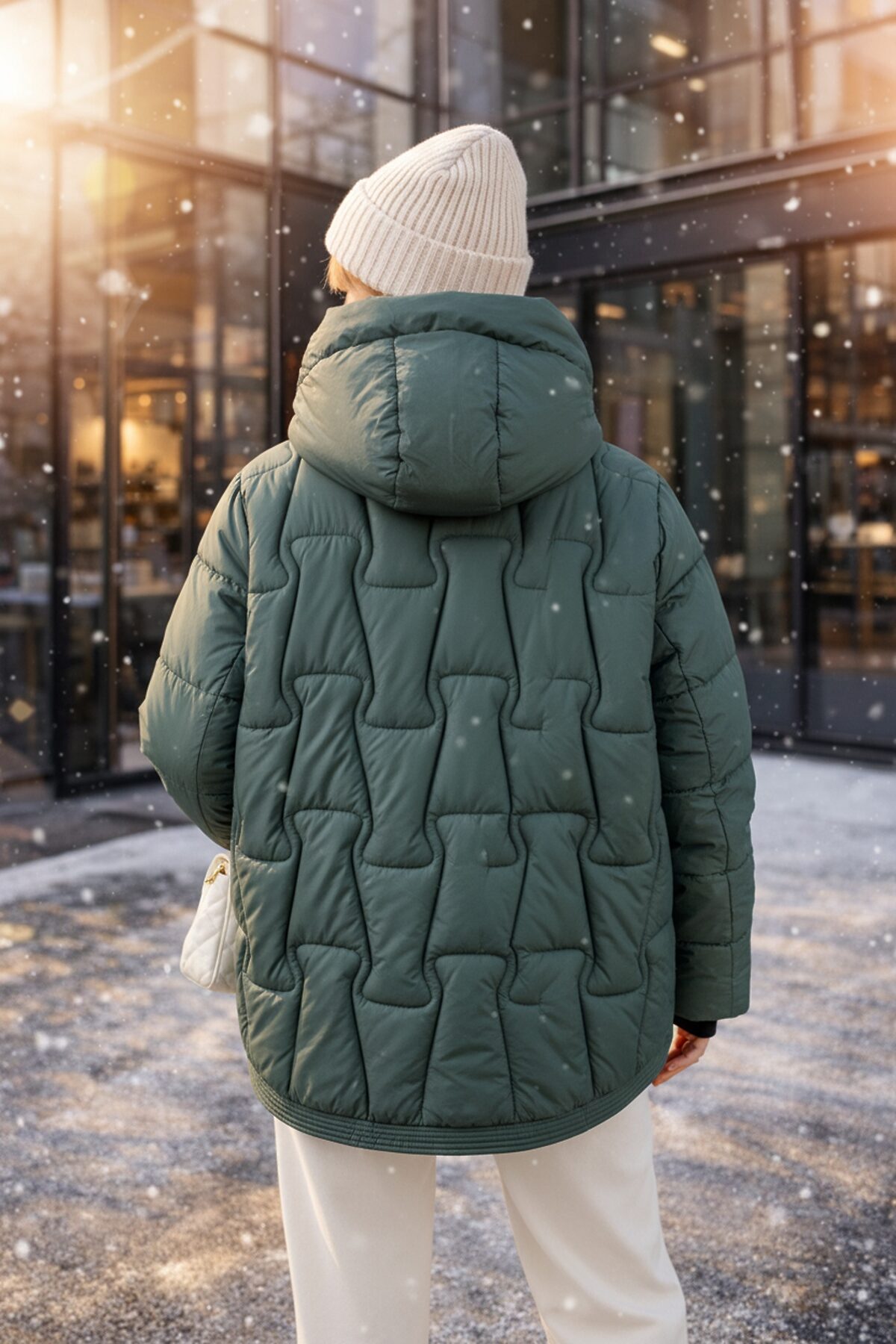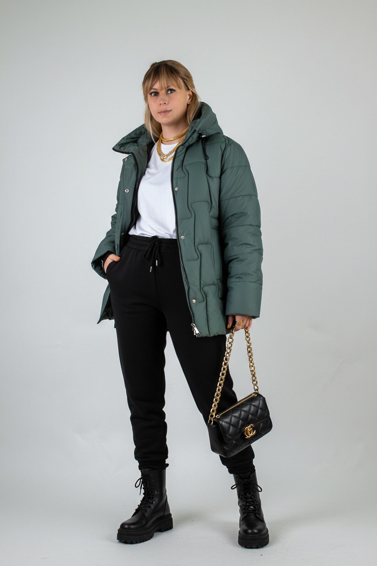 Стильная зимняя куртка art.28153 идеальное сочетание современного дизайна, практичности и комфорта для холодного сезона. Выполненная в бирюзовом цвете, она станет акцентом в вашем образе и при этом легко впишется в любой гардероб. Средняя длина изделия обеспечивает защиту от ветра и снега, но не стесняет движений при вождении автомобиля или поездках в общественном транспорте. Конструкция куртки продумана до мелочей. Центральную застёжку-молнию дополняет утеплённая планка на кнопках, препятствующая проникновению холодного воздуха. Ассиметричная стёжка придаёт изделию супермодный характер, при этом наполнитель из высококачественного файбера распределён равномерно благодаря специальной стёжечной технологии (не ультрастеп), что исключает образование холостых зон и сохраняет тепло даже в сильный мороз. Практичность модели подчеркнута удобством карманов: два боковых с декоративными элементами и стильными верёвочными кистями, а также внутренний карман для мелочей или смартфона. Глубокий капюшон с фиксаторами и воротник-стойка надёжно защищают шею и голову от ветра. На рукавах установлены трикотажные манжеты с броской надписью, выглядывающей из-под основной ткани этот модный штрих не только эстетичен, но и выступает дополнительным барьером для холода. Крой куртки продуман с учётом актуальных тенденций: свободный силуэт визуально стройнит, а универсальная средняя длина подходит для активного городского ритма. Модель доступна в больших размерах, что делает её оптимальным выбором для женщин с любой фигурой. Материалы высокого уровня: плотная матовая ткань не притягивает грязь, шерсть и волосы, легко очищается и сохраняет насыщенный цвет даже после многократных стирок. Фурнитура двусторонняя молния на прочной основе позволяет регулировать степень раскрытия для максимального комфорта. Эта куртка рассчитана на зимний и евро-зимний периоды: она по-настоящему лёгкая, мягкая и при этом тёплая. Качественный пошив и тщательная проверка каждой детали гарантируют длительный срок службы модели. Art.28153 ваш надёжный выбор для любой зимней погоды, где стиль и тепло идут рука об руку.