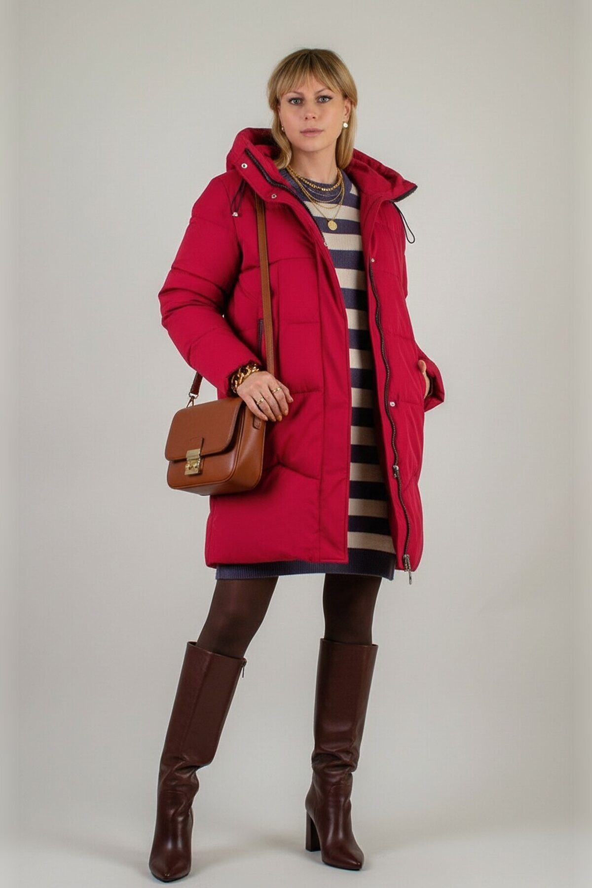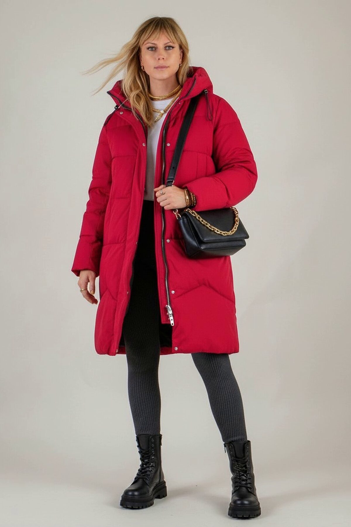 Стильная зимняя куртка art.28119 идеальный выбор для активных городских модниц. Выполнена из плотного матового материала премиум-класса и имеет актуальный удлинённый силуэт, который защищает от ветра и создаёт стройный образ. Оригинальная асимметричная строчка не только подчеркивает современный дизайн, но и гарантирует равномерное распределение утеплителя fayber, исключая его сваливание и образование холодных зон. Модель оснащена двусторонней молнией и дополнительной утеплённой планкой на кнопках, что позволяет быстро регулировать уровень теплоизоляции удобно при посадке в автомобиль или длительных прогулках по городу. Глубокий капюшон с фиксаторами и высокий воротник-стойка эффективно защищают от снега и сильного ветра, сохраняя комфорт даже в самую лютую стужу. Продуманная функциональность: два боковых кармана на молниях аккуратно вписаны и дополнены минималистичными декоративными вставками под лёгким углом, что визуально удлиняет фигуру. Эластичные трикотажные манжеты на рукавах плотно облегают запястья и не пропускают холод, а внутренний карман надёжное место для хранения смартфона, ключей или проездного. Куртка art.28119 универсальна для зимнего и евро-зимнего сезонов: мягкий, но плотный наполнитель fayber сохраняет тепло при температурах до 12 C, а качественная фурнитура и тщательный пошив продлевают срок службы изделия. Благодаря безупречным швам и устойчивой форме куртка сохраняет презентабельный вид даже после многократных стирок и активной носки. Вот как вы можете её носить и с чем сочетать: 1. Городской кэжуал Джинсы-скинни или прямые бойфренды в сочетании с массивными кожаными или замшевыми ботинками на шнуровке. Свитер крупной вязки или худи нейтрального оттенка под высоким воротником-стойкой. Объемный шарф-плед и шапка-бини из мягкой полушерсти. Итог: образ вне дома для прогулок по центру, шопинга, кофе с друзьями. 2. Спортивный комфорт Леггинсы или джоггеры, кроссовки на толстой подошве. Тёплая флисовая толстовка или термобельё под куртку. Рюкзак или поясная сумка на поясничной и грудной стропе. Итог: идеально для активного отдыха, зимней пробежки и выездов за город. 3. Повседневный smart-casual Тёмные джинсы-чиносы или брюки-карго, ботильоны на небольшом каблуке. Трикотажная водолазка или рубашка из мягкого хлопка. Минималистичная сумка-тоут или клатч через плечо. Итог: удобный, но стильный сет для офиса в свободном дресс-коде и деловых встреч. 4. Дорожный вариант Удо