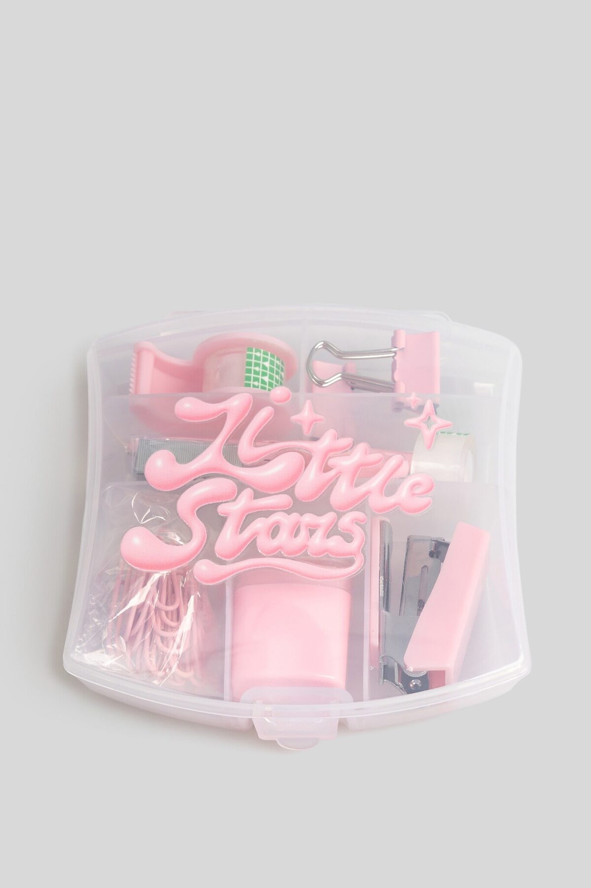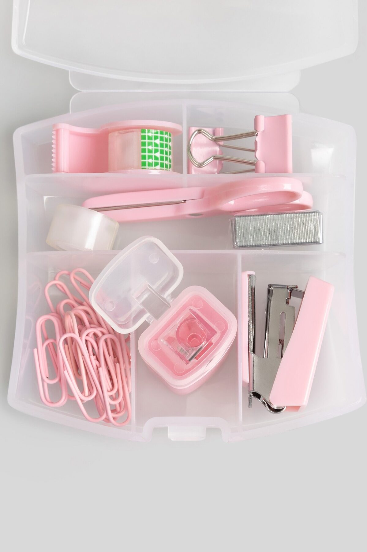 Канцелярский набор ( диспенсер для клейкой ленты 1шт; клейкая лента 2шт; зажимы для бумаги 2шт; ножницы 1шт; степлер 1шт