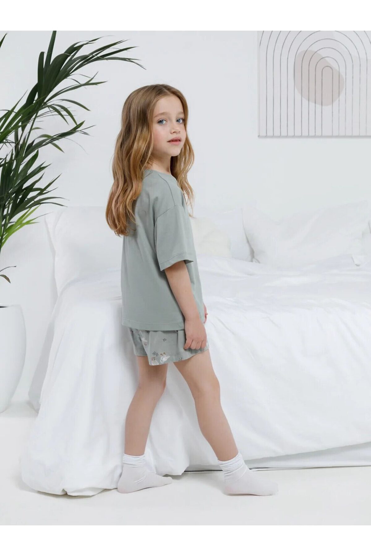 Трикотажная пижама из натурального хлопка для комфортного сна и отдыха. Свободная футболка с короткими спущенными рукавами и шорты с мягкой эластичной резинкой в поясе. Оригинальный рисунок выполнен из стойких текстильных гипоаллергенных красителей. Изделие сохраняет цвет и форму после многократных стирок. Все трикотажные полотна производятся в соответствии с нормами швейцарского сертификата ЭкоТекс.